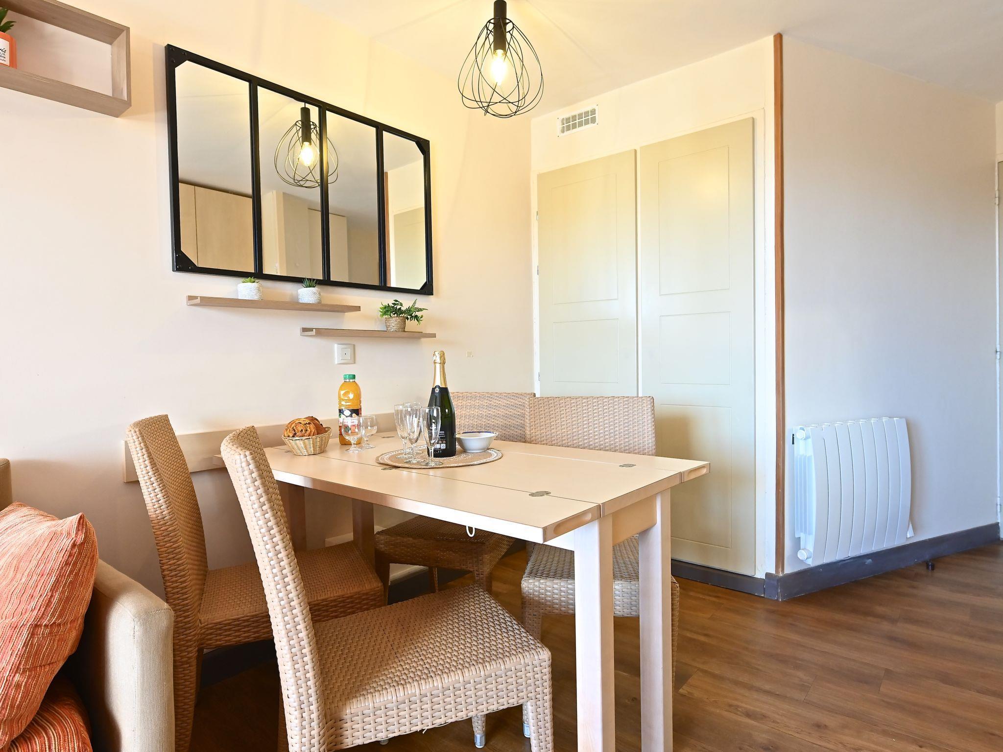"L'Esquinade (G1 103)", 2-room apartment 30 m2, on the ground floor. Living room with 1 pull-out bed (2 x 80 cm, length 190 cm), TV (flat screen). Exit to the terrace. 1 room with 1 french bed (140 cm, length 190 cm). Kitchenette (4 hot plates, oven, dishwasher, toaster, kettle, microwave, freezer, electric coffee machine, Capsules for coffee machine (Senseo) extra). Bath/WC. Electric heating. Terrace 9 m2. Terrace furniture. Facilities: washing machine. Internet (WiFi, extra). Parking (1 car). Please note: non-smokers only. 1 small pet/ dog allowed. Smoke alarm. Offer by a private individual according to Art. 155, IV of CGI. FR66008
