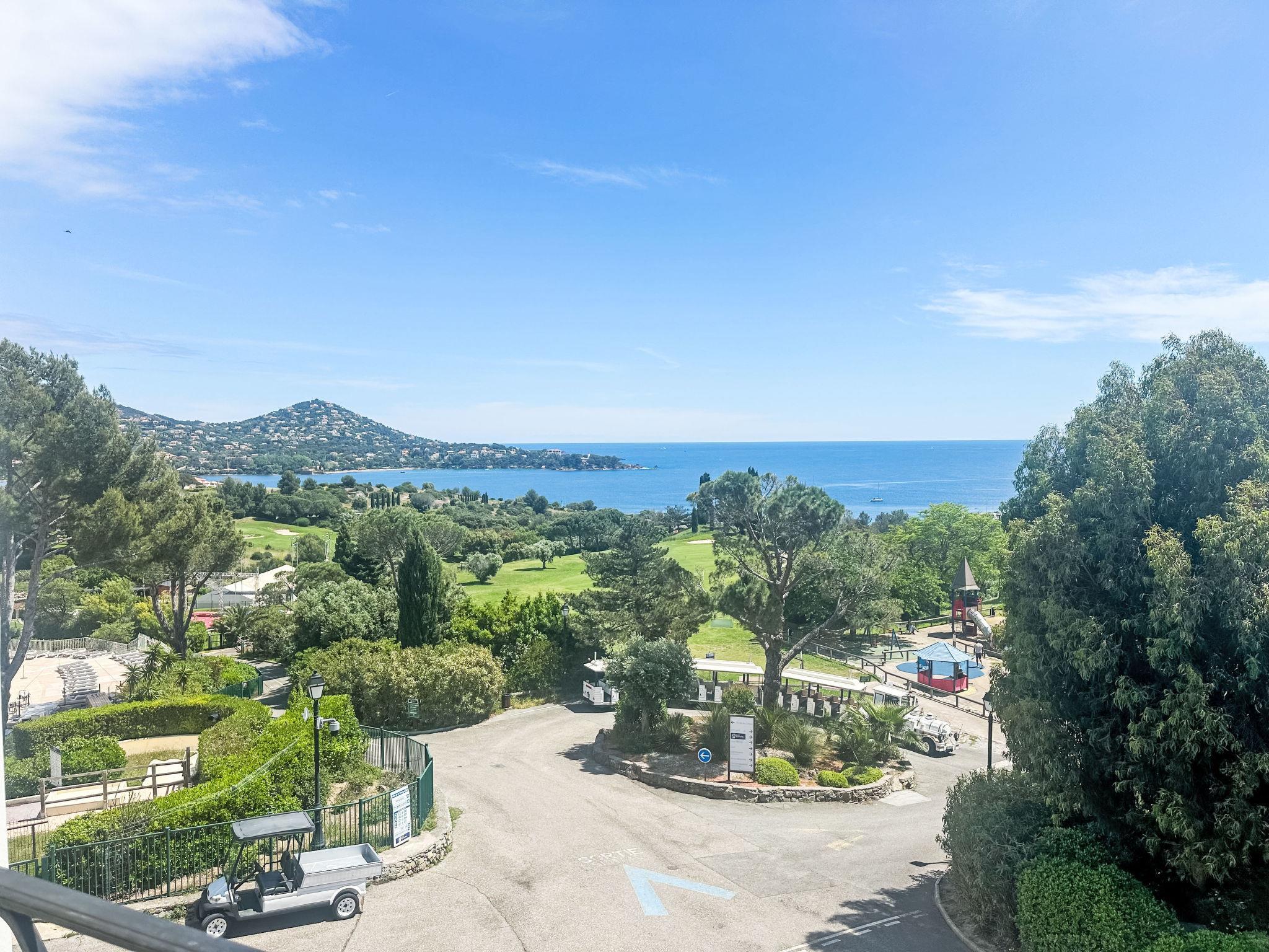 "L'Esquinade (FH206)", 2-room apartment 28 m2 on 1st floor. Very beautiful furnishings: living room with 1 pull-out bed (2 x 80 cm, length 190 cm), TV (flat screen). Exit to the terrace, south facing position and east facing position. 1 room with 1 french bed (140 cm, length 190 cm), TV (flat screen). Exit to the terrace. Kitchenette (4 hot plates, dishwasher, toaster, kettle, microwave, freezer, electric coffee machine, Capsules for coffee machine (TASSIMO) extra). Bathroom, sep. WC. Air-conditioning. Terrace 10 m2. Terrace furniture. Panoramic view of the sea, the swimming pool and golf course. Facilities: washing machine, hair dryer. Internet (WiFi, extra). Parking space n 2438 (roofed, 1 car), height 180 cm. Please note: non-smokers only. Smoke alarm. Offer by a private individual according to Art. 155, IV of CGI. U7GD7V