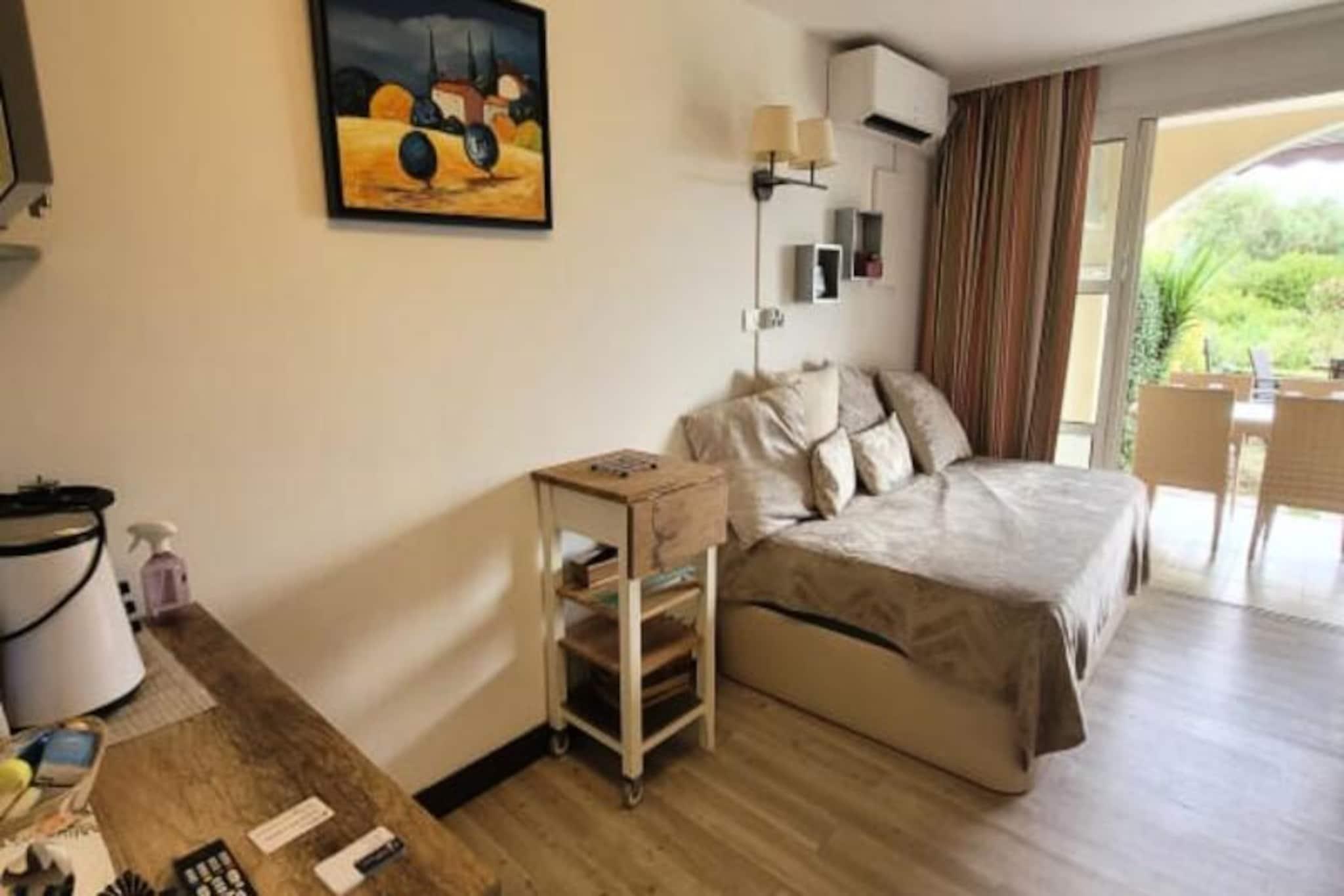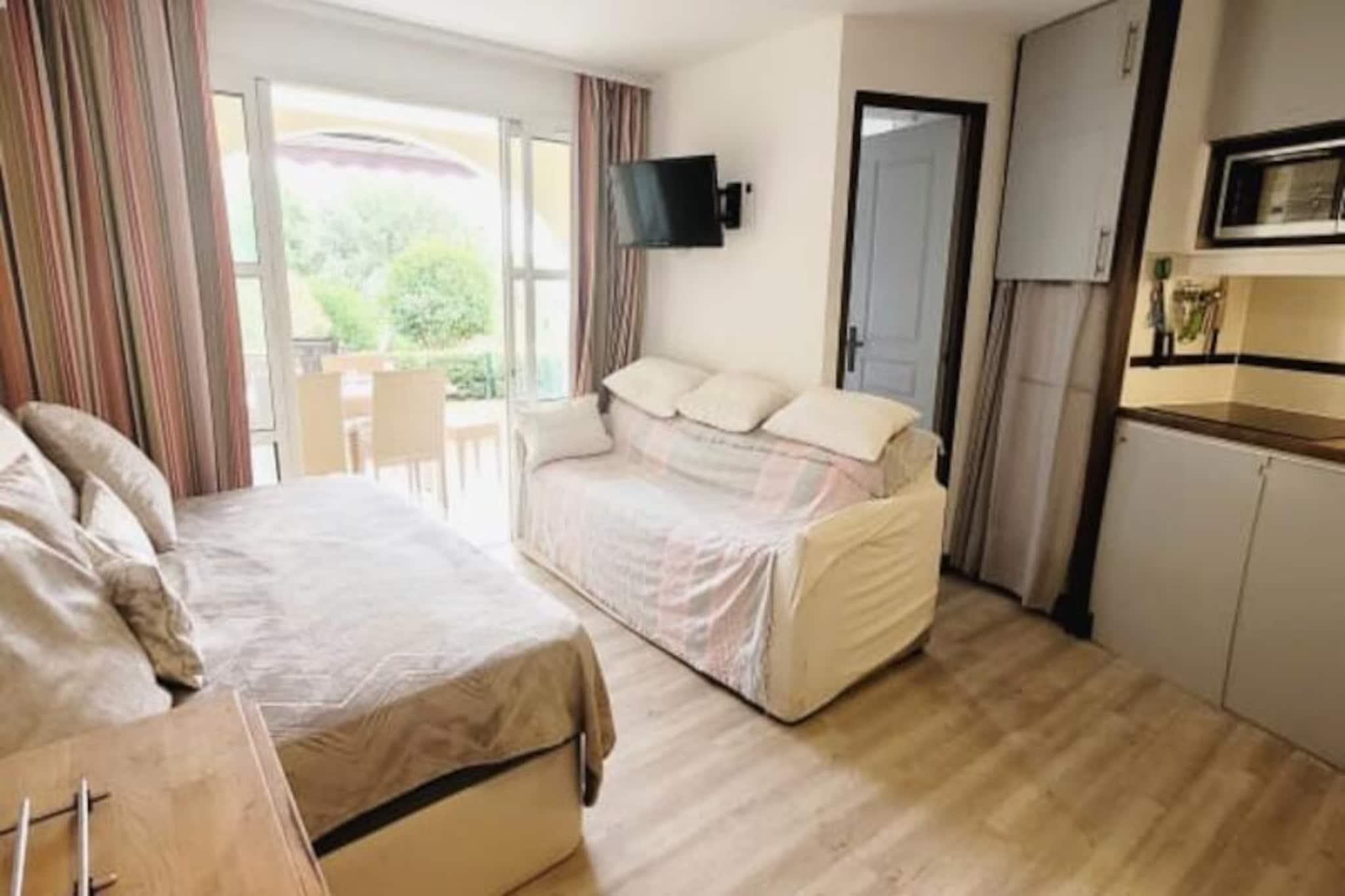 Wake up to the gentle Mediterranean breeze and the shimmering blue waters of Agay Bay at Village Cap Esterel. Perched above the bay, this charming pedestrian village offers a perfect blend of relaxation and adventure, with panoramic views of the Esterel massif and the sea. Whether you're seeking a family getaway or an active holiday, this destination promises unforgettable memories under the Provençal sun. This cozy one-bedroom apartment is thoughtfully designed to accommodate up to five guests. The bedroom features a comfortable double bed, while the living room offers two sofa beds, ensuring ample space for families or small groups. With air conditioning, a TV in both the bedroom and living room, and a fully equipped kitchenette, your stay will be as comfortable as it is convenient. Families with young children will appreciate the travel cot and high chair provided, while the private terrace and enclosed garden area are perfect for enjoying meals al fresco or letting your furry friends roam freely. Just a five-minute walk from the sandy Pourousset Beach and the vibrant center of Cap Esterel, the location couldn’t be better. On-site, you’ll have access to three swimming pools, including the indoor Waves pool, fitness sessions, parks, and playgrounds—all included in your stay. For added convenience, parking, electric vehicle charging, and a charming little train to navigate the village are also available. Optional extras such as Wi-Fi, tennis, padel, and a luxurious spa with a jacuzzi and massages ensure there’s something for everyone. Whether you’re exploring the nearby beaches, enjoying the club activities, or simply soaking in the breathtaking sea views from your terrace, Village Cap Esterel is your gateway to the best of the French Riviera. Book your stay today and experience the magic of this Mediterranean paradise.
