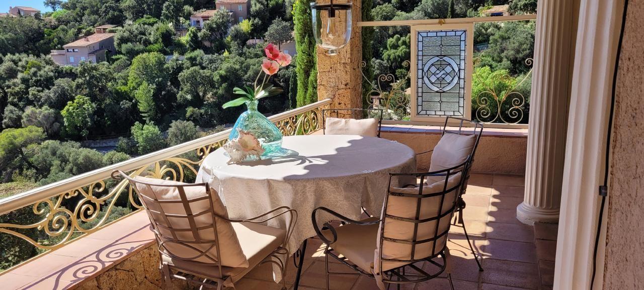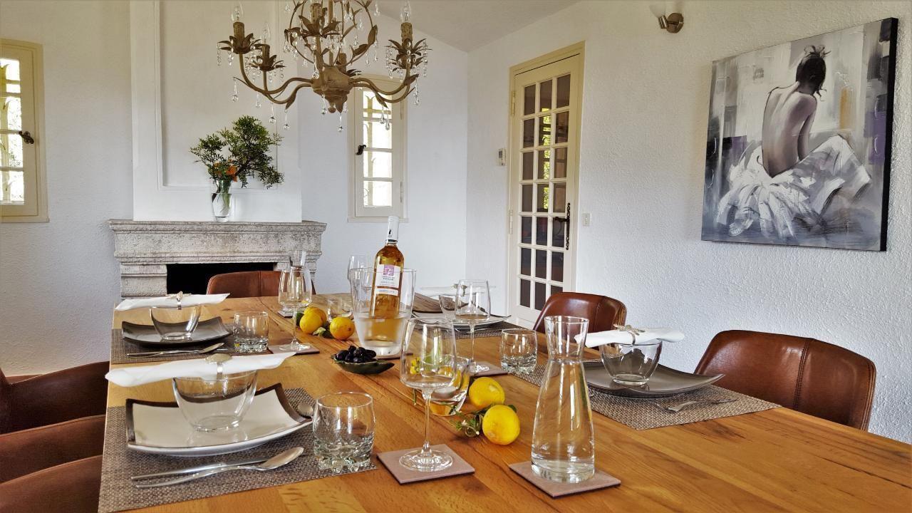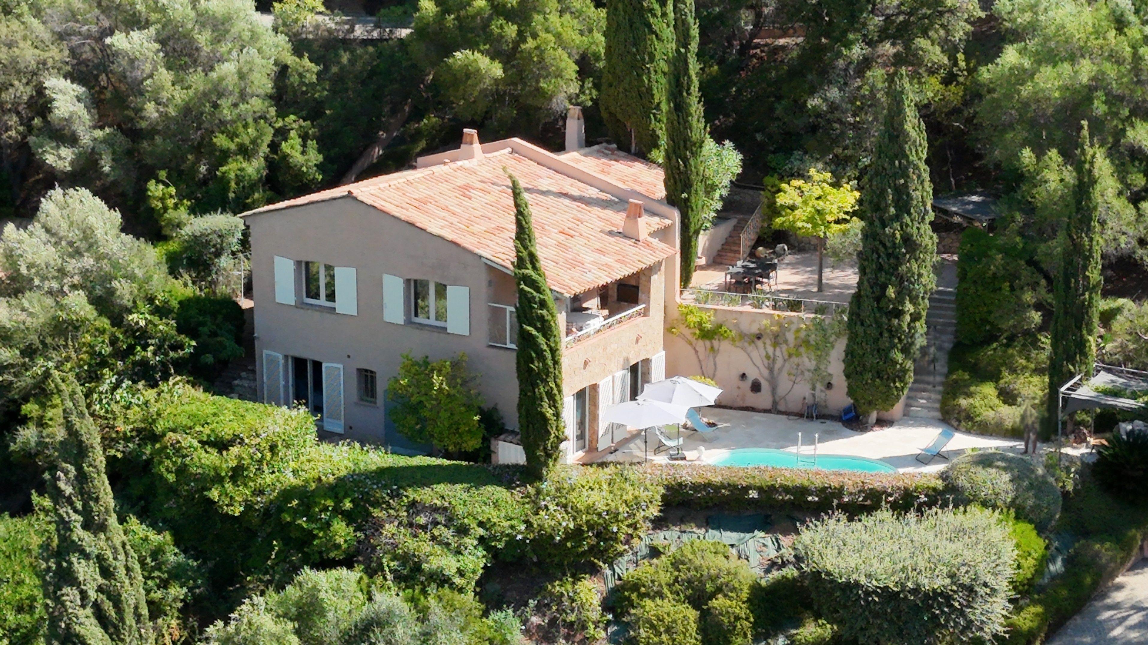 The bright villa offers a large dining room with sliding glass doors to the covered balcony with marvelous sea views. The open living room allows direct access to the upper terrace with a large table, barbecue and sun loungers invites to rest in the Mediterranean vegetation with orange and lemon trees. From here you can also listen to the concert of the cicadas with a glass of rosé in hand and forget the time passing by watching the sea and the view on St. Tropez. You will feel comfortable and safe in this wonderful place.