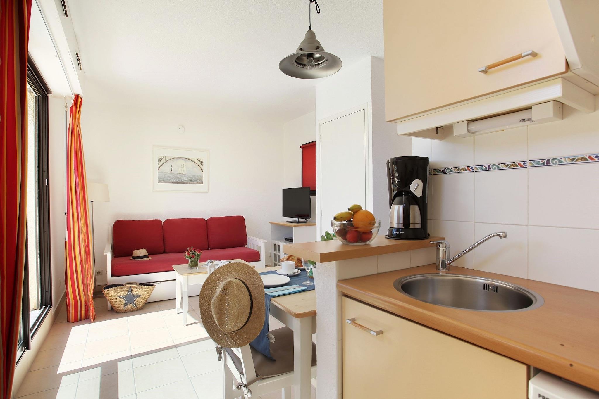 Unwind in this inviting apartment tucked within the serene, car-free Club Saint-Loup—a peaceful domain surrounded by towering pine trees in beautiful Cap d’Agde. Whether you're visiting as a couple, family, or small group, this bright and stylish space offers everything you need for a comfortable stay. Enjoy a restful night in the cozy bedroom with twin beds, or stretch out on the spacious double sofa bed in the living room. The fully equipped kitchen includes a ceramic cooker, microwave, and dishwasher for your convenience. Step onto your private balcony or terrace and soak up the Provençal sun. Please note: pets are not allowed. Located on Avenue des Soldats in the charming seaside city of Agde, this apartment offers the perfect blend of nature, comfort, and accessibility. Club Saint-Loup’s peaceful setting provides a refreshing break from the buzz of city life, yet the best of Cap d’Agde is just minutes away. Explore nearby beaches, bike through forest paths, or discover the historical old town of Agde. With everything close by—yet none of the noise—you’ll enjoy a truly rejuvenating escape. Satisfy your cravings with the area’s irresistible culinary offerings. From fresh seafood caught just off the coast to local Provençal dishes served in rustic bistros, Cap d’Agde is a food lover’s delight. Head to the marina for sunset dining, explore beachside cafés for relaxed lunches, or grab takeout and enjoy dinner al fresco on your private terrace.