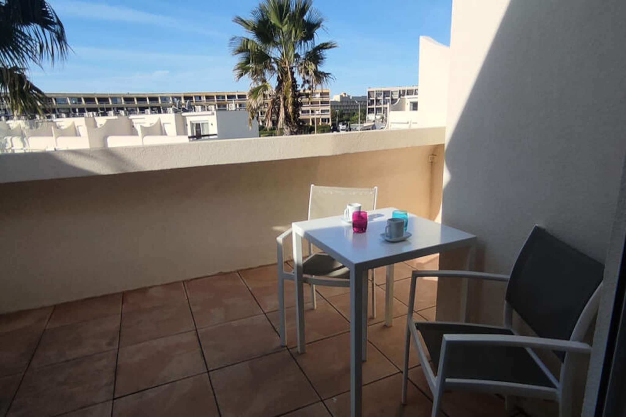 On the sun-drenched Mediterranean coast, this elegant studio offers a serene escape for couples seeking relaxation and romance. Located in the LE JARDIN D'EDEN residence, the property boasts a tranquil ambiance complemented by stunning views of the pool and jacuzzi, with the shimmering sea visible in the distance. Whether you’re enjoying a morning coffee on the 13 m² terrace or unwinding in the comfort of the air-conditioned living space, every moment here feels like a retreat into paradise. Designed for two, the studio features a plush king-size bed (180 cm) and a well-equipped kitchenette, complete with a Nespresso coffee machine for your convenience. The modern shower room and separate WC ensure privacy and comfort, while thoughtful touches like beds made up upon arrival and provided towels enhance your stay. The residence itself is a haven of leisure, offering access to a swimming pool and jacuzzi open from May to September, perfect for soaking up the Mediterranean sun. Beyond the residence, the region invites exploration with its picturesque coastal paths, charming villages, and vibrant local markets. From scenic drives along the coastline to sampling fresh seafood at nearby restaurants, the area is rich with opportunities to immerse yourself in the beauty and culture of southern France. Ideal for couples, this property combines luxury, convenience, and an unbeatable location to create an unforgettable holiday experience. Whether you’re here for a short getaway or a longer stay, the Jardin d’Eden studio promises a blend of comfort and coastal charm that will leave you longing to return.