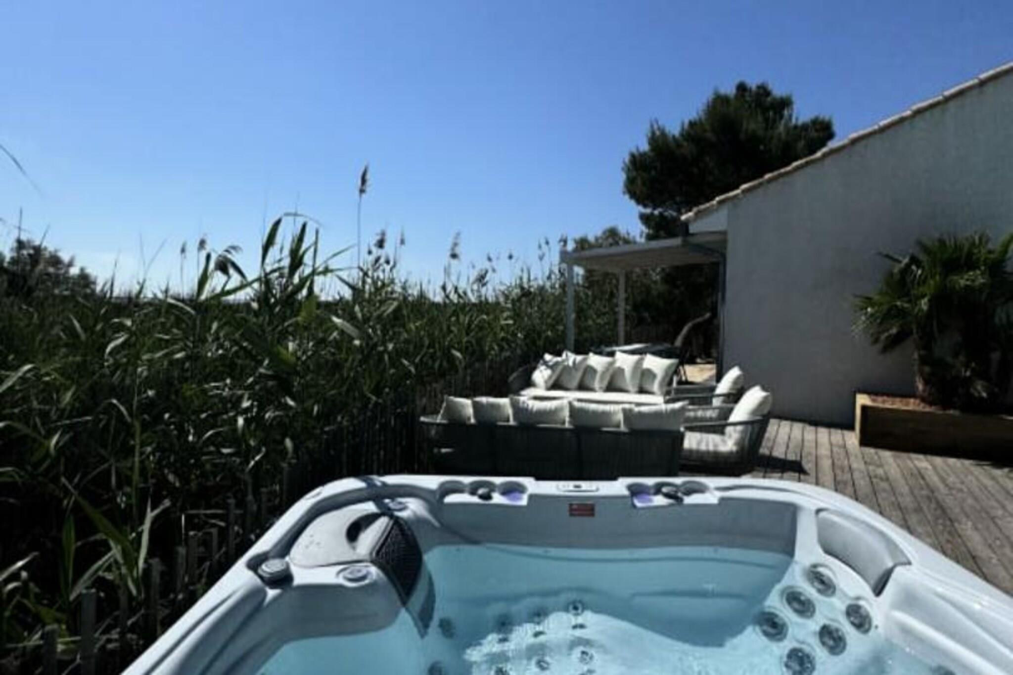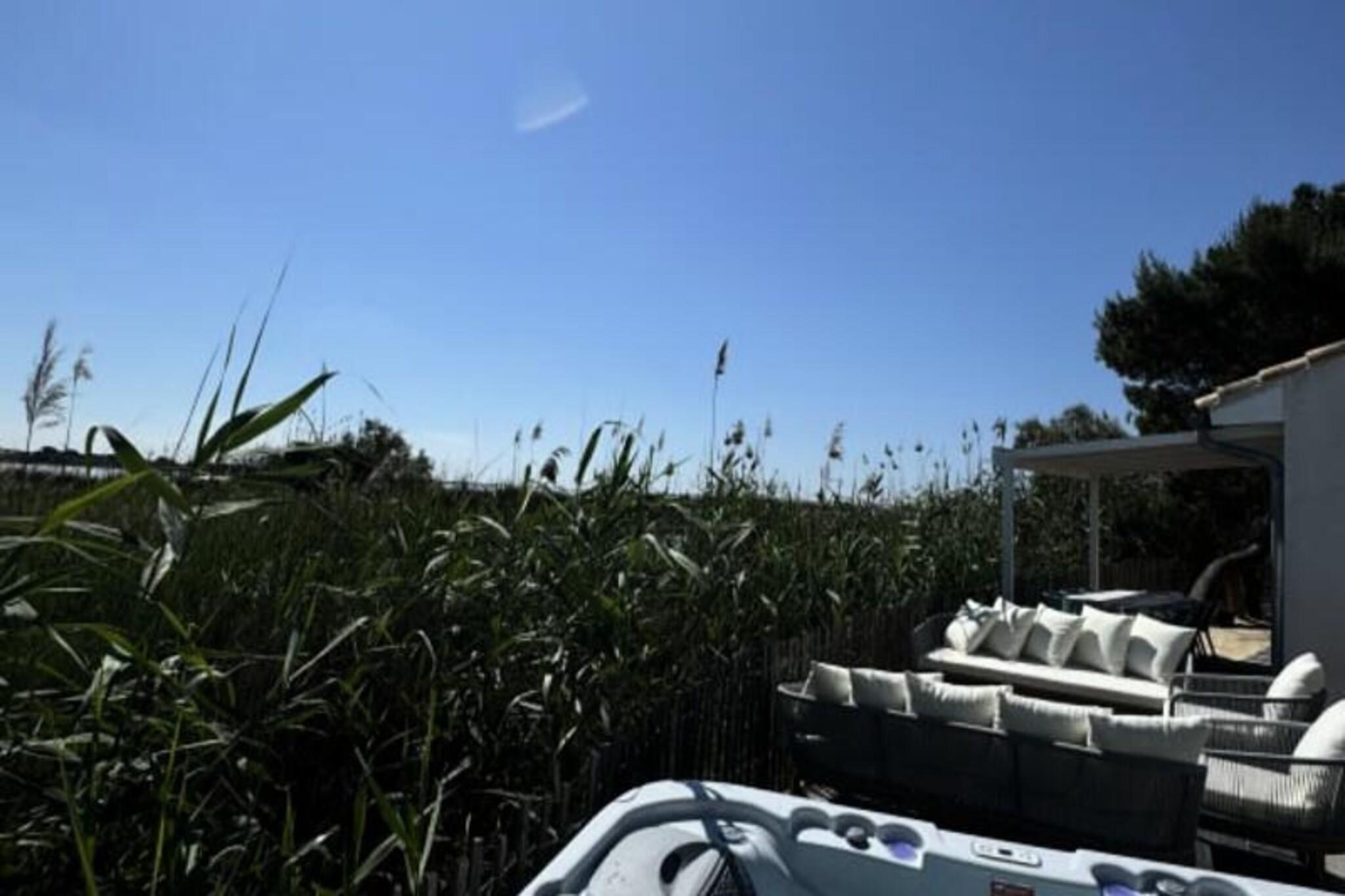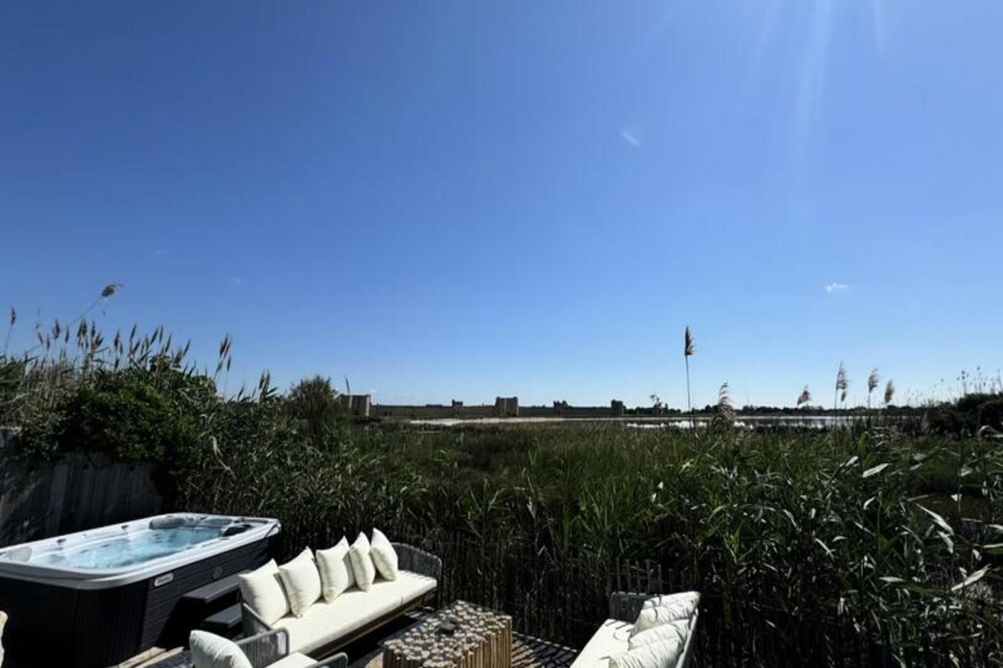 Imagine waking up to the serene beauty of the Camargue countryside, where the golden hues of sunrise illuminate the historic ramparts of Aigues-Mortes. La Perle Rose, a 5-star villa, offers an unparalleled blend of luxury, comfort, and nature. With breathtaking views of the pink salt marshes and just steps from the medieval city, this villa is a haven for those seeking a tranquil yet vibrant getaway. Located minutes from the sandy beaches of Grau du Roi, it’s the perfect retreat for families or friends. Spanning 136 m², this single-story villa accommodates up to six guests in three spacious bedrooms, each featuring plush 160 cm bedding. The master suite boasts a private bathroom, while two additional shower rooms and separate toilets ensure convenience. The open-plan kitchen is fully equipped with modern appliances, including an American-style fridge, wine cellar, and dishwasher, making it ideal for preparing meals to enjoy in the bright living room or on the terrace. Reversible air conditioning, Wi-Fi, and a smart TV add to the villa’s modern comforts. Step outside to a meticulously maintained garden, complete with a private pool, jacuzzi, and secure parking with an electric charging station. The terrace invites you to unwind with a glass of wine as you marvel at the stunning sunsets over the salt marshes and wildlife. The enclosed 546 m² plot ensures privacy, creating a peaceful oasis for relaxation. La Perle Rose’s prime location allows you to explore the historic center of Aigues-Mortes via a scenic pedestrian path. Nearby, discover charming restaurants, bustling markets, and the natural wonders of the Camargue, including cycle paths and The Carbonnière Tower. Whether you’re drawn to the beaches, history, or nature, this villa promises an unforgettable stay in the South of France.