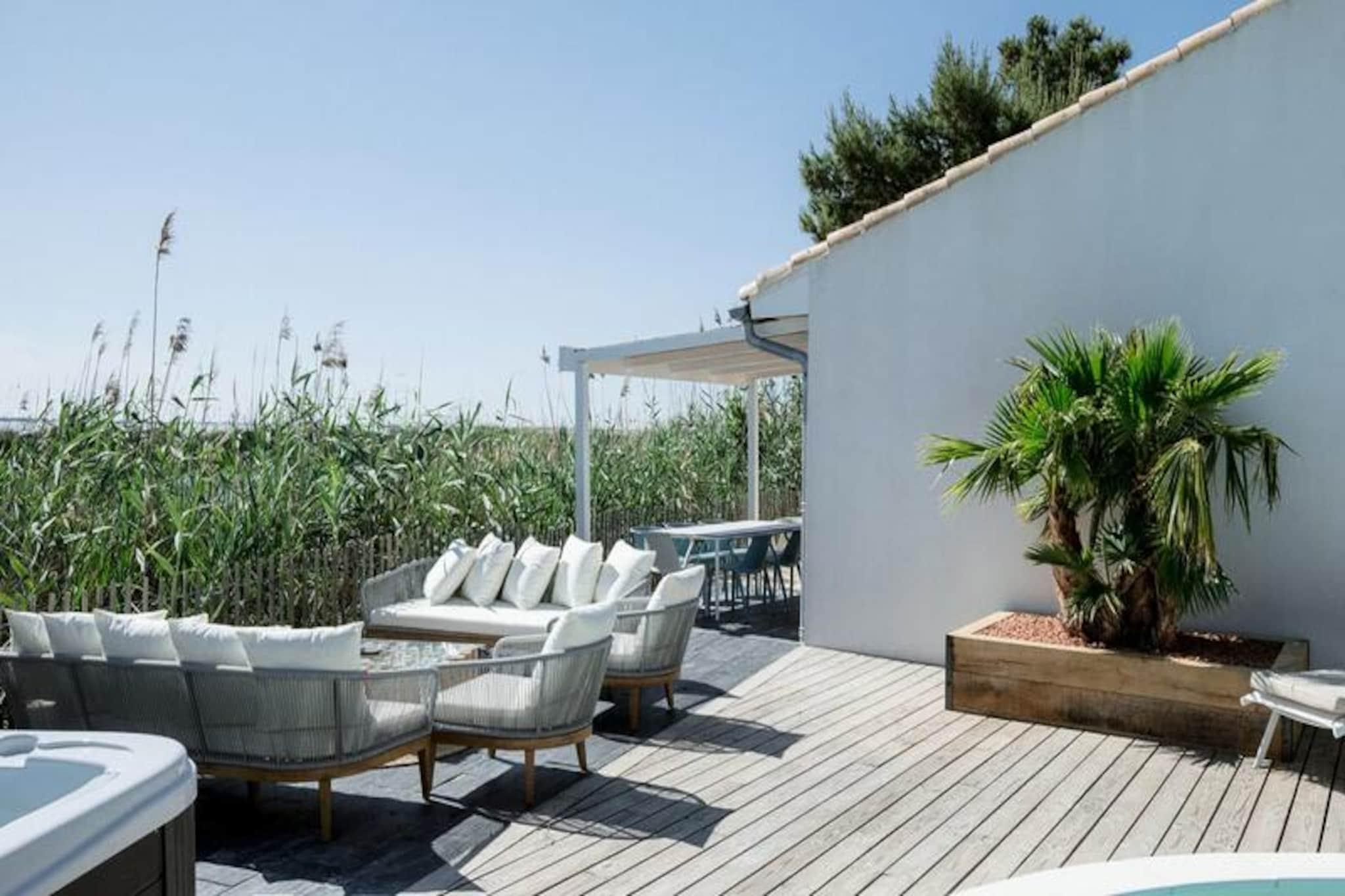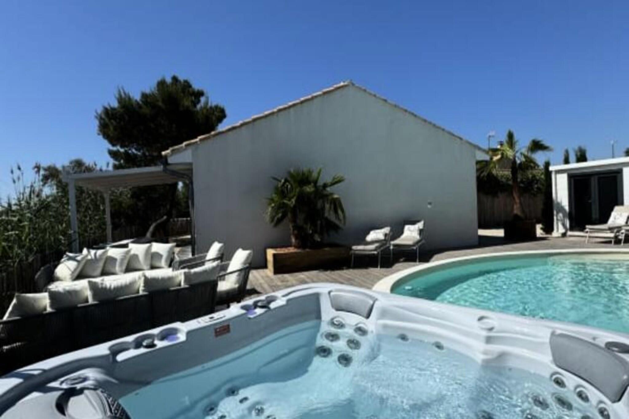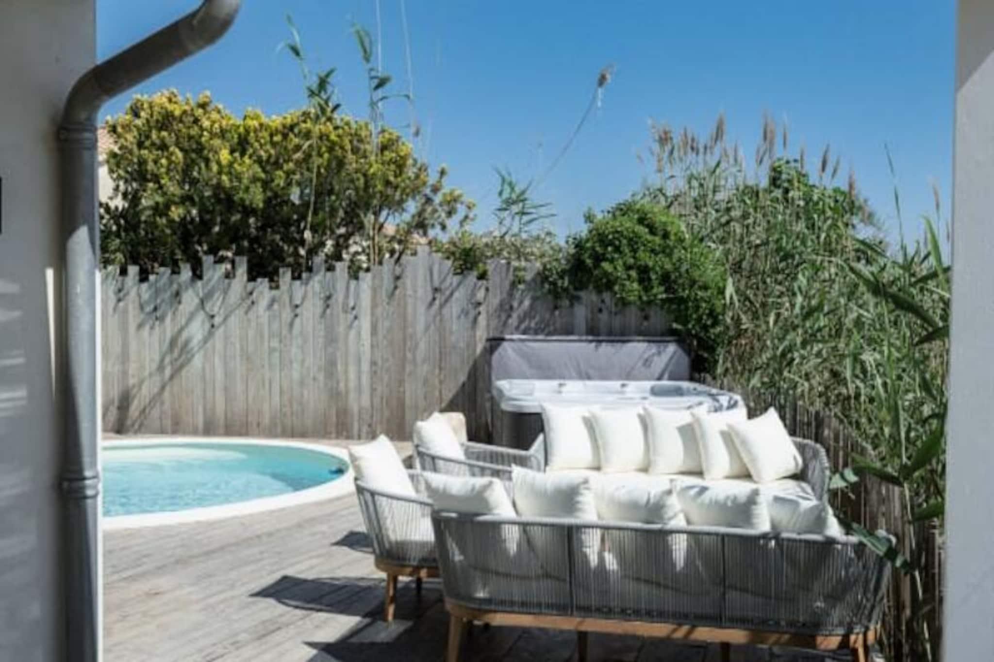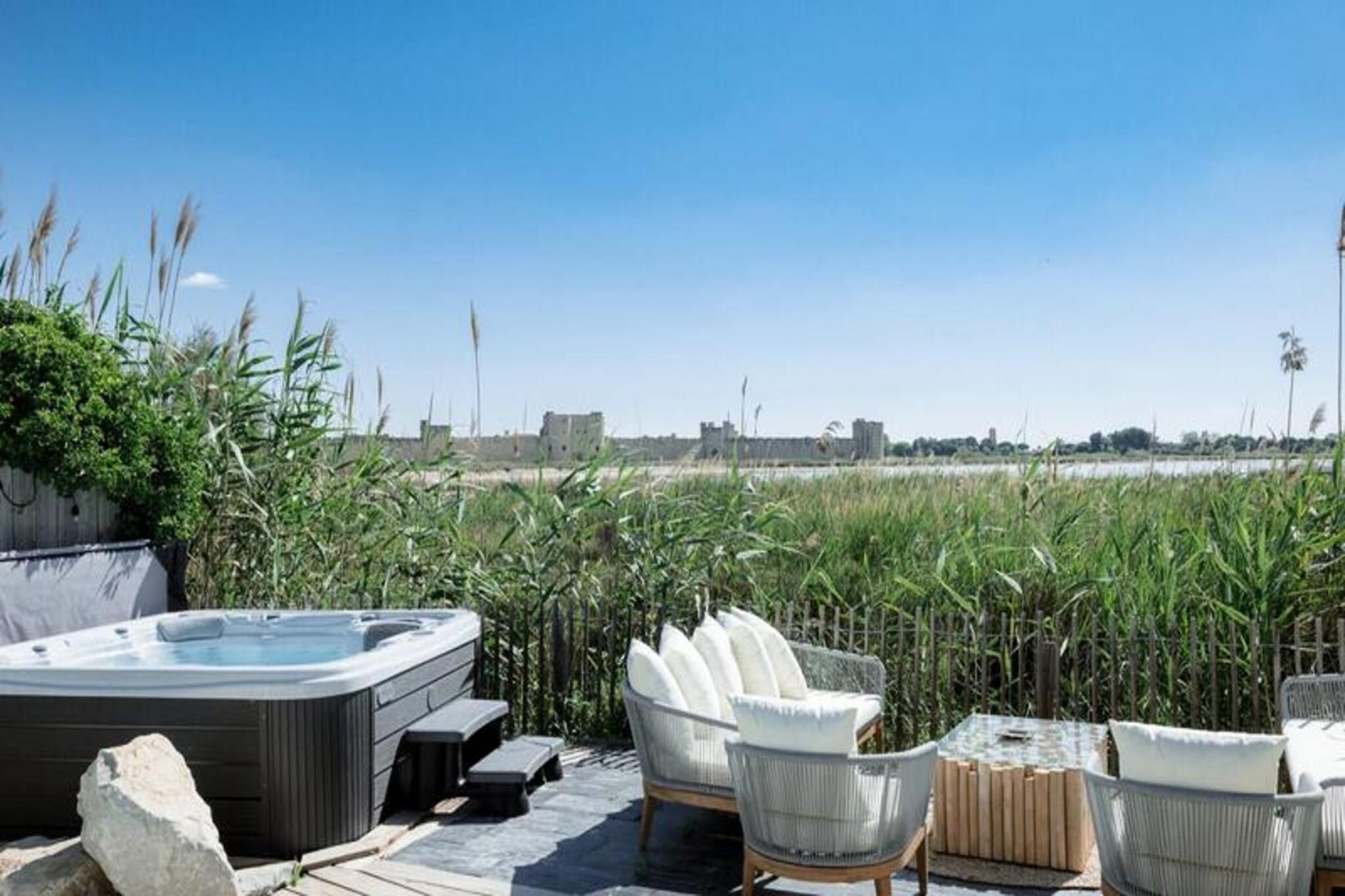 Imagine waking up to the serene beauty of the Camargue countryside, where the golden hues of sunrise illuminate the historic ramparts of Aigues-Mortes. La Perle Rose, a 5-star villa, offers an unparalleled blend of luxury, comfort, and nature. With breathtaking views of the pink salt marshes and just steps from the medieval city, this villa is a haven for those seeking a tranquil yet vibrant getaway. Located minutes from the sandy beaches of Grau du Roi, it’s the perfect retreat for families or friends. Spanning 136 m², this single-story villa accommodates up to six guests in three spacious bedrooms, each featuring plush 160 cm bedding. The master suite boasts a private bathroom, while two additional shower rooms and separate toilets ensure convenience. The open-plan kitchen is fully equipped with modern appliances, including an American-style fridge, wine cellar, and dishwasher, making it ideal for preparing meals to enjoy in the bright living room or on the terrace. Reversible air conditioning, Wi-Fi, and a smart TV add to the villa’s modern comforts. Step outside to a meticulously maintained garden, complete with a private pool, jacuzzi, and secure parking with an electric charging station. The terrace invites you to unwind with a glass of wine as you marvel at the stunning sunsets over the salt marshes and wildlife. The enclosed 546 m² plot ensures privacy, creating a peaceful oasis for relaxation. La Perle Rose’s prime location allows you to explore the historic center of Aigues-Mortes via a scenic pedestrian path. Nearby, discover charming restaurants, bustling markets, and the natural wonders of the Camargue, including cycle paths and The Carbonnière Tower. Whether you’re drawn to the beaches, history, or nature, this villa promises an unforgettable stay in the South of France.