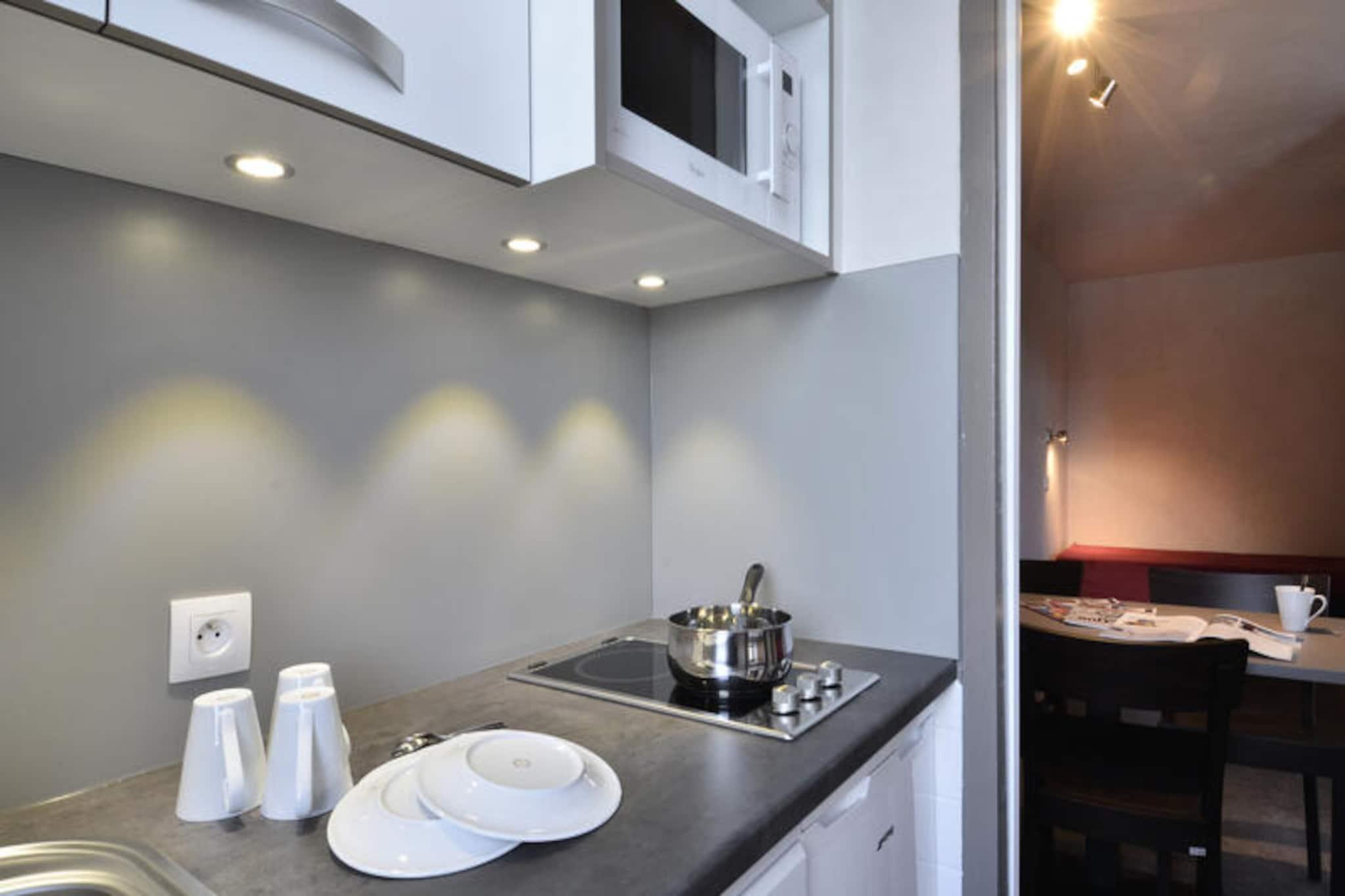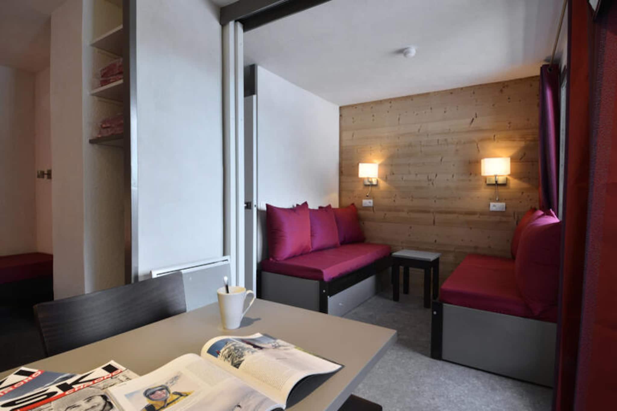 High above the serene alpine landscapes of Plagne Bellecote, this recently renovated studio offers a cozy retreat for up to four guests. Perfectly situated at the foot of the slopes, the residence provides direct ski-in/ski-out access, ensuring your days begin and end with effortless mountain adventures. The welcoming lobby and secure digital entry create a warm and safe environment for your stay, while individual ski lockers add convenience to your winter escape. Whether you're here for skiing or simply to soak in the tranquil atmosphere, this property promises comfort and practicality. \n\nThe studio, located on the second floor, features a north-facing balcony where you can enjoy crisp mountain air. Inside, you'll find a cleverly designed space with four single beds, a flat-screen TV, and a separate kitchen equipped with a combination microwave, ceramic hob, refrigerator, and dishwasher. The bathroom includes a bathtub for relaxing after a day on the slopes, and the separate toilet adds extra convenience. While sheets and towels are not provided, duvets and blankets ensure a cozy night's sleep. Paid Wi-Fi is available at the resort, and pets are welcome for a small fee, making this studio a great choice for families or small groups. \n\nJust 200 meters from the residence, you'll find shops, dining options, and essential services, making it easy to enjoy the best of Plagne Bellecote. Parking options include covered spaces below the residence and paid outdoor or indoor parking nearby. During your stay, explore the Paradiski domain, renowned for its extensive ski terrain and breathtaking views. Whether you're skiing, snowboarding, or simply enjoying the alpine ambiance, this studio serves as an ideal base for unforgettable mountain memories. \n\nChoose this charming property for its unbeatable location, thoughtful amenities, and the promise of a relaxing and adventurous getaway in the heart of the French Alps.