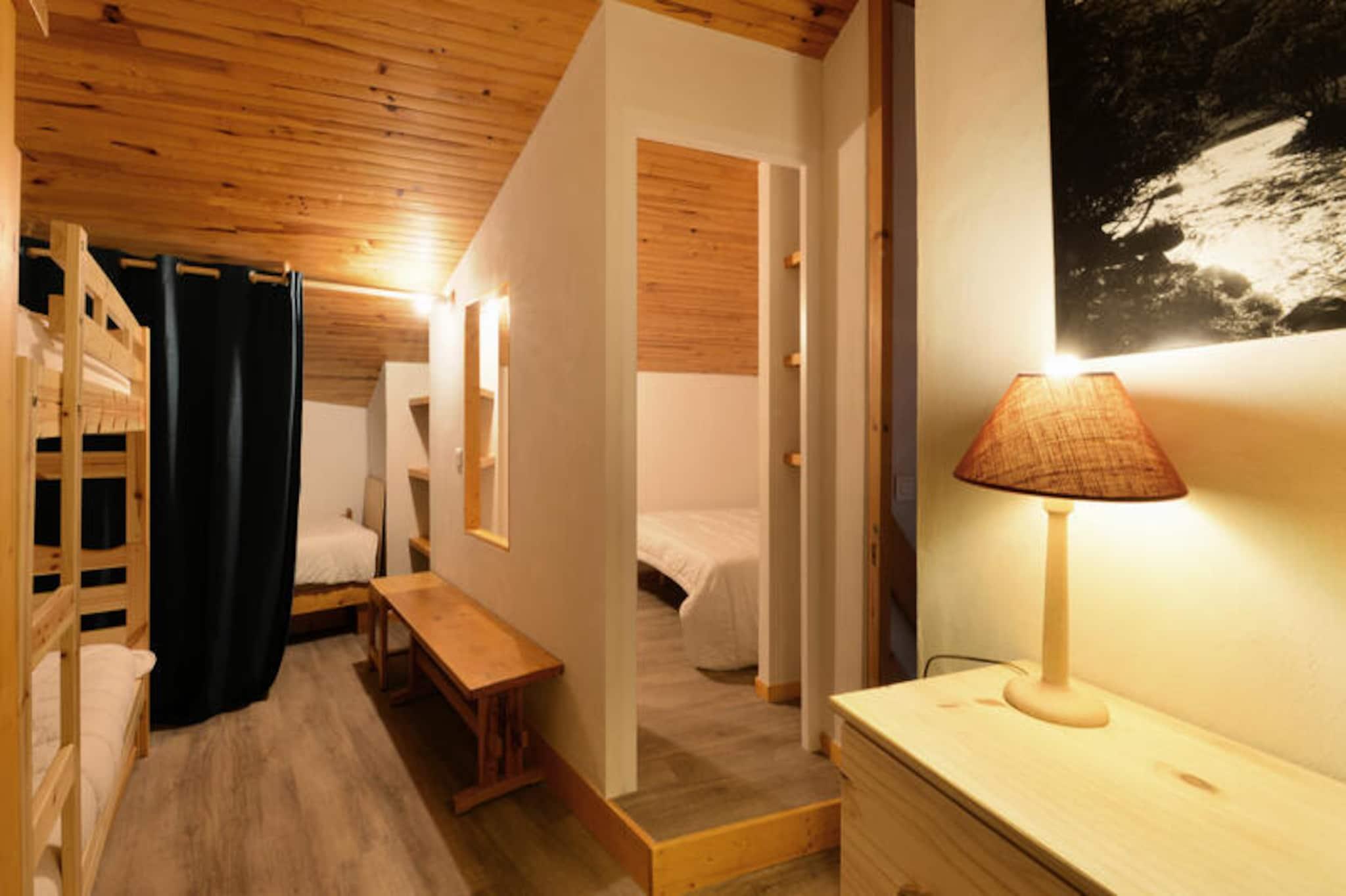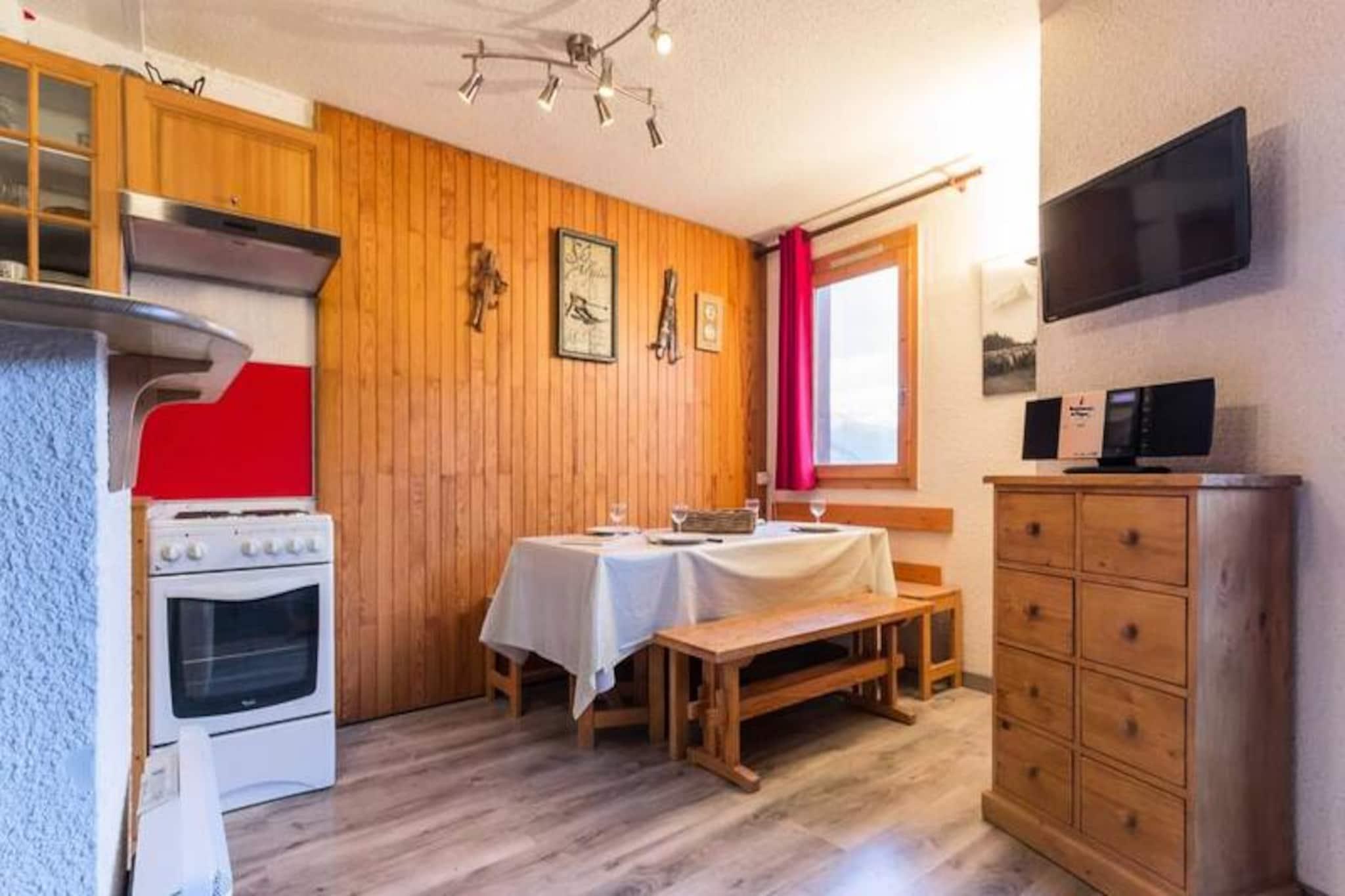 High above the Tarentaise Valley, this charming duplex apartment in Montchavin offers a cozy alpine retreat with breathtaking views of Mont Blanc. Perfectly situated just steps from the Montchavin chairlift and the ESF ski school, it provides unparalleled access to the vast Paradiski domain, making it an ideal choice for ski enthusiasts and families alike. Whether you're an avid skier or simply seeking a peaceful mountain escape, this residence places you at the heart of the action while offering serene moments to soak in the beauty of the French Alps. Spanning 65m², this thoughtfully designed apartment comfortably accommodates up to nine guests. The ground floor features a fully equipped kitchen with modern appliances, a cozy living room with a flat-screen TV, and a bedroom with a plush 160cm double bed. Upstairs, you'll find a newly renovated shower room, a second bedroom with two single beds, and a mezzanine area with bunk beds and an additional single bed. An alcove with two single beds provides extra sleeping space, making this home perfect for families or groups of friends. The private balcony offers a stunning panorama of the valley and surrounding peaks, creating the perfect backdrop for your morning coffee or evening relaxation. With ski lockers, free public parking, and Wi-Fi included, convenience is at your fingertips. The residence is also within walking distance of the resort center, where you'll find shops, restaurants, and après-ski activities to complete your alpine experience. In the summer, the region transforms into a haven for hikers and nature lovers, with trails winding through lush landscapes and opportunities to explore the majestic Mont Blanc massif. Whether you're here for winter sports or summer adventures, this well-equipped and ideally located apartment promises an unforgettable stay in the heart of the Alps.