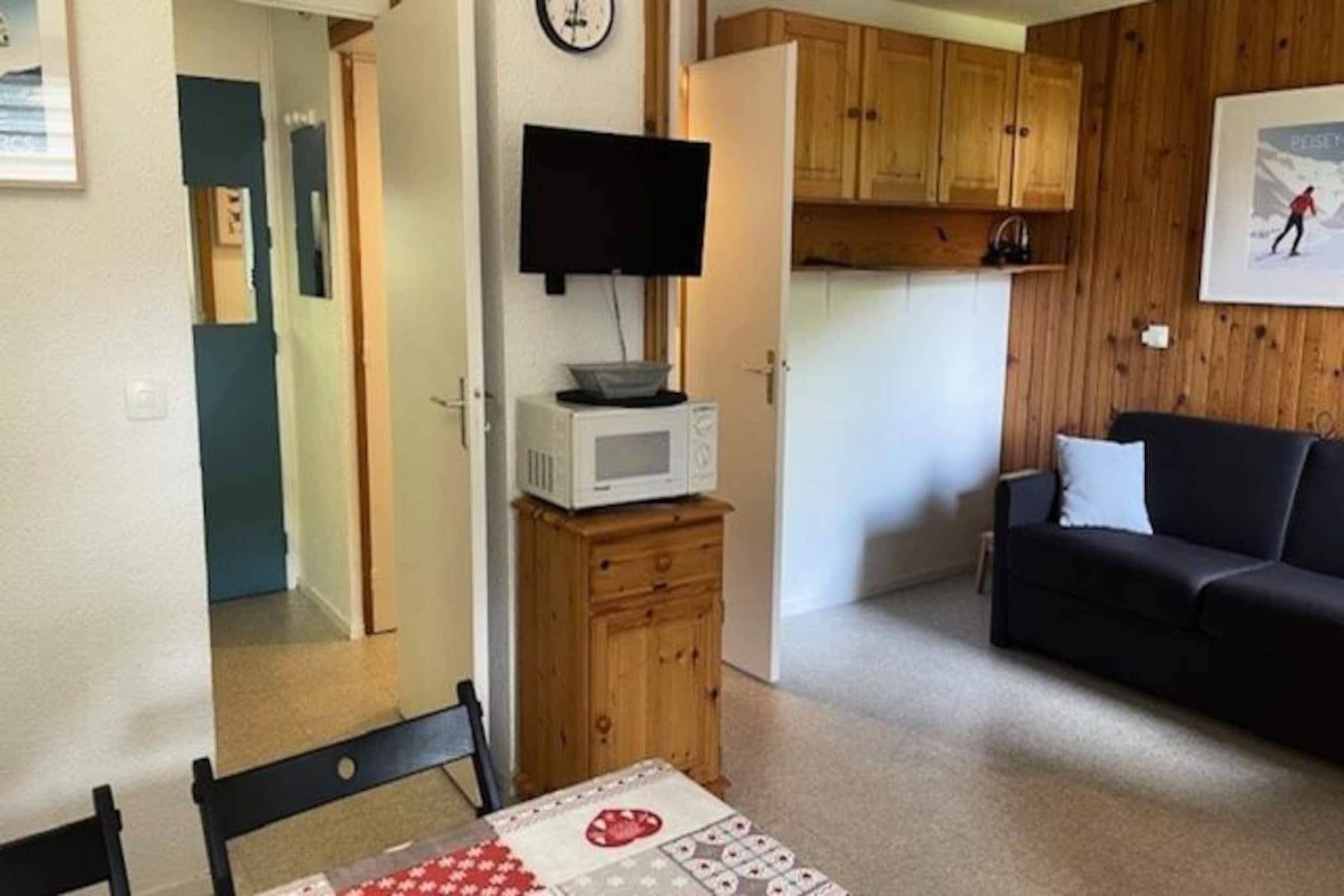 Imagine waking up to the crisp alpine air and the serene beauty of the French Alps, where your cozy studio awaits just steps from the Montchavin gondola. This delightful retreat, nestled in the heart of the resort, offers the perfect base for your mountain adventures, whether you're carving through fresh powder in winter or exploring lush trails in summer. With its southwest-facing balcony, you can soak in the golden hues of the sunset while savoring the breathtaking views of the surrounding peaks. Inside, the 24m² studio is cleverly designed to maximize comfort and functionality. The fully equipped kitchenette features modern appliances, including a dishwasher, oven, microwave, coffee maker, and toaster, making it easy to prepare hearty meals after a day of exploration. The sleeping arrangements are versatile, with a double sofa bed in the sleeping area and another in the dining area, ensuring restful nights for up to four guests. A flat-screen TV adds to the cozy ambiance, while the bathroom with a bathtub and separate toilet provides convenience for your stay. The residence boasts ski lockers for hassle-free storage and free public parking nearby, making your stay even more convenient. Located directly opposite the Montchavin gondola and Evolution 2 ski school, you'll enjoy unparalleled access to the slopes and the vibrant village atmosphere. Whether you're a seasoned skier or a nature enthusiast, this location offers something for everyone. Embrace the charm of Montchavin and create unforgettable memories in this peaceful alpine haven. With its prime location, thoughtful amenities, and stunning surroundings, this studio promises a getaway filled with relaxation, adventure, and the magic of the mountains.