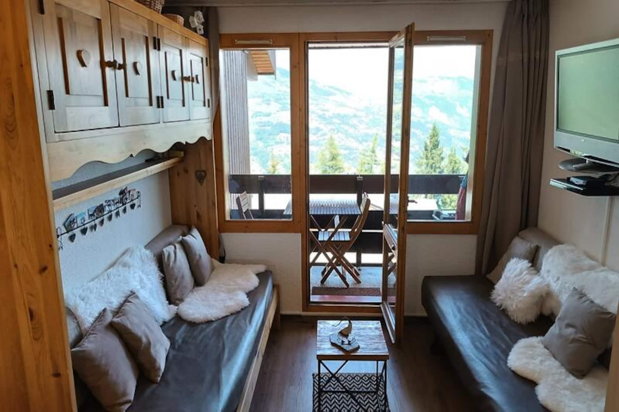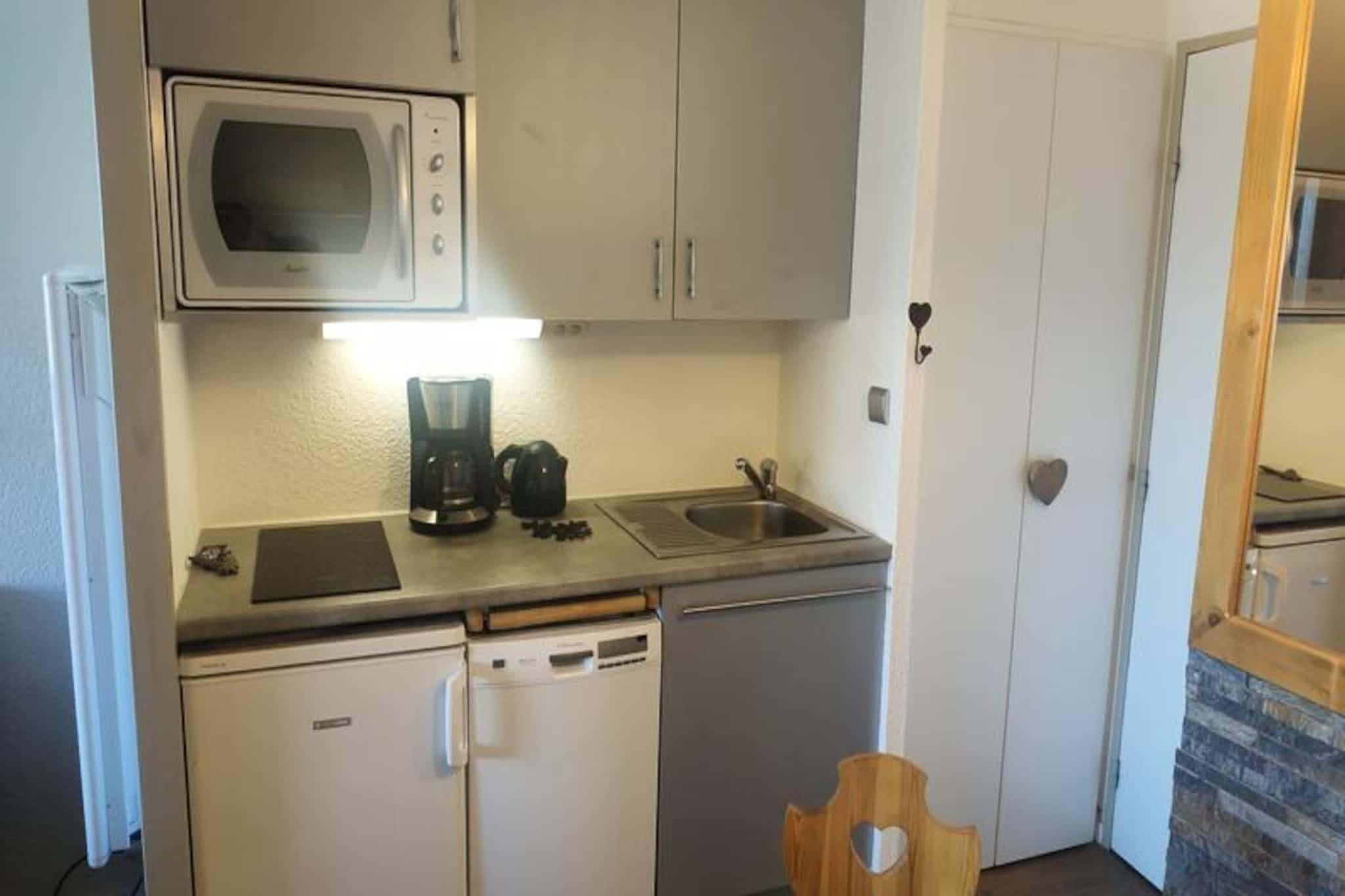 High above the Tarentaise Valley, this charming studio in Les Coches offers an idyllic alpine escape with a touch of modern comfort. Perched on the 4th floor of a well-maintained residence, the apartment boasts a private balcony with breathtaking views of Mont Blanc, inviting you to wake up to the serene beauty of the French Alps. Whether you're here for winter sports or summer hikes, this cozy retreat is your gateway to adventure. Thoughtfully renovated and tastefully decorated, the studio spans 22m² and comfortably accommodates up to four guests. The kitchenette is fully equipped with modern appliances, including a ceramic hob, oven, dishwasher, and coffee maker, ensuring you can prepare meals with ease. The sleeping arrangements include a double sofa bed in the entrance hall and two single beds in the living area, which can be converted into a double bed. A flat-screen television and a bathroom with a bathtub and toilet complete the amenities, offering a relaxing and convenient stay. Located just 200m from the slopes and shops, the residence provides an elevator, ski lockers, and free public parking for your convenience. Ski-in/ski-out access is possible depending on snow conditions, making it an ideal choice for ski enthusiasts. In summer, the surrounding trails and lush landscapes transform the area into a haven for hikers and nature lovers. With its unbeatable location, stunning views, and modern comforts, this studio is perfect for couples, small families, or friends seeking a memorable alpine getaway. Experience the magic of Mont Blanc and the charm of Les Coches in every season.