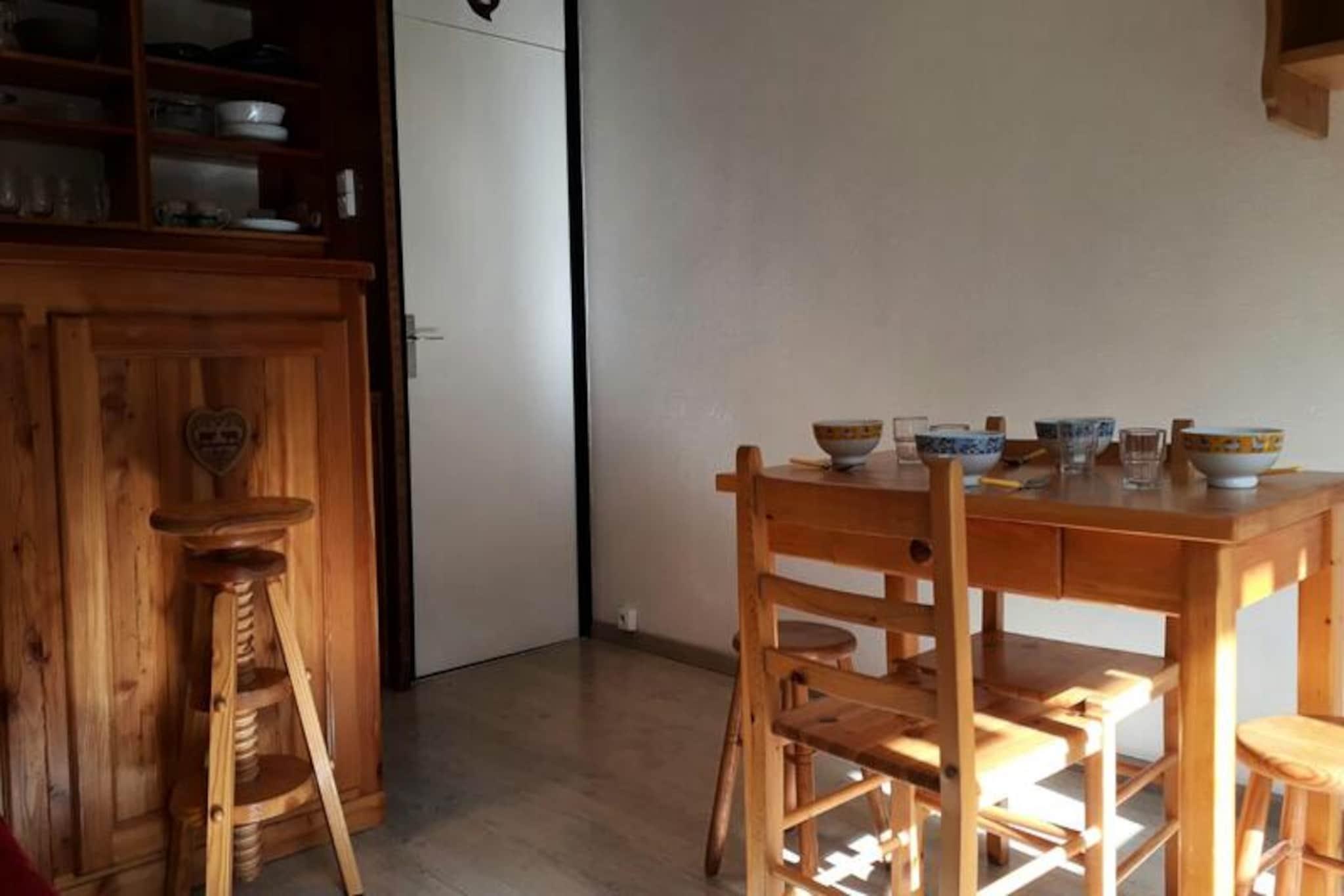 In the heart of the French Alps, where snow-dusted peaks meet the charm of alpine villages, this cozy studio in Plagne Centre offers the perfect retreat for couples seeking a mountain escape. Situated just 200 meters from the resort center and a mere 100 meters from the slopes, this residence ensures you’re always close to the action, whether it’s skiing down pristine runs or enjoying the vibrant après-ski atmosphere. The studio’s west-facing balcony invites you to unwind with views of the surrounding peaks as the sun sets over the mountains. Thoughtfully designed for two, the 19m² studio blends comfort and practicality. Its warm mountain-style decor creates a welcoming ambiance, while the living area features a double trundle bed and a flat-screen TV for cozy evenings in. The kitchenette, equipped with a ceramic hob, refrigerator, combination microwave, and dishwasher, allows you to prepare meals with ease. A modern bathroom with a bathtub and toilet completes the space, ensuring a comfortable stay. Additional conveniences include duvets and a private ski locker, making your alpine adventures hassle-free. Nestled at the exit of Plagne Centre near the Araucaria Hotel, the residence offers easy access to the slopes and nearby amenities. Explore the lively resort center, indulge in local Savoyard cuisine, or take advantage of the world-class Paradiski ski area. Whether you’re here for winter sports or summer hikes, this studio places you at the heart of it all. With its blend of location, comfort, and charm, it’s an ideal choice for your next alpine getaway.