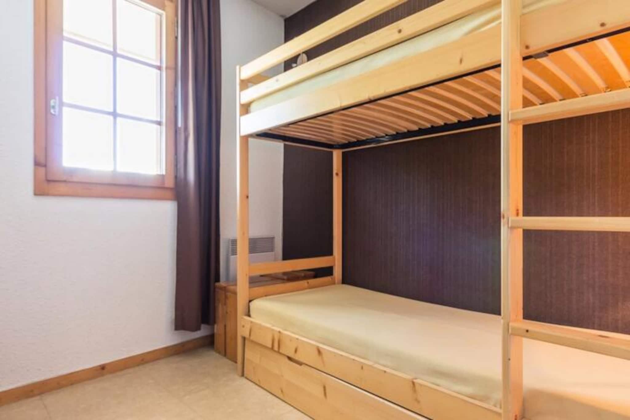 In the heart of the charming village of Montchavin, this delightful alpine apartment offers a cozy retreat for those seeking the perfect mountain escape. With its prime location just 100 meters from the ski slopes, you can step out of your door and immerse yourself in the renowned Paradiski area, a haven for skiers and snowboarders alike. The balcony provides breathtaking dual-aspect views of the valley, inviting you to soak in the serene beauty of the French Alps at any time of day. This thoughtfully designed 33m² apartment accommodates up to 5 guests, making it ideal for families or small groups. The recently renovated kitchen is fully equipped with modern appliances including an electric stovetop, oven, microwave, coffee maker, kettle, toaster, and dishwasher, ensuring you have everything you need to prepare hearty meals after a day on the slopes. The sleeping arrangements are both practical and comfortable, featuring a bedroom with a bunk bed and pull-out bed, as well as a living area with two single sofa beds and an additional pull-out bed. A flat-screen television, a separate bathroom with a bathtub, and a separate toilet add to the convenience and comfort of your stay. The residence offers ski lockers for easy storage of your gear and free public parking nearby. While the building does not have an elevator, its central location in the village ensures that shops, restaurants, and local amenities are all within easy reach. In addition to winter sports, Montchavin transforms into a summer paradise with hiking trails, mountain biking, and breathtaking alpine scenery to explore. Whether you're here to carve through pristine snow or bask in the tranquility of the mountains, this apartment provides the perfect base for creating unforgettable memories in the heart of the Alps. With its warm ambiance, modern comforts, and unbeatable location, it’s a place you’ll want to return to year after year.