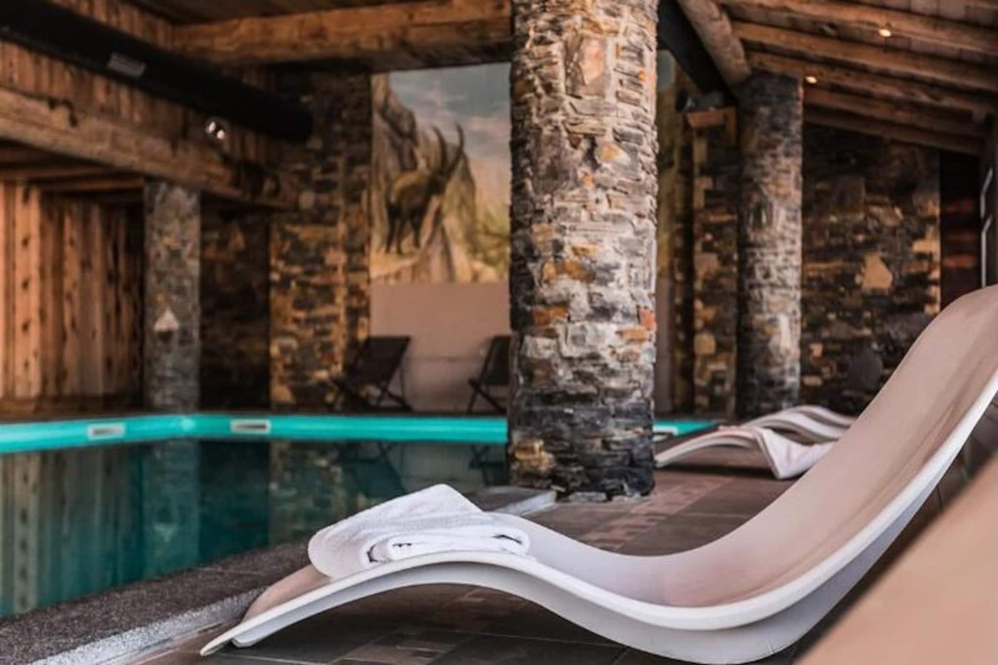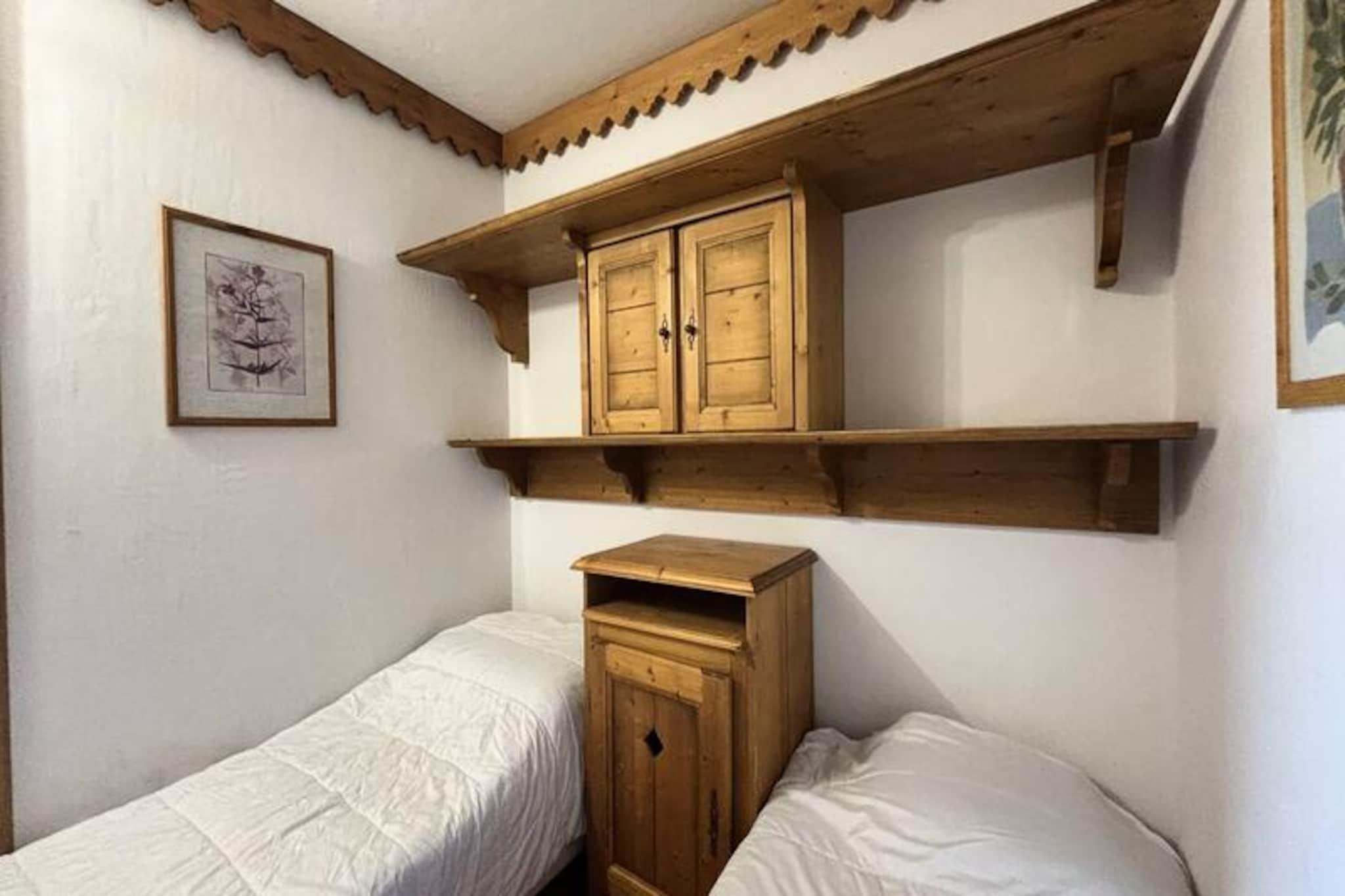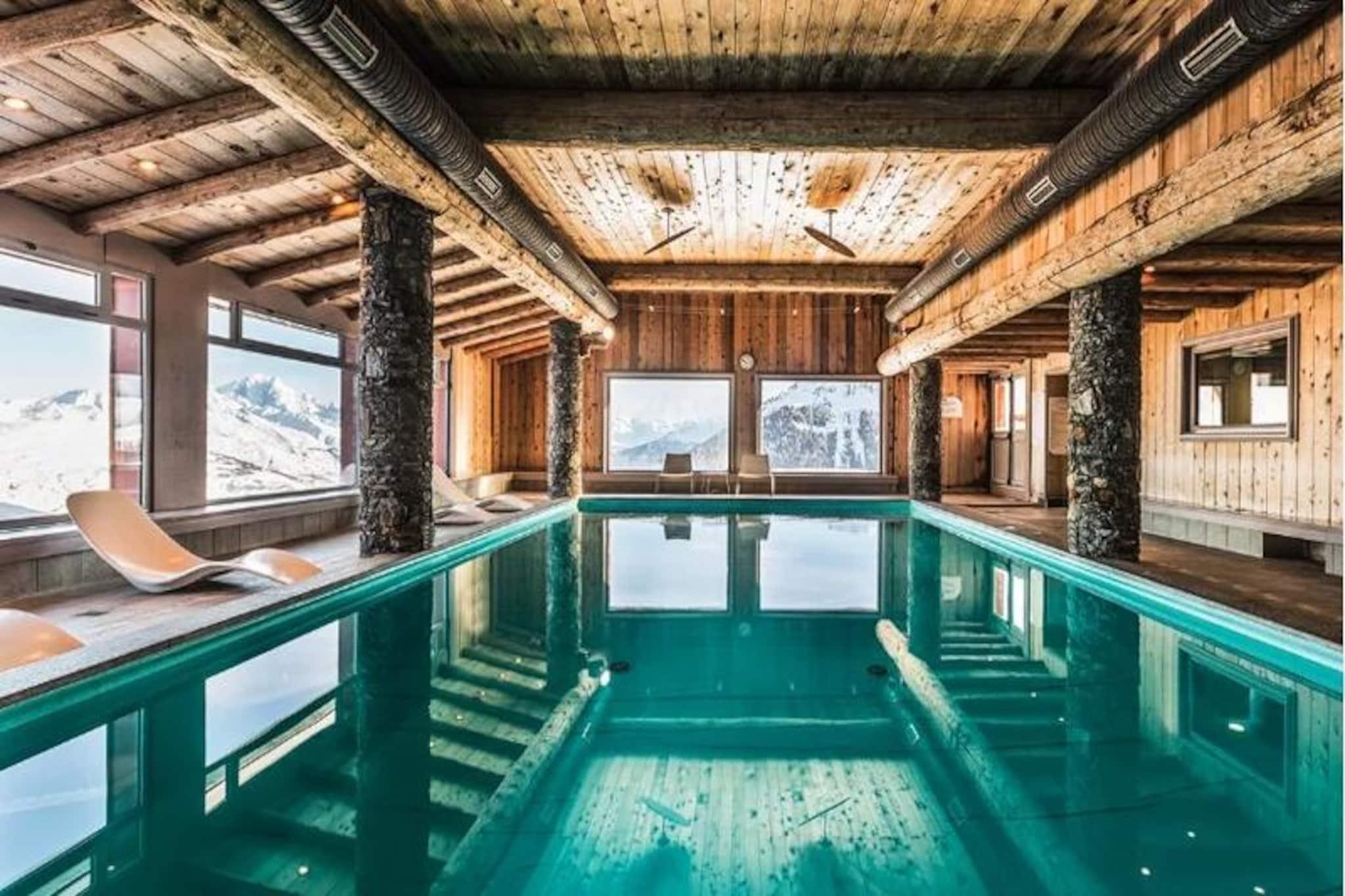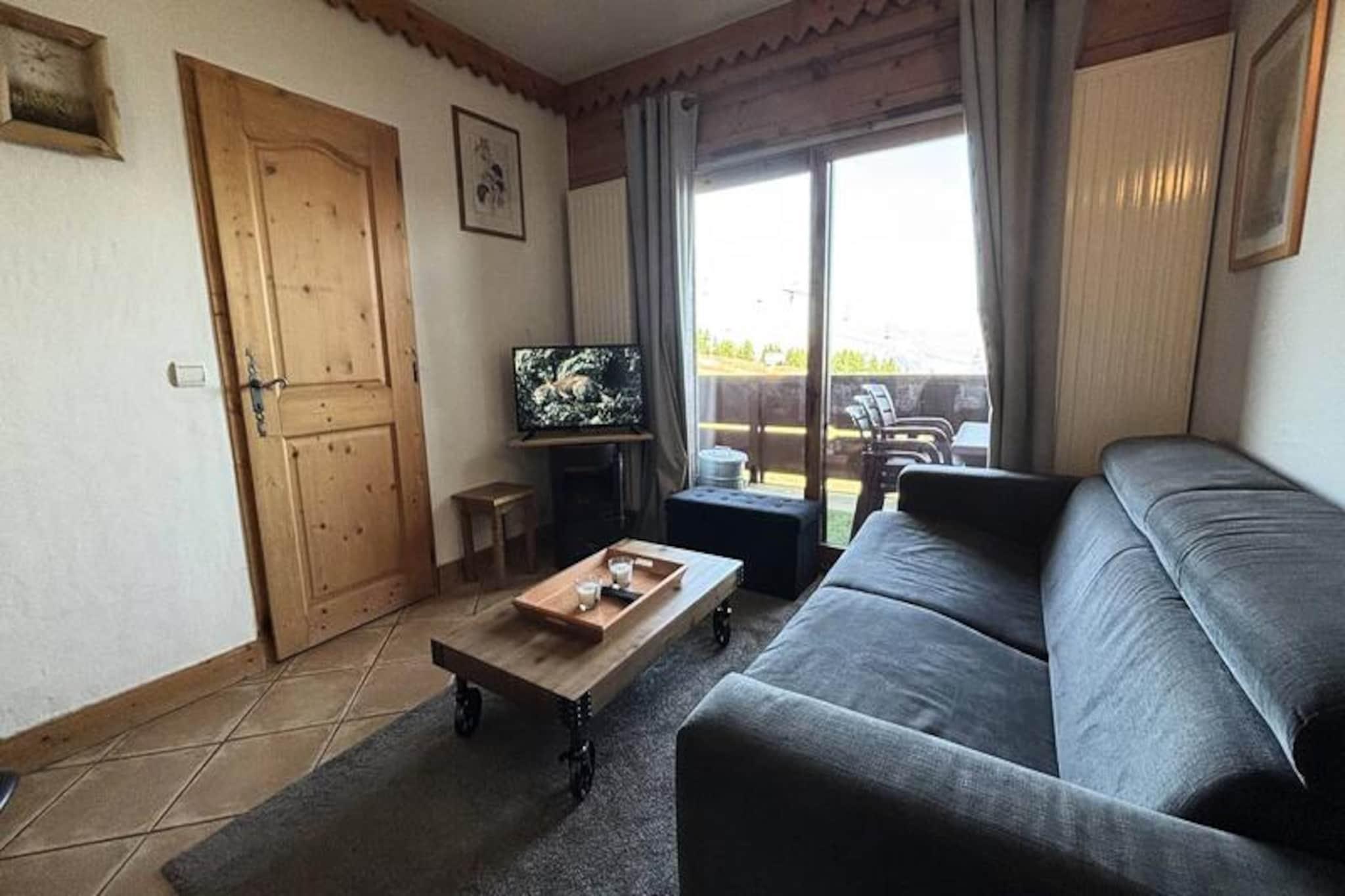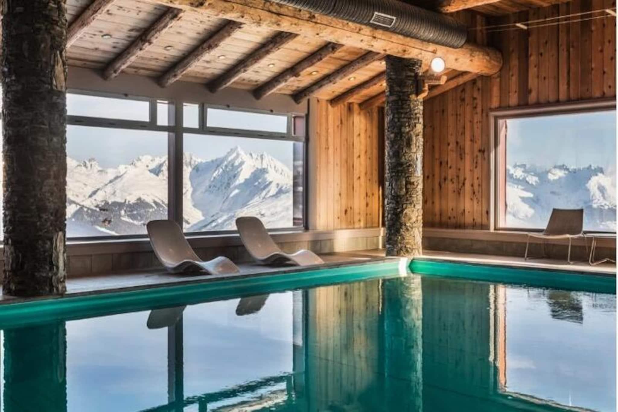 High above the scenic Tarentaise Valley, this charming 40m² apartment offers a serene mountain retreat with direct access to the slopes of Plagne Aime 2000. Located on the 8th floor of the prestigious Les Hauts Bois residence, it combines modern comfort with breathtaking alpine views, making it an ideal choice for families or groups of up to six. Whether you're here to carve through pristine snow or relax amidst stunning landscapes, this property promises an unforgettable stay in the heart of the French Alps. \n\nStep into the bright and inviting living room, where a cozy electric fireplace and a comfortable sofa bed create a warm ambiance. The space opens onto a long east-facing balcony, perfect for soaking in the morning sun and admiring the majestic peaks. The fully equipped kitchen, complete with a dishwasher, ceramic hobs, and a raclette grill, invites you to prepare hearty meals after a day on the slopes. The master bedroom features two single beds that can be joined to form a double, along with an en-suite shower. A second bedroom with twin beds and an additional bathroom with a bathtub ensure ample space and privacy for all guests.\n\nGuests of Les Hauts Bois enjoy exclusive access to a luxurious wellness area, including a swimming pool, sauna, and hammam, perfect for unwinding after an active day. The residence also offers a ski locker and covered parking for added convenience. Just 200 meters away, the vibrant shopping mall at Le Paquebot provides restaurants, shops, and essential services. For further exploration, the cable car connects you to Plagne Centre in minutes, opening up even more opportunities for adventure and leisure.\n\nWhether you're seeking thrilling ski runs, tranquil mountain vistas, or a relaxing spa experience, this apartment in Plagne Aime 2000 delivers it all. Embrace the magic of the Alps and create lasting memories in this exceptional alpine getaway.
