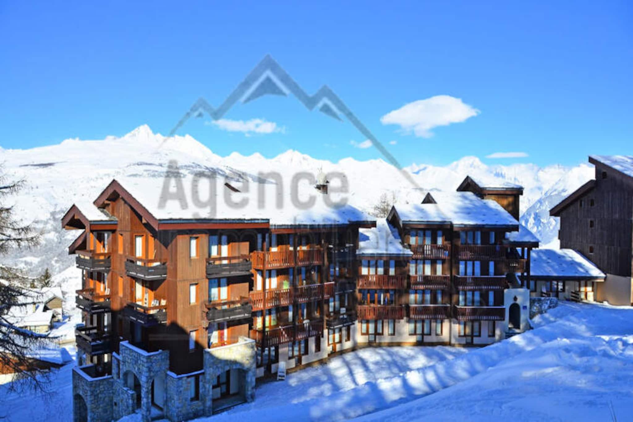 On the sun-drenched slopes of Montchavin Les Coches, this charming apartment offers a cozy retreat in the heart of La Plagne’s alpine paradise. Perfectly situated in the Hameau du Sauget, the residence LE DE 3 combines convenience with comfort, just a three-minute walk from local shops and ski slopes. Imagine stepping out of your door and being on the slopes within a minute, with ski lockers on hand to make your adventures hassle-free. The south-west facing balcony invites you to soak in the resort’s vibrant atmosphere while basking in the mountain views. \n\nDesigned to accommodate up to five guests, the apartment features a practical layout with a kitchenette that opens into the living room. Equipped with ceramic hobs, a refrigerator, dishwasher, and microwave, it’s ideal for preparing meals after a day of exploring. The living room includes a single bed and a trundle bed for two, while the bedroom offers a comfortable double bed behind a sliding door. A bathroom with a bathtub and integrated toilet ensures convenience, while modern touches like a flat-screen TV add to the comfort. \n\nThe residence offers free outdoor parking, making it easy to explore the surrounding area. Whether you’re skiing in winter or hiking in summer, Montchavin Les Coches is a gateway to endless adventures. Nearby, you’ll find charming local shops, restaurants, and après-ski options to complete your alpine experience. For added convenience, Wi-Fi routers and bed linen rentals are available, ensuring a seamless stay. \n\nThis apartment is the perfect base for families or small groups seeking a blend of activity and relaxation in one of the most picturesque corners of the French Alps. With its prime location and thoughtful amenities, your mountain escape awaits.