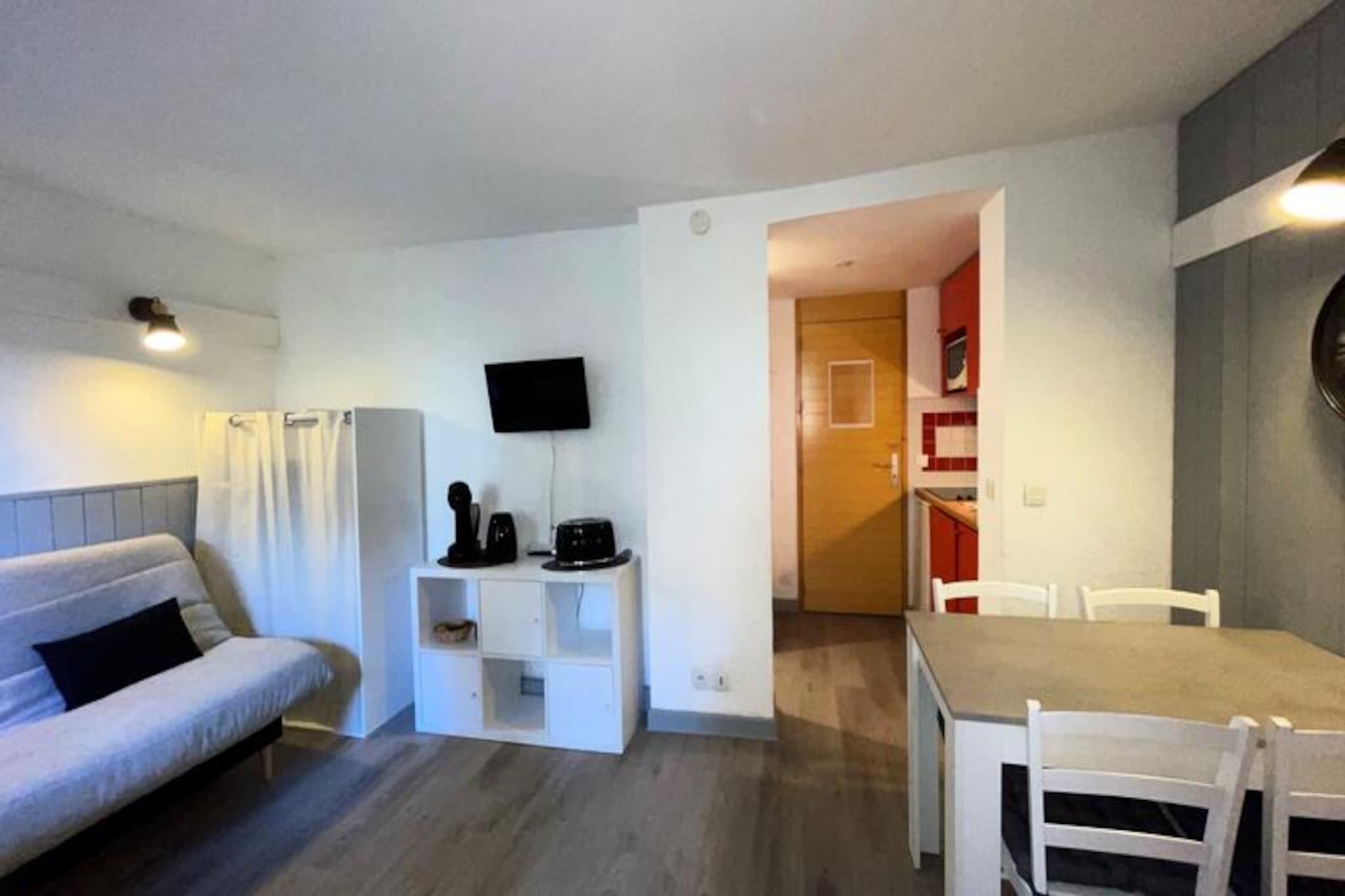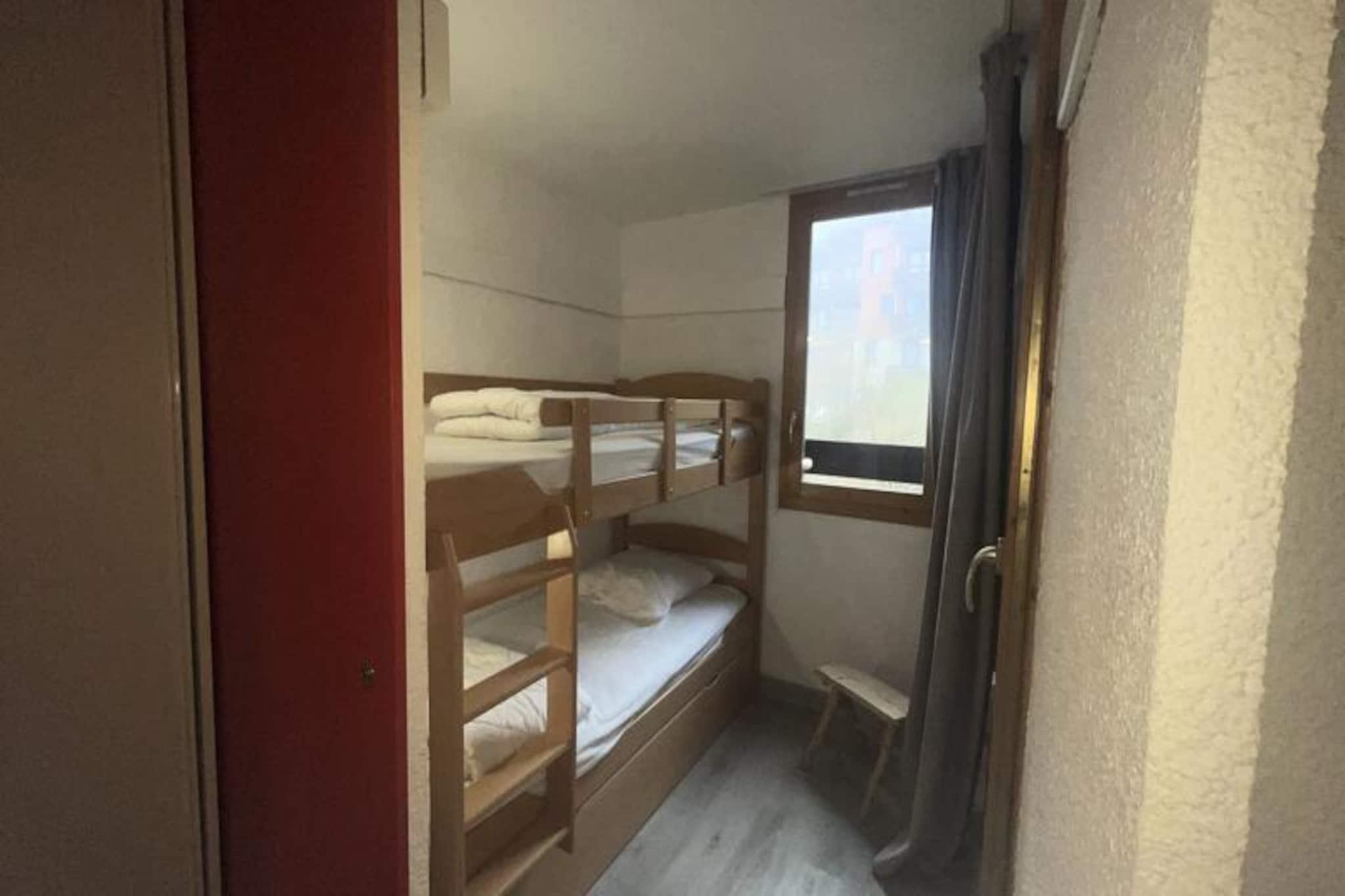 High above the Tarentaise Valley, where the crisp alpine air meets the charm of a cozy mountain village, this dividable studio in Plagne 1800 offers a delightful retreat for ski enthusiasts and nature lovers alike. Located in the Digitale Residence, this property combines the convenience of nearby ski lifts with the tranquility of breathtaking valley and mountain views from your private north-east facing balcony. Whether you’re here for winter sports or summer hikes, this is your gateway to the best of the French Alps. Compact yet thoughtfully designed, the 23 m² studio comfortably accommodates up to four guests. The living area features a double sofa bed, a TV, and ample storage, while a removable partition separates the sleeping area with its cozy bunk beds. The kitchen is fully equipped with a two-burner ceramic hob, microwave, refrigerator, and dishwasher, making meal preparation a breeze. The bathroom includes a bathtub and vanity unit, with a separate toilet for added convenience. For your comfort, the studio is equipped with duvets, and a ski locker is available for secure storage of your gear. Beyond the studio, guests have free access to the outdoor swimming pool in Plagne 1800, perfect for unwinding after a day on the slopes or exploring the mountain trails. The ski lifts are just 500 meters away, and the nearby shops ensure you have everything you need within easy reach. From the vibrant après-ski scene to serene alpine adventures, Plagne 1800 offers something for everyone. Whether you’re seeking thrilling descents, peaceful hikes, or simply a cozy place to relax with stunning views, this studio in the heart of the Alps promises an unforgettable stay. Let the magic of the mountains create memories that will last a lifetime.