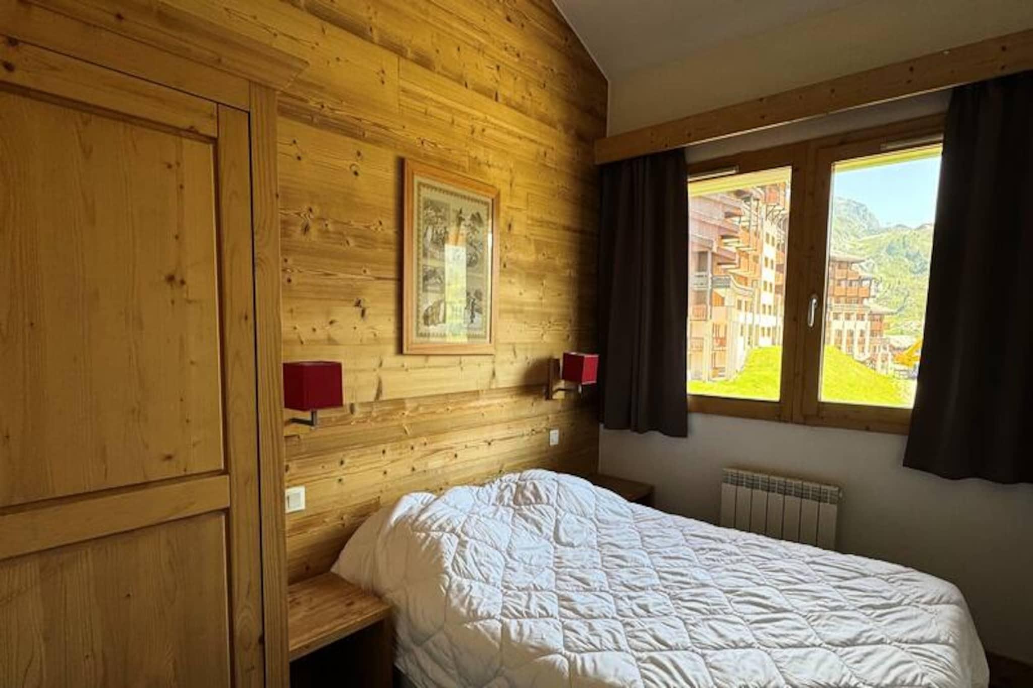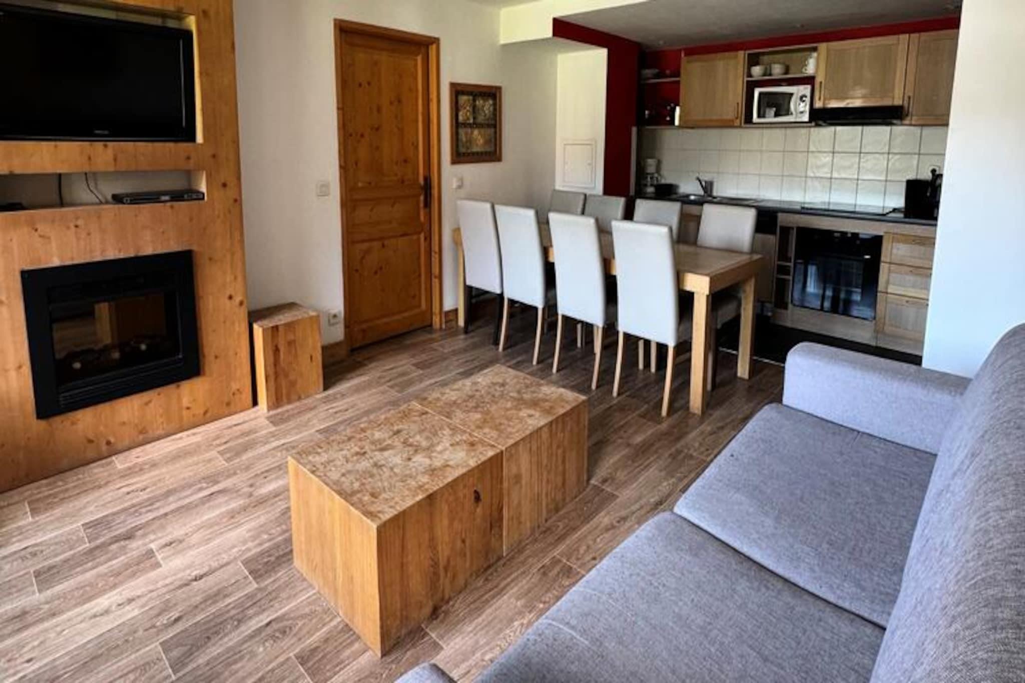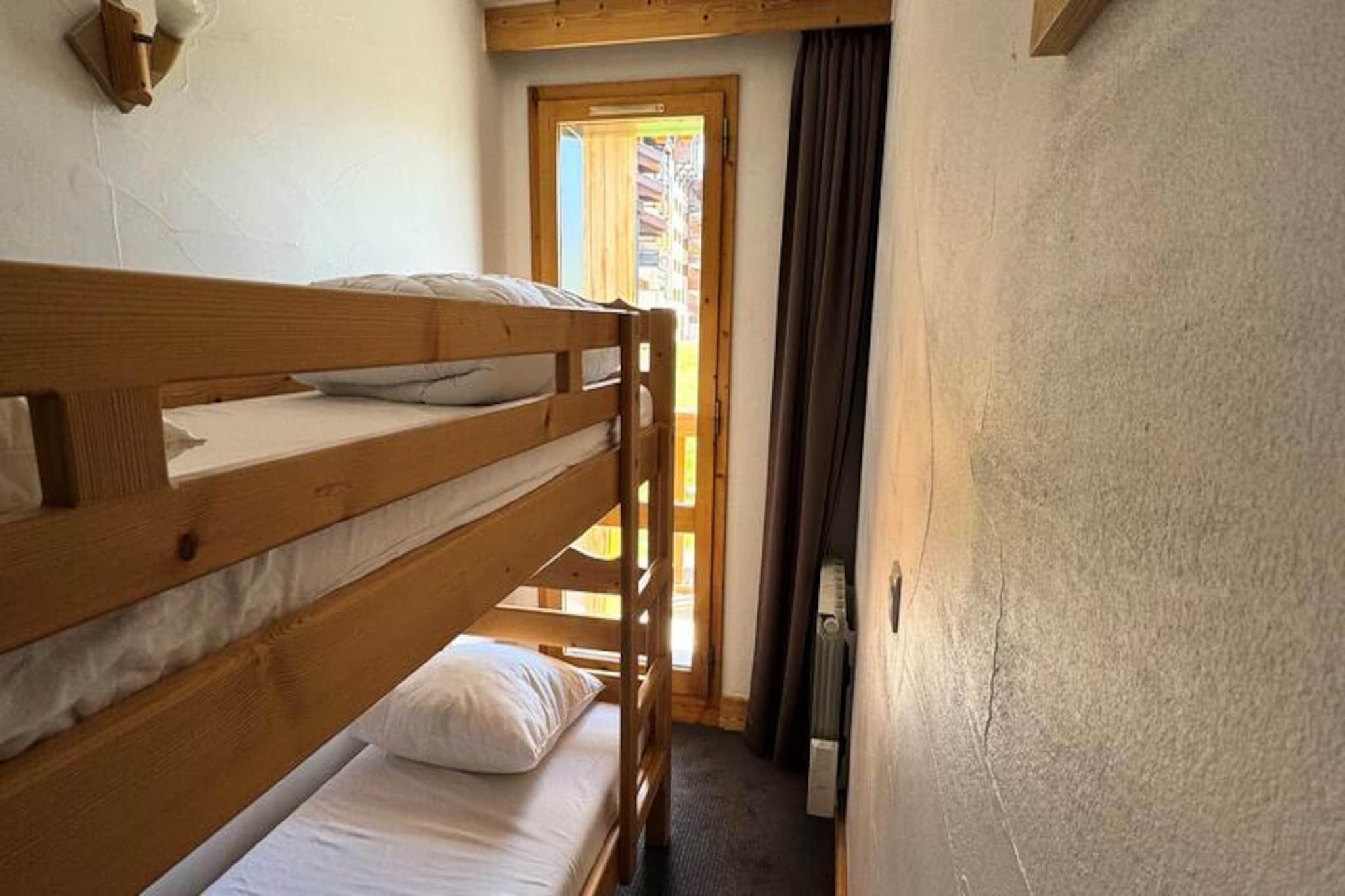 High above the snowy peaks of Belle Plagne, this elegant alpine apartment offers a serene retreat in the heart of the French Alps. Imagine waking up to the sun glistening on the slopes, stepping out onto your south-facing balcony, and soaking in the breathtaking views that stretch as far as the eye can see. Whether you're here for winter adventures or summer escapes, the atmosphere is one of pure tranquility and charm. The residence itself provides direct access to the slopes, ensuring your days begin and end with ease and excitement. \n\nSpanning 70 square meters, this beautifully designed apartment accommodates up to eight guests with its thoughtful layout. The living area features a cozy double sofa bed, a flat-screen TV with DVD player, and an inviting electric fireplace for relaxing evenings. The open-plan kitchen is fully equipped with modern appliances, including a ceramic hob, dishwasher, oven, microwave, and refrigerator with freezer, making it perfect for preparing delicious meals after a day of exploring. The two double bedrooms offer plush comfort, with one featuring an en-suite bathtub and toilet. Two additional cabin rooms with bunk beds provide a fun and practical sleeping arrangement for families or groups. With two bathrooms, a separate toilet, and provided linens and towels, every detail has been considered for your comfort. \n\nThe residence boasts a heated indoor pool and a luxurious wellness center with a sauna, jacuzzi, hammam, and experience shower, offering the ultimate relaxation after a day on the slopes. Shops are conveniently located just 100 meters away, while ski lockers and underground parking ensure your stay is hassle-free. Pets are welcome, so you can bring your furry friend along to enjoy the alpine beauty. \n\nWhether you're drawn to the thrill of skiing, the serenity of mountain hikes, or simply the allure of Belle Plagne's picturesque charm, this apartment is your gateway to unforgettable memories. Let the majestic peaks and warm comforts of this residence inspire your next alpine adventure.