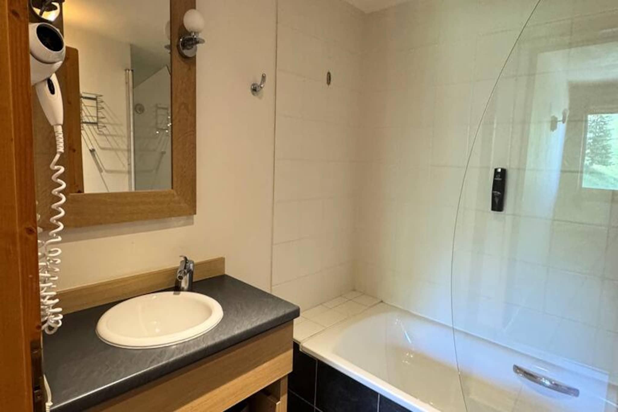 High above the charming alpine village of Belle Plagne, this delightful residence offers a perfect blend of comfort and convenience for your mountain getaway. With direct access to the slopes, you can step out of the building and immerse yourself in the breathtaking beauty of the French Alps, whether you're skiing in winter or hiking in summer. The serene setting, combined with modern amenities, ensures an unforgettable stay for families, couples, or groups of friends. This spacious 53m² three-room apartment accommodates up to six guests and is thoughtfully designed for relaxation after a day of adventure. The living room features a cozy double sofa bed and a flat-screen TV, while the master bedroom boasts a comfortable double bed and a private shower. A second bedroom with bunk beds is perfect for children or additional guests. The open-plan kitchen is fully equipped with a ceramic hob, dishwasher, oven, microwave, and refrigerator with freezer, making it easy to prepare meals and enjoy quality time together. The apartment also includes a bathroom with a bathtub and a separate WC, ensuring convenience for all guests. The residence itself offers a range of luxurious amenities, including a heated indoor swimming pool and a wellness center with a sauna, jacuzzi, hammam, and experience shower. Ski lockers on the first floor provide added convenience, and the nearby shops, just 100 meters away, make it easy to stock up on essentials or enjoy a meal out. For those traveling by car, a paid underground parking garage with direct access to the residence is available. Whether you're seeking thrilling days on the slopes, peaceful evenings by the fire, or rejuvenating moments in the wellness center, this Belle Plagne retreat is the ideal base for creating lasting memories in the heart of the Alps.
