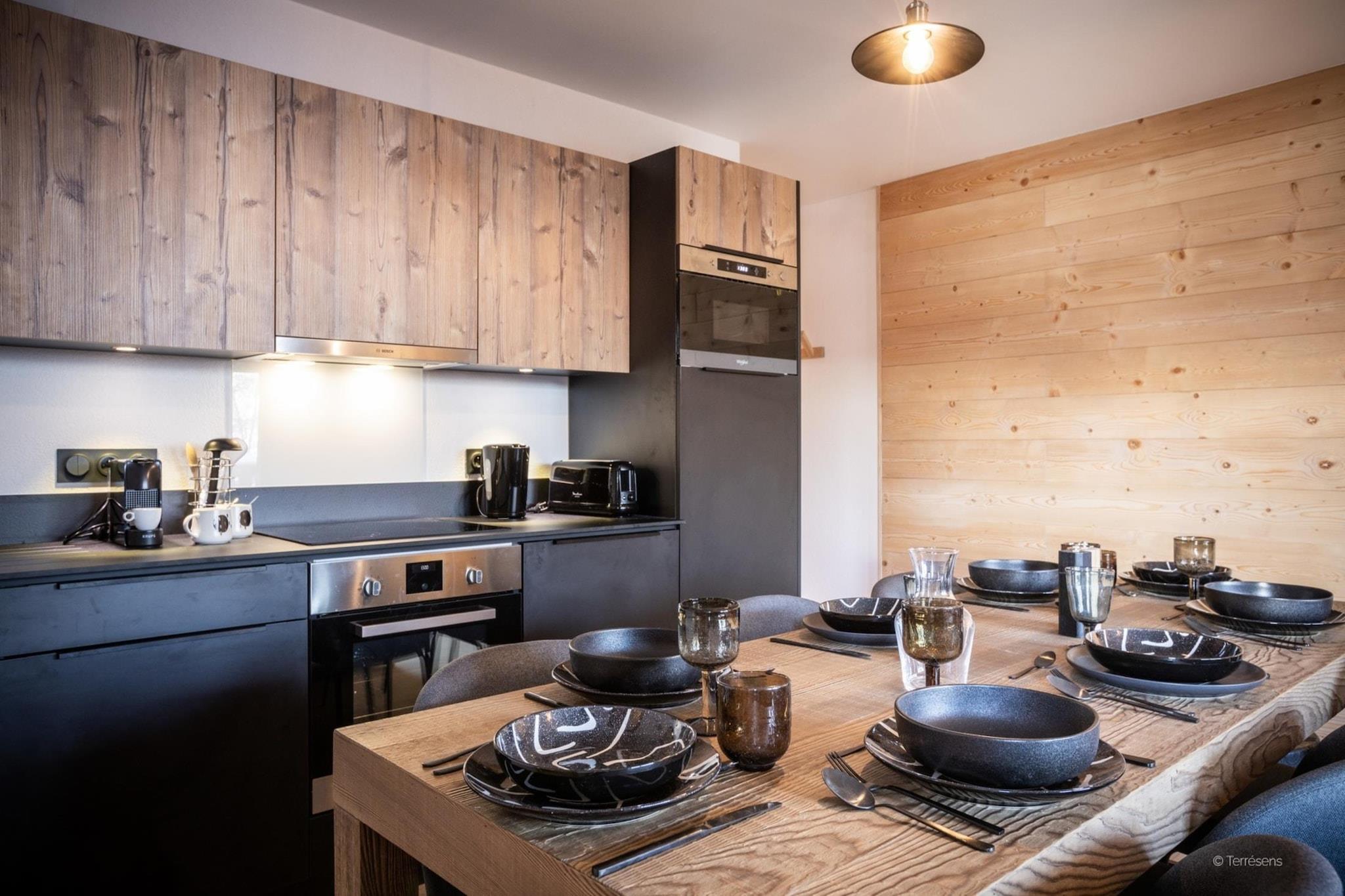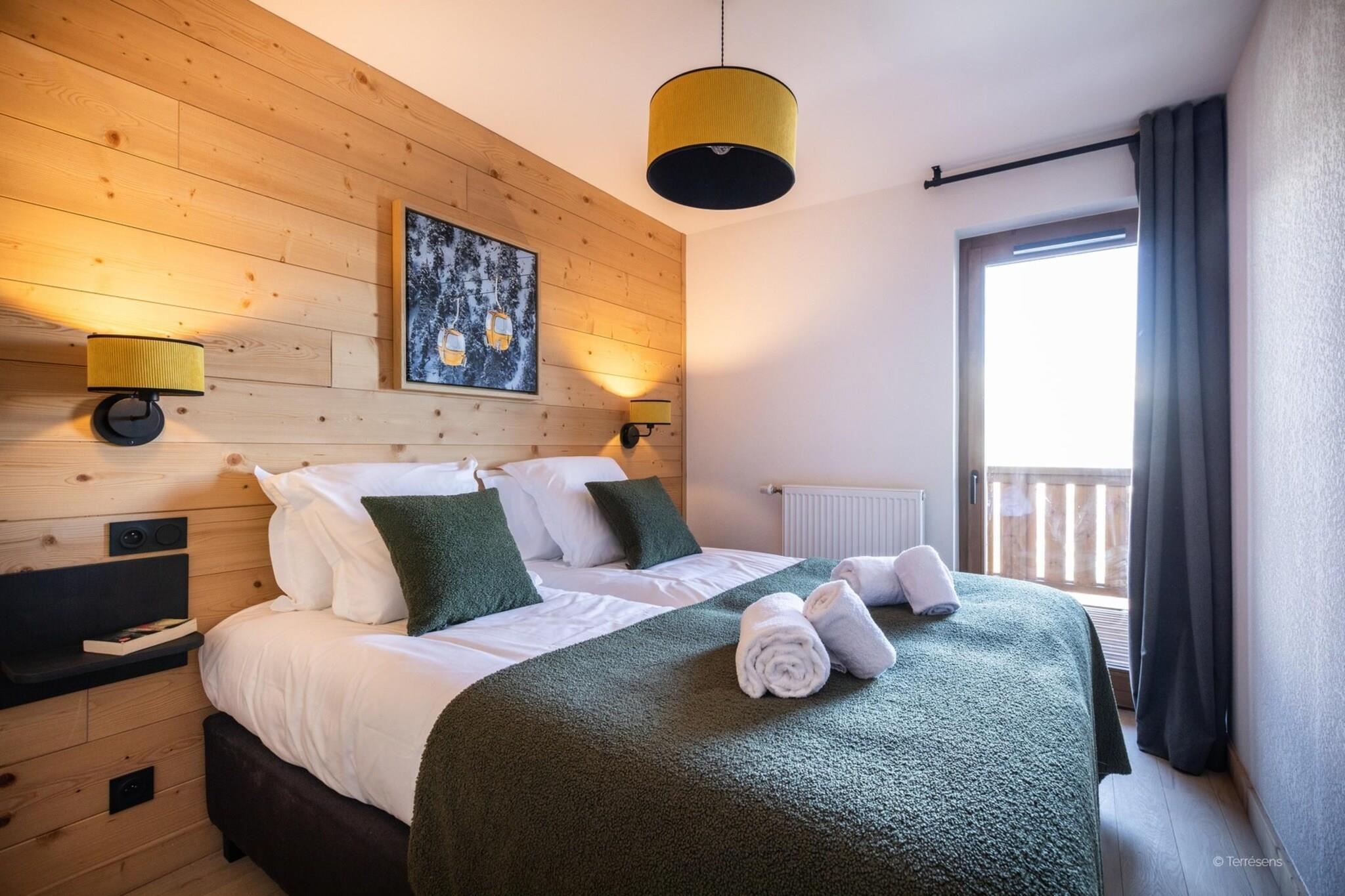 This cozy and modern apartment offers the ultimate ski-in/ski-out experience, conveniently located just a short walk from the Fornelet cable car, which provides access to the Prajourdan ski area in only 6 minutes. Ideal for families or groups, the apartment accommodates up to 8 guests with 3 spacious bedrooms and 2 bathrooms. Guests will enjoy beautiful views from the terraces or balconies that open onto the picturesque mountain landscape. In addition to the excellent location, the apartment features a fully equipped kitchen and designer furnishings that blend contemporary comfort with a cozy mountain feel. The property offers premium services including gourmet breakfasts, snacks, and a convivial dining bar, along with lively entertainment to enhance your stay. Situated in the heart of Aime-la-Plagne, this residence is just a 5-minute walk from shops, restaurants, and bars, allowing easy access to both leisure and essential services. The apartment also ensures you have everything you need for a comfortable stay, including relaxing communal spaces, ensuring a truly memorable mountain escape.