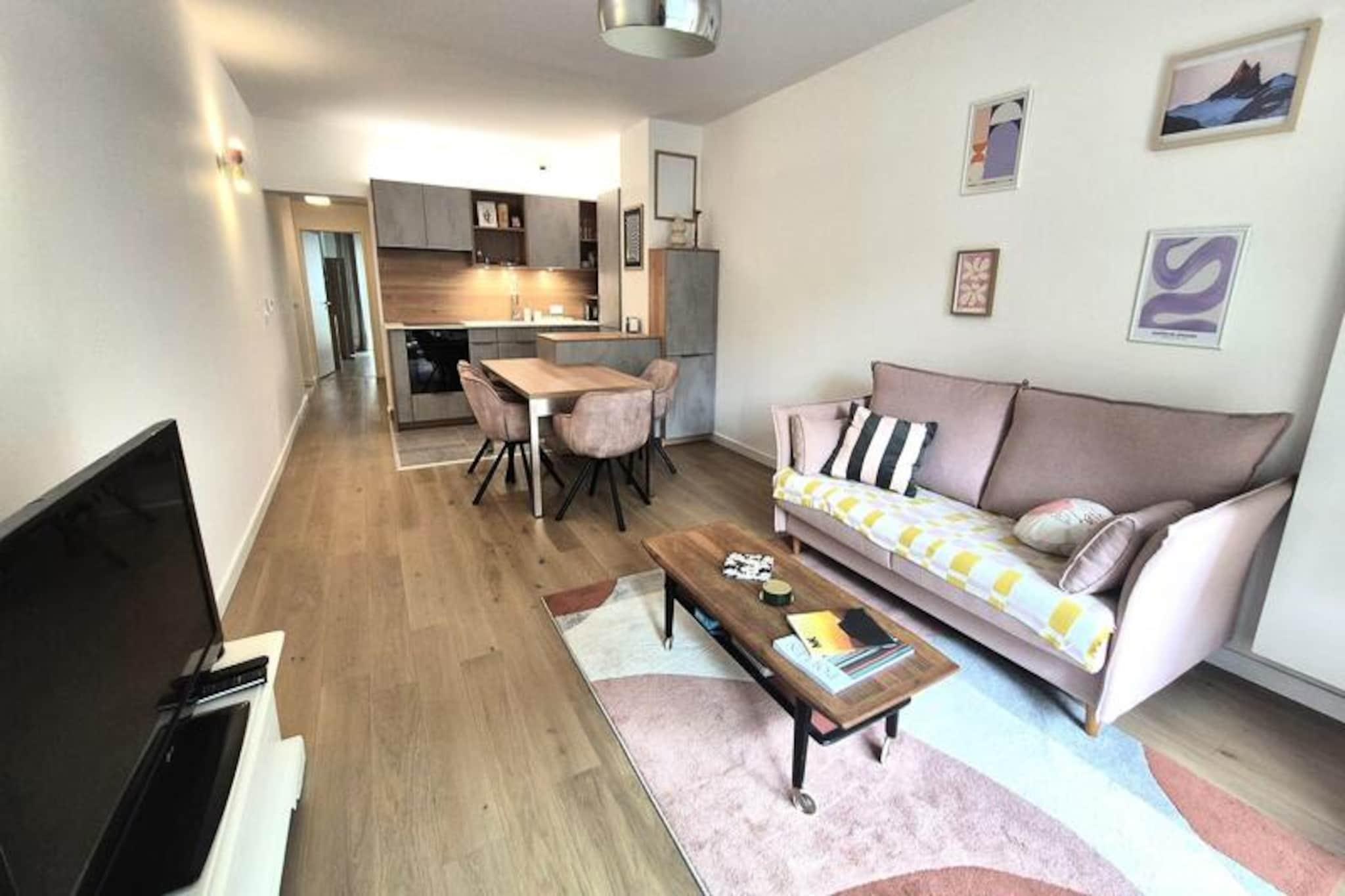 In the heart of Aix-les-Bains, where the charm of Belle Époque architecture meets the serenity of alpine landscapes, this elegant apartment offers a refined retreat for your next getaway. Located at 17 Rue Isaline, the prestigious PARIS Residence, built in 2024, combines modern luxury with timeless appeal. Just steps from the vibrant town center, you’ll find yourself immersed in a world of flowers, fountains, and leisurely strolls through lush green parks. Whether you’re here to explore the thermal baths, enjoy the casino, or simply relax by the lake, this location offers the perfect balance of tranquility and convenience. This 70m² ground-floor apartment, classified as 4-star furnished tourist accommodation, is designed to comfortably host up to four guests. The spacious living area features an open-plan kitchen equipped with high-end appliances, a cozy lounge with a flat-screen TV, and a dining space perfect for shared meals. Two beautifully appointed bedrooms offer restful retreats, with a king-size bed in one and a queen-size bed in the other, each complemented by ample storage. The modern bathroom boasts a walk-in shower, heated towel rail, and a washing machine for added convenience. Step outside to enjoy the south-facing terrace or the intimate north-facing patio, both furnished for relaxation and al fresco dining. Beyond the apartment, Aix-les-Bains invites you to discover its treasures. The Chevalley Thermal Baths are just 1 km away, offering rejuvenating spa experiences, while the shores of Lake Bourget, only 2.5 km from your doorstep, provide opportunities for boating, swimming, and lakeside picnics. For those seeking adventure, Mont Revard, 20 km away, promises breathtaking views and outdoor activities year-round. With secure underground parking, bicycle storage, and additional services like linen rental and end-of-stay cleaning, this property ensures a seamless and memorable stay. Experience the best of Aix-les-Bains from this stylish and serene retreat.