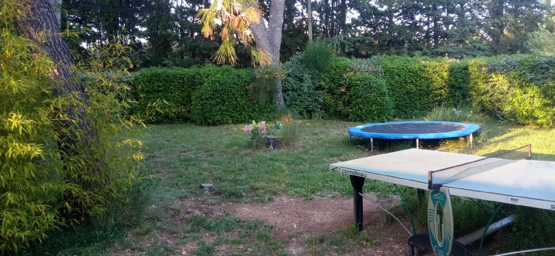 The house has an attractive wooden facade and large bay windows opening onto a private, enclosed 800m2 garden planted with pine trees, with private parking. Private terrace with garden furniture and gas hob. Large trampoline for children in the garden.
