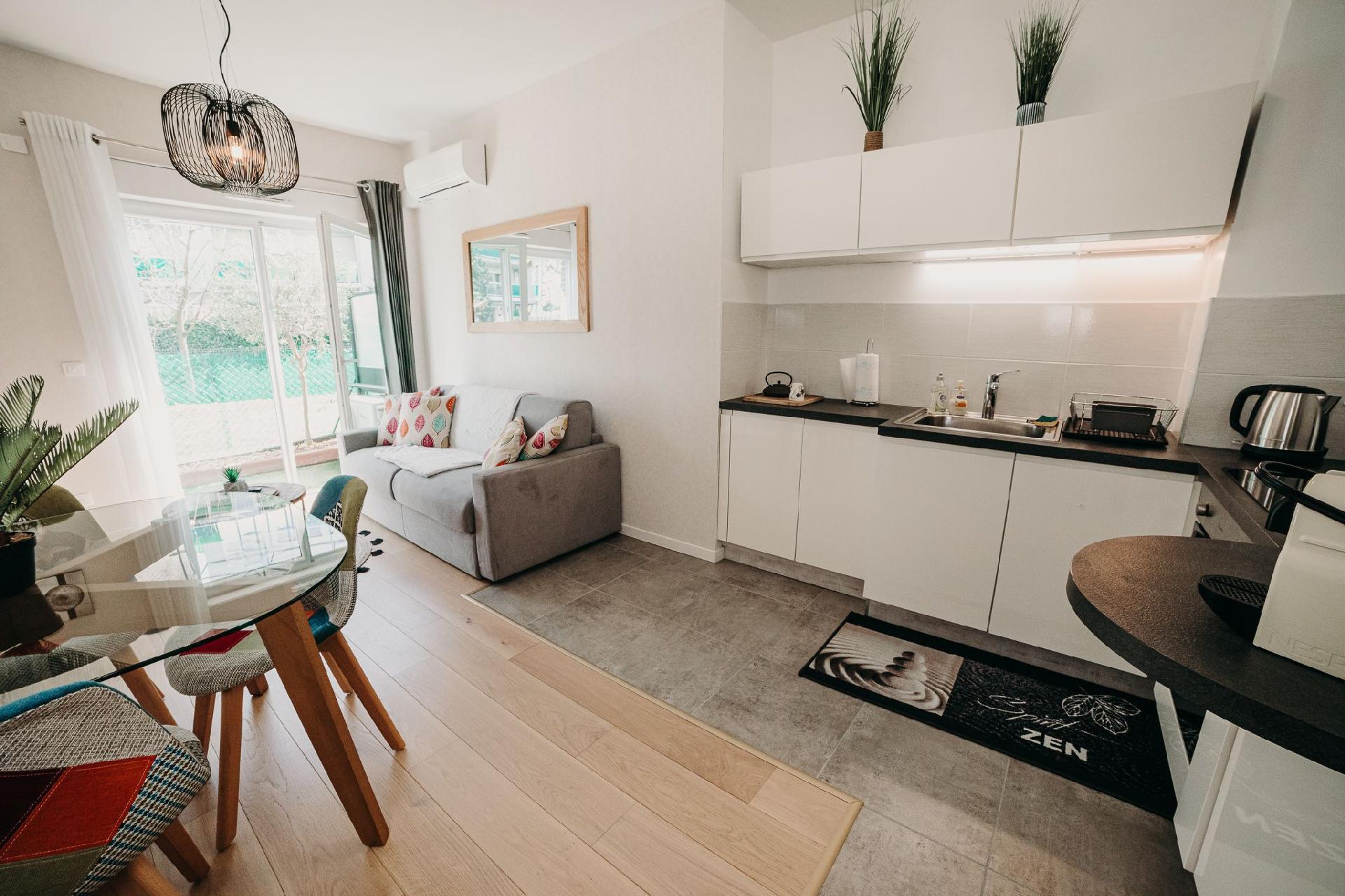 The interior of the flat is designed for your comfort and well-being, with integrated air conditioning for a pleasant temperature all year round. The property comprises one bedroom and one bathroom with shower, promising an intimate and relaxing space after a day of activities. The kitchen, equipped with a three-plate cooker, induction hob, pod coffee maker and electric kettle, allows you to prepare meals as you would at home. The private washing machine adds a touch of convenience to your stay, allowing you to pack light.