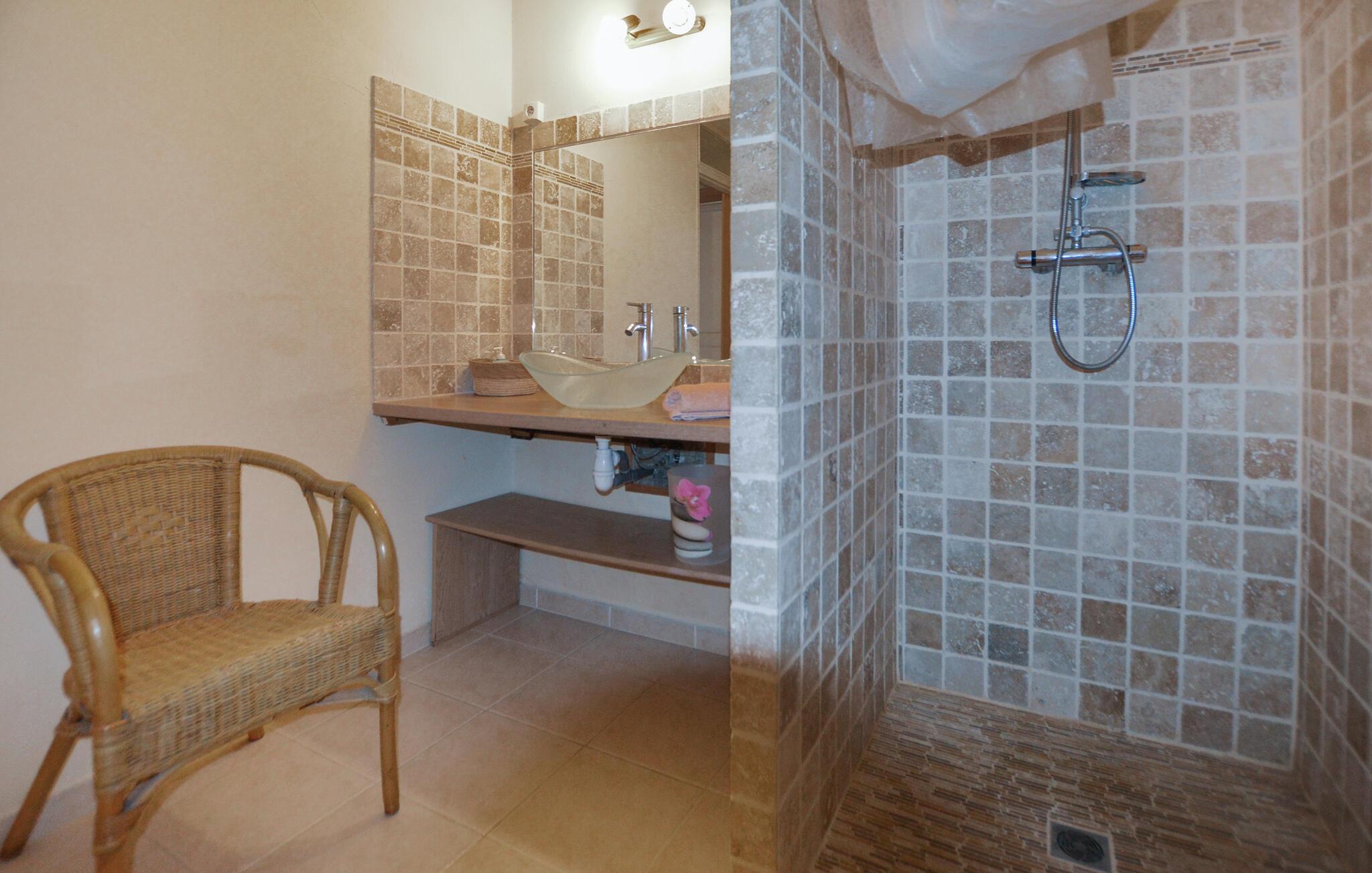 Dieses charmante Studio im Erdgeschoss bietet Ihnen eine perfekte Mischung aus praktischem Komfort und mediterranem Flair. Der helle Wohnbereich ist ansprechend eingerichtet und sorgt mit seiner durchdachten Raumaufteilung für ein angenehmes Wohngefühl. Die gut ausgestattete Küchenzeile ermöglicht Ihnen volle Unabhängigkeit, während der gemütliche Schlafbereich für erholsame Nächte sorgt. Ein echtes Highlight ist die private Terrasse – ein wunderbarer Ort, um bei einem Kaffee den Tag zu beginnen oder laue Sommerabende entspannt ausklingen zu lassen.