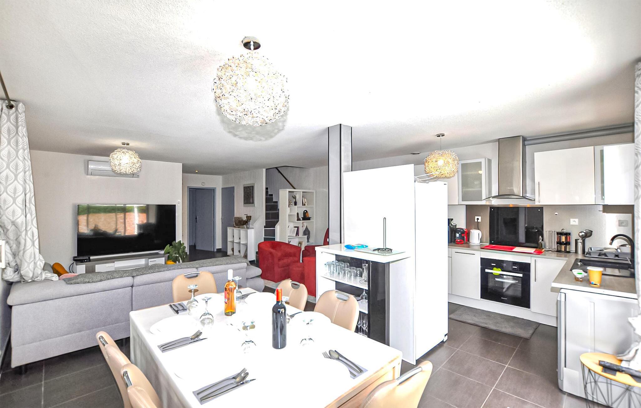 Diese schöne Wohnung ist der ideale Ausgangspunkt, um diese faszinierende südfranzösische Region zu entdecken. Starten Sie Ihren Morgen mit einem gemütlichen Frühstück unter dem Sonnenschirm auf der Terrasse und genießen Sie dabei die freie Urlaubzeit und die Vorfreude auf den bevorstehenden Tag. Die warme mediterrane Sonne und die entspannte Atmosphäre machen diesen Ort zu einer Oase der Ruhe. Die gut ausgestattete Küche bietet Ihnen alles, was Sie brauchen, um gemeinsam zu kochen. Kaufen Sie dafür regionale Produkte auf den lebhaften Wochenmärkten von Perpignan. Abends lädt das behagliche Wohnzimmer dazu ein, den Tag bei einem Glas Wein ausklingen zu lassen und die Erlebnisse Revue passieren zu lassen.