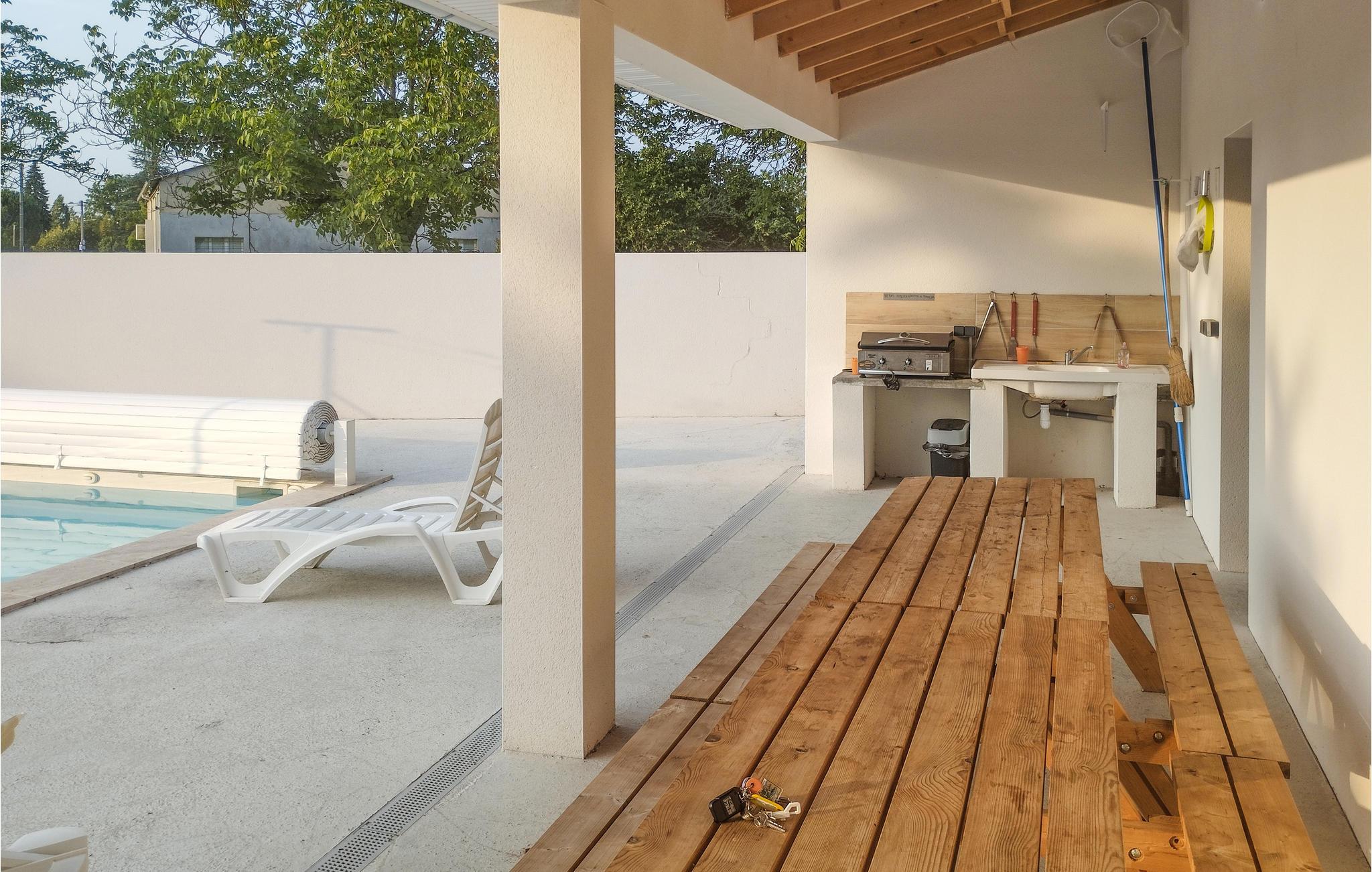 Der geschlossene Gartenbereich wird sicher ein beliebter Rückzugsort während Ihres Urlaubs. Verbringen Sie entspannte Stunden auf der Terrasse, während Ihre Kinder und Vierbeiner sich im Freien austoben. Schwimmen Sie ab und zu eine Runde im Pool und nutzen Sie später die kleine Außenküche mit Grill für ein leckeres Barbecue.