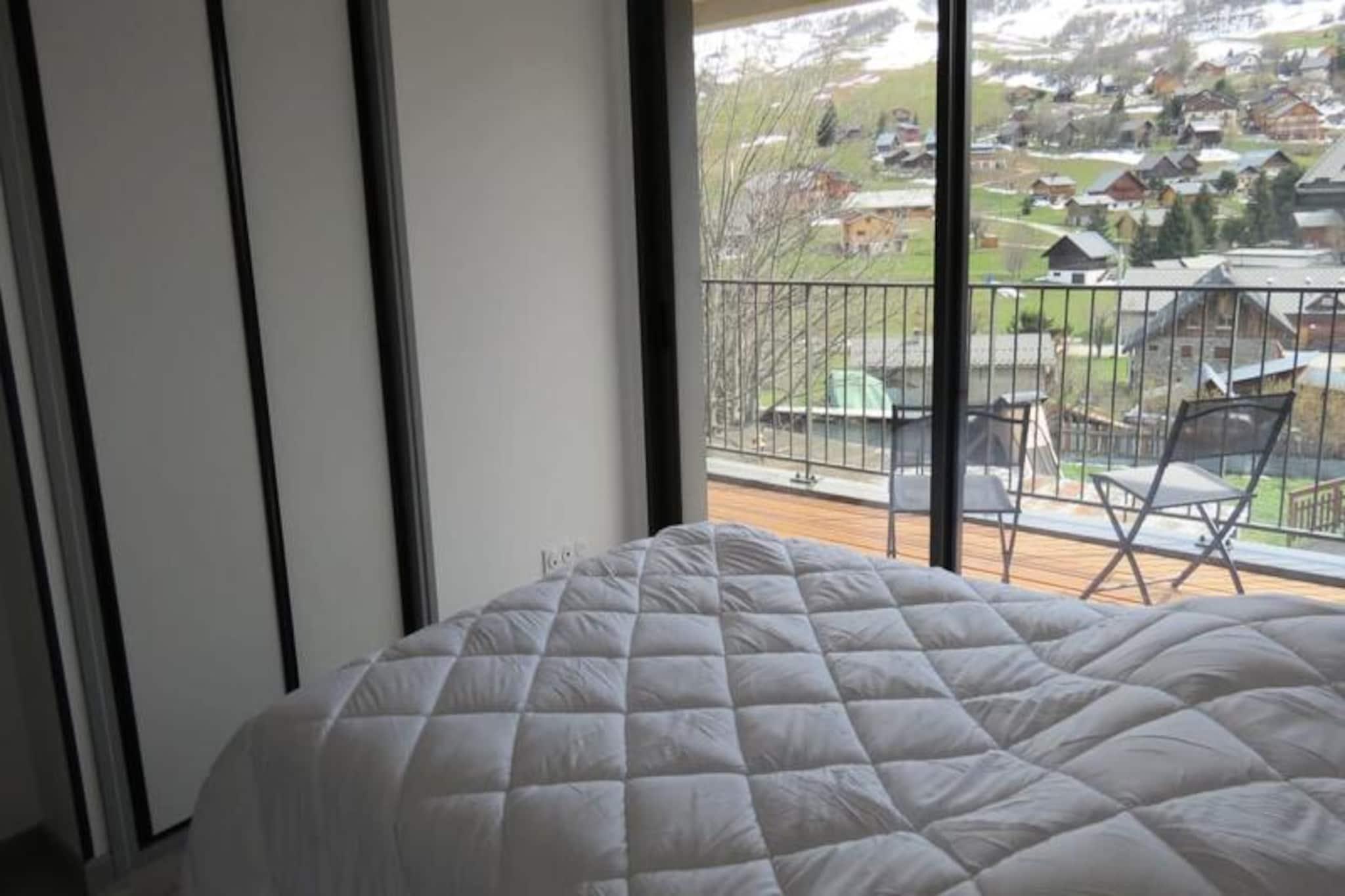 High above the picturesque Maurienne Valley, this spacious 95 m² apartment in Albiez-Montrond invites you to a serene alpine escape. With breathtaking mountain views from its 20 m² balcony and direct ski-in ski-out access (snow conditions permitting), this retreat is perfect for families and groups seeking both adventure and relaxation. Imagine waking up to the crisp mountain air, savoring your morning coffee as the sun illuminates the slopes, and stepping straight into a day of skiing or tobogganing just outside your door. The apartment is thoughtfully designed to combine comfort and functionality. The bright living room, featuring a large bay window, opens onto the balcony, creating a seamless indoor-outdoor connection. A cozy sofa bed, television, and a dining area with a large table make it ideal for evenings spent together. The open-plan kitchen is fully equipped with modern appliances, including an oven, stovetop, refrigerator, and coffee maker, ensuring you have everything needed for home-cooked meals. Three inviting bedrooms—two with double beds and one with twin beds—provide restful spaces for up to eight guests. Fresh linens and towels are included, and the bathroom offers a shower, sink, and ample storage. Additional amenities like heated ski boot racks and an elevator enhance your stay. Located just a 2-minute walk from Place de l'Opinel, the apartment is close to charming shops, restaurants, and the ESF ski school, only 300 meters away. Albiez-Montrond is a family-friendly resort with 35 km of diverse slopes and 8 ski lifts, catering to all skill levels. Beyond skiing, enjoy cozy local eateries, a cinema, and scenic trails. For a change of pace, the vibrant town of Saint-Jean-de-Maurienne is a short 30-minute drive, offering supermarkets, bakeries, cheese shops, and more. Whether you’re here for the slopes, the tranquility, or the warm alpine hospitality, this apartment is your gateway to unforgettable mountain memories. Book your stay today and let the magic of Albiez-Montrond captivate you.