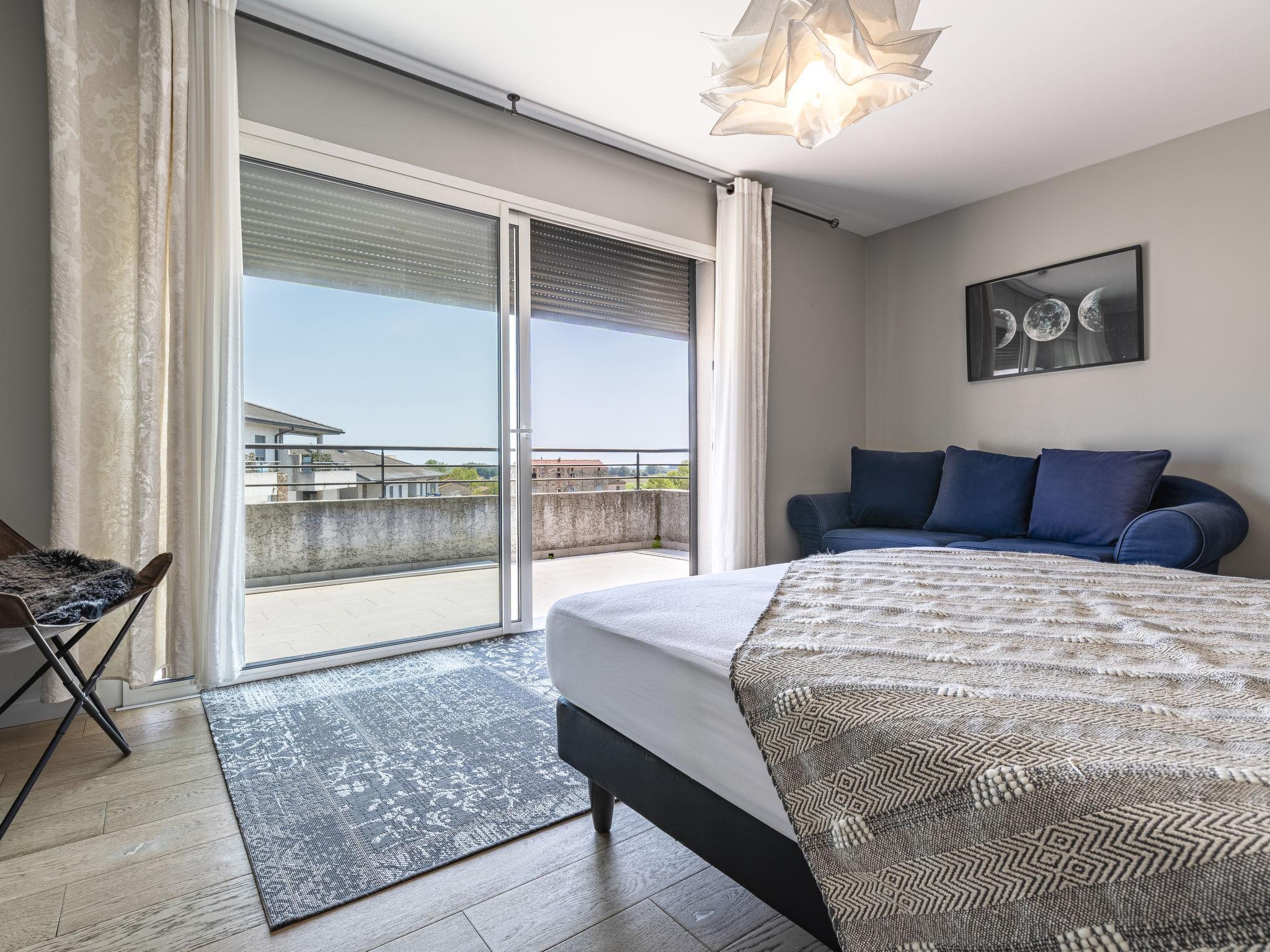 "La Vallée", 4-room apartment 170 m2 on 4th floor. Comfortable and beautiful furnishings: living/dining room with open-hearth fireplace (only for decoration), dining table and TV (flat screen). Exit to the terrace. 2 rooms, each room with 1 french bed (160 cm, length 200 cm). Exit to the terrace. 1 room with 1 french bed (140 cm, length 200 cm). Kitchen (5 hot plates, oven, dishwasher, toaster, kettle, microwave, electric coffee machine). Shower, sep. WC. Electric heating, air-conditioning. Large terrace partly roofed, east facing position and south facing position. Terrace furniture, electric barbecue, sitting area. Beautiful view of the mountains and the countryside. Facilities: washing machine, iron, hair dryer. Internet (WiFi). Parking (2 cars). Please note: fridge without freezer, non-smokers only. Smoke alarm. Offer by a private individual according to Art. 155, IV of CGI.