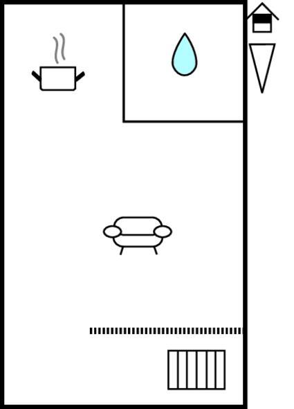 Wohnraum/Küche - 2 Schlafmöglichkeiten. (Einzelbett(en)). 2 Schlafmöglichkeiten. (Schlafsofa,Matratze,Sonstiges).