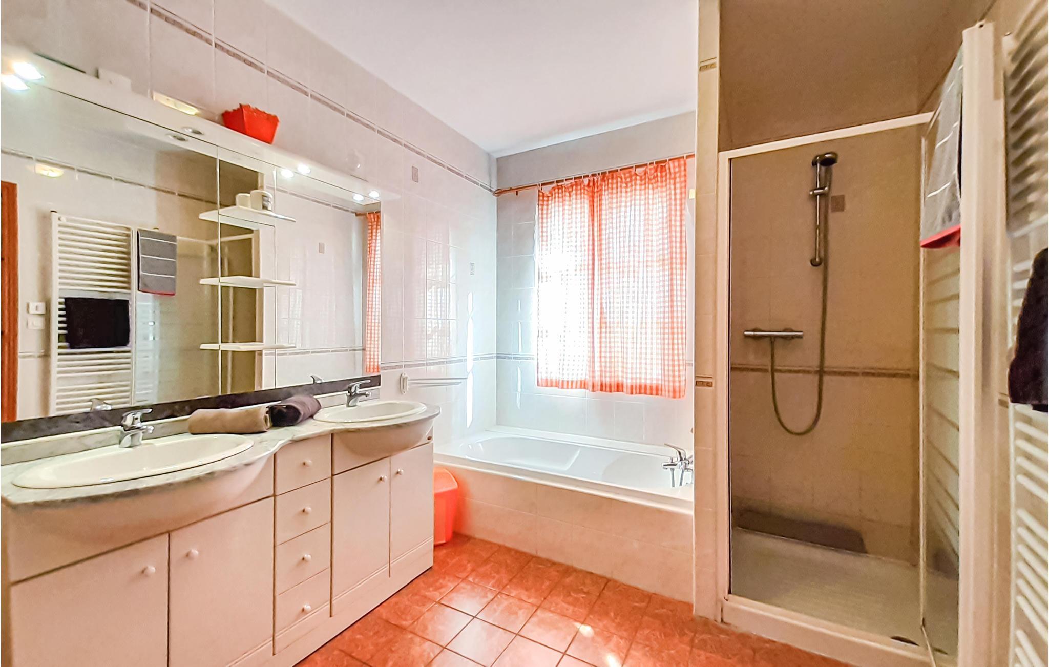 Badezimmer (nr. 1) - WC. Warmes und kaltes Wasser. Dusche und Badewanne