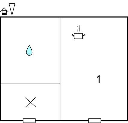 Wohnraum/Küche - 1 Schlafmöglichkeit. (Einzelbett(en)). 2 Schlafmöglichkeiten. (Doppelbett(en)).