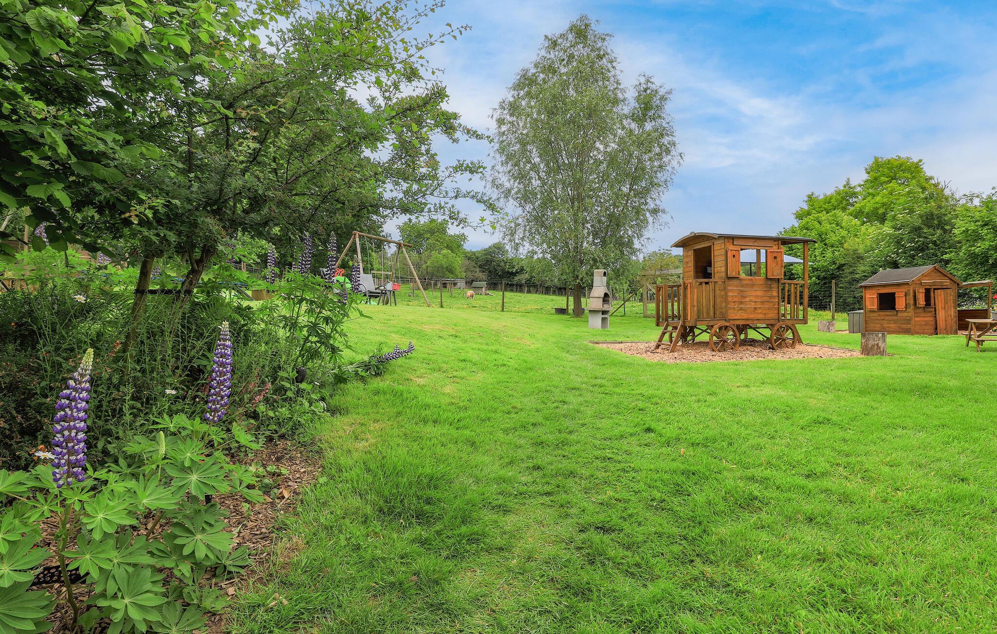 Auf dem herrlichen Grundstück finden Groß und Klein wunderbare Plätze zum Spielen und Entspannen. Bereiten Sie auf der Terrasse alles für einen gemütlichen Grillnachmittag vor, während Ihre Kinder zufrieden schaukeln und buddeln.
