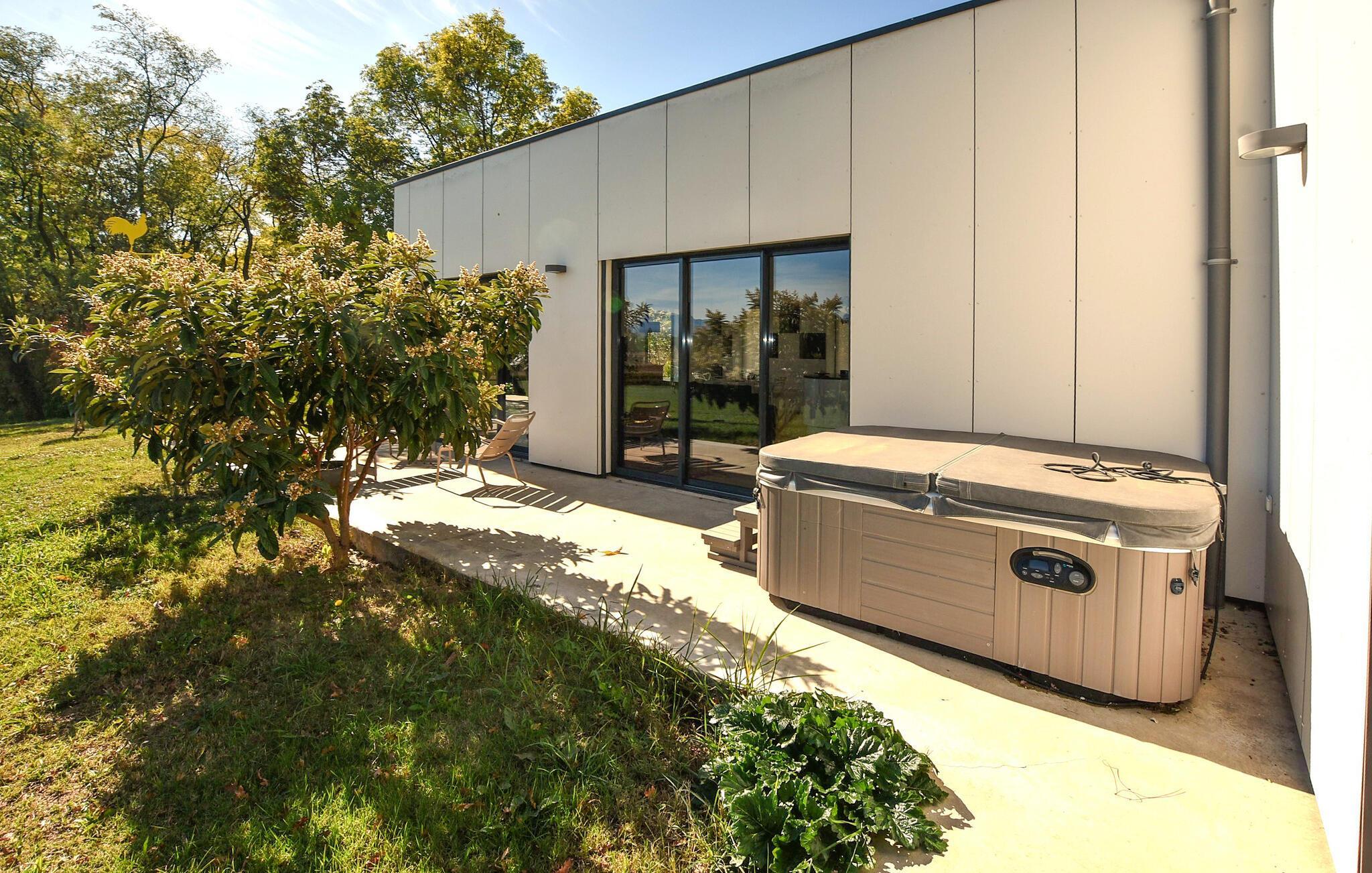 Erfrischen Sie sich an heißen Tagen im gemeinschaftlichen Pool oder gönnen Sie sich wohlige Momente in Ihrem Whirlpool. Lassen Sie bei einem Frühstück auf Ihrer Terrasse den Blick über die weite Landschaft schweifen und bereiten Sie sich köstliche Gerichte am Grill zu.