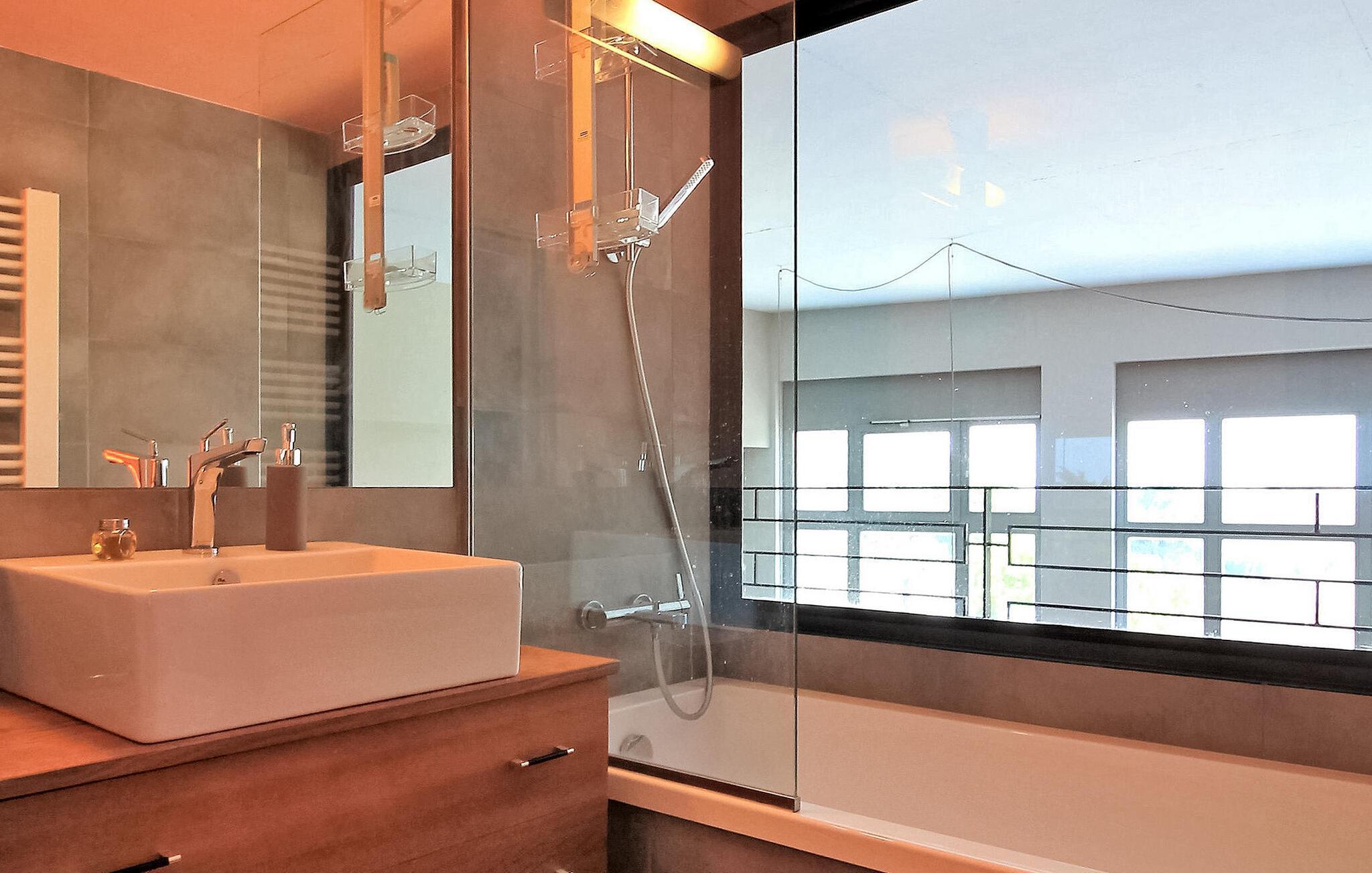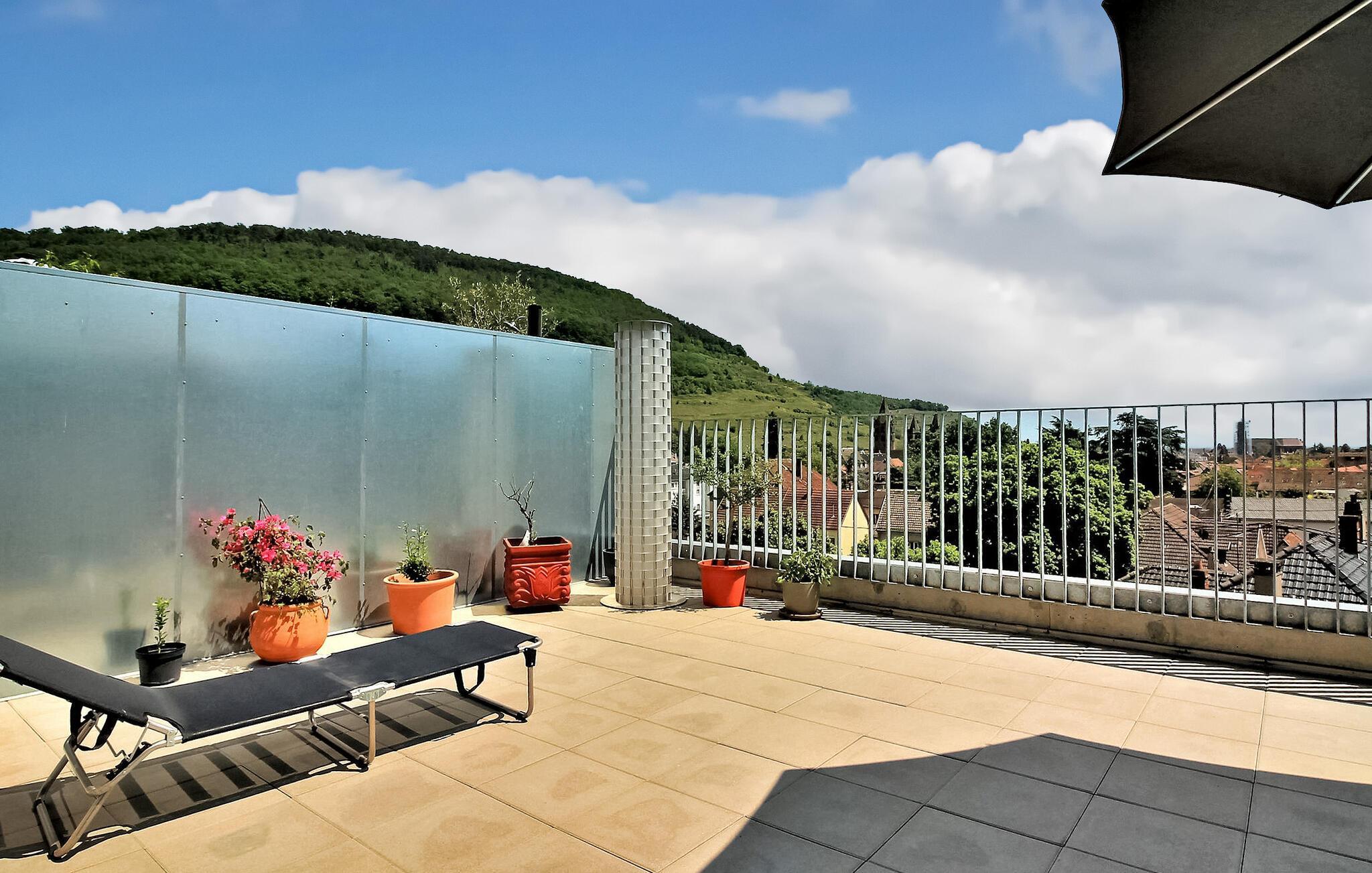 Entdecken Sie eine Ferienwohnung im zweiten Stock mit Terrasse und Panoramablick, direkt vor der Haustür der Vogesen-Weinberge. Genießen Sie von der Terrasse aus die malerische Landschaft der Weinberge, der Stadt und der Schweizer Alpen. Das Apartment bietet eine nahtlose Mischung aus Komfort und Stil. Beim Betreten finden Sie einen einladenden Raum vor, in dem der Wohnbereich mühelos mit der Küche, der Terrasse und der oberen Ebene verbunden ist. Die nach Südosten ausgerichtete Fassade mit automatischen Rollläden durchflutet den Raum mit natürlichem Licht und bietet einen atemberaubenden Panoramablick. Ein Arbeitsbereich blickt auf den Wohnbereich und draußen lädt eine großzügige Terrasse mit Liegestühlen, einem Tisch, 8 Stühlen und einer elektrischen Plancha zu herrlichen Momenten im Freien ein. Hinweis: Schlafzimmer 1 ist zum darunter liegenden Wohnbereich hin offen und durch eine Schiebetrennwand mit Schlafzimmer 2 verbunden. Im Mietpreis inbegriffen sind ein Stellplatz am Fuße des Gebäudes und ein Kellerabstellplatz – ein idealer Stellplatz für Motorräder oder Fahrräder. Die Wohnung liegt am Eingang zum Stadtzentrum von Guebwiller, in der Nähe der Geschäfte, Weinkeller und Restaurants. Die Gegend bietet viel zu unternehmen und zu besichtigen, vom Wandern auf Waldwegen über Motorradfahren entlang der Weinstraße bis hin zum Besuch von Museen und Schlössern. Entdecken Sie auch den beliebten Radweg, der von Guebwiller nach Linthan in Richtung Lac de la Lauch führt, oder die Weihnachtsmärkte von Haut-Rhin im Elsass. Tauchen Sie ein in Komfort und landschaftliche Schönheit für ein unvergessliches Urlaubserlebnis.