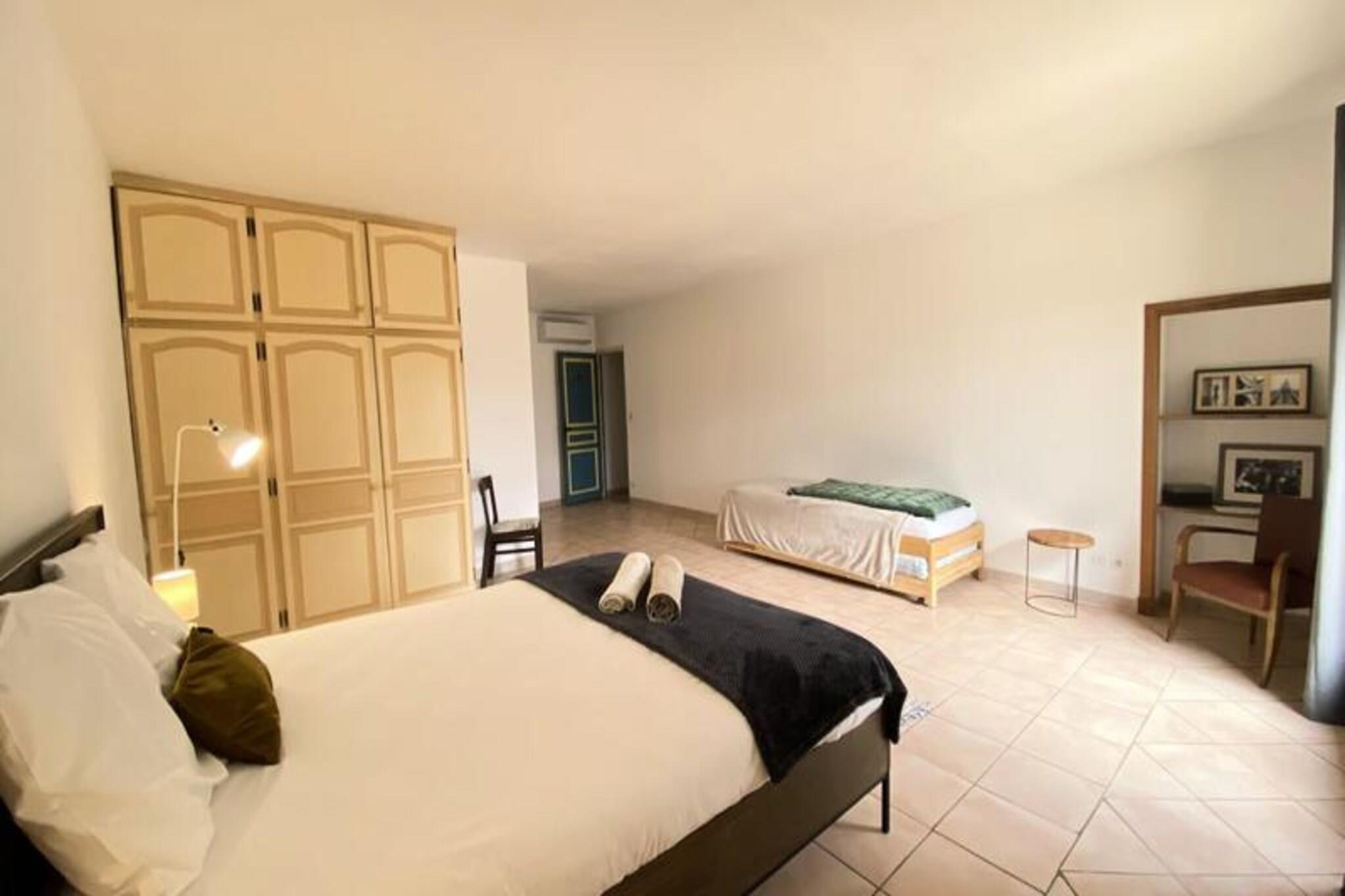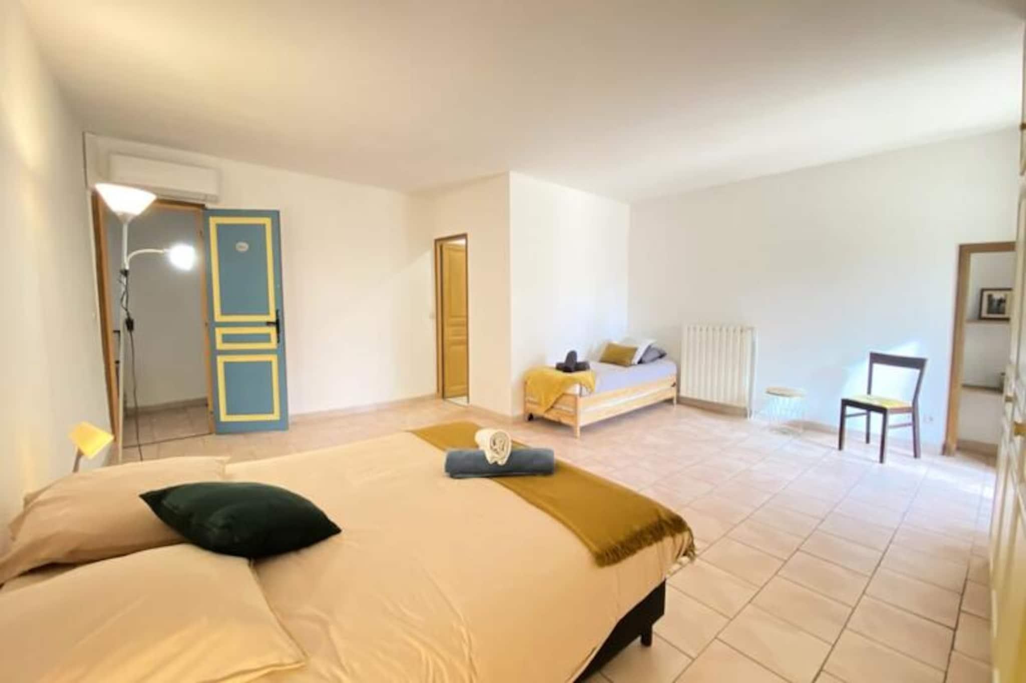 In the heart of Provence, where golden fields meet the azure sky, this charming Provençal farmhouse offers an idyllic retreat for those seeking tranquility and authentic regional charm. Surrounded by lush greenery and the gentle hum of cicadas, this former provost's residence invites you to immerse yourself in the timeless beauty of southern France. Whether you're planning a family getaway or a gathering with friends, this property is the perfect base for exploring the treasures of Provence. Spanning 250 m², the farmhouse features five spacious suites, each between 30 and 40 m², complete with private bathrooms and air conditioning for ultimate comfort during the warm summer months. The shared living spaces include a large kitchen, dining room, and a cozy lounge, all designed for convivial moments. Outside, the 6000 m² park offers endless opportunities to relax, from the secure swimming pool to the pétanque court, volleyball and badminton areas, and even a ping-pong table. For added indulgence, a wellness area with a jacuzzi and massage services is available by reservation. The location is unbeatable, with village shops, bakeries, and restaurants just a short stroll away. Nature enthusiasts will love the nearby hiking trails, kayaking on the Sorgue River, and treetop adventure courses. Families can enjoy the Spirou amusement park, Wave Island water park, and Monteux Lake, all within a five-minute drive. For cycling enthusiasts, the property partners with local bike rental agencies to provide tailored routes and equipment. From the historic city of Avignon to the picturesque canals of L'Isle-sur-la-Sorgue, and from the iconic Mont Ventoux to the stunning Pont du Gard, the region is brimming with unforgettable experiences. Whether you're savoring local wines, exploring Provençal markets, or simply soaking up the sun by the pool, this farmhouse promises a warm and welcoming escape to the heart of Provence.