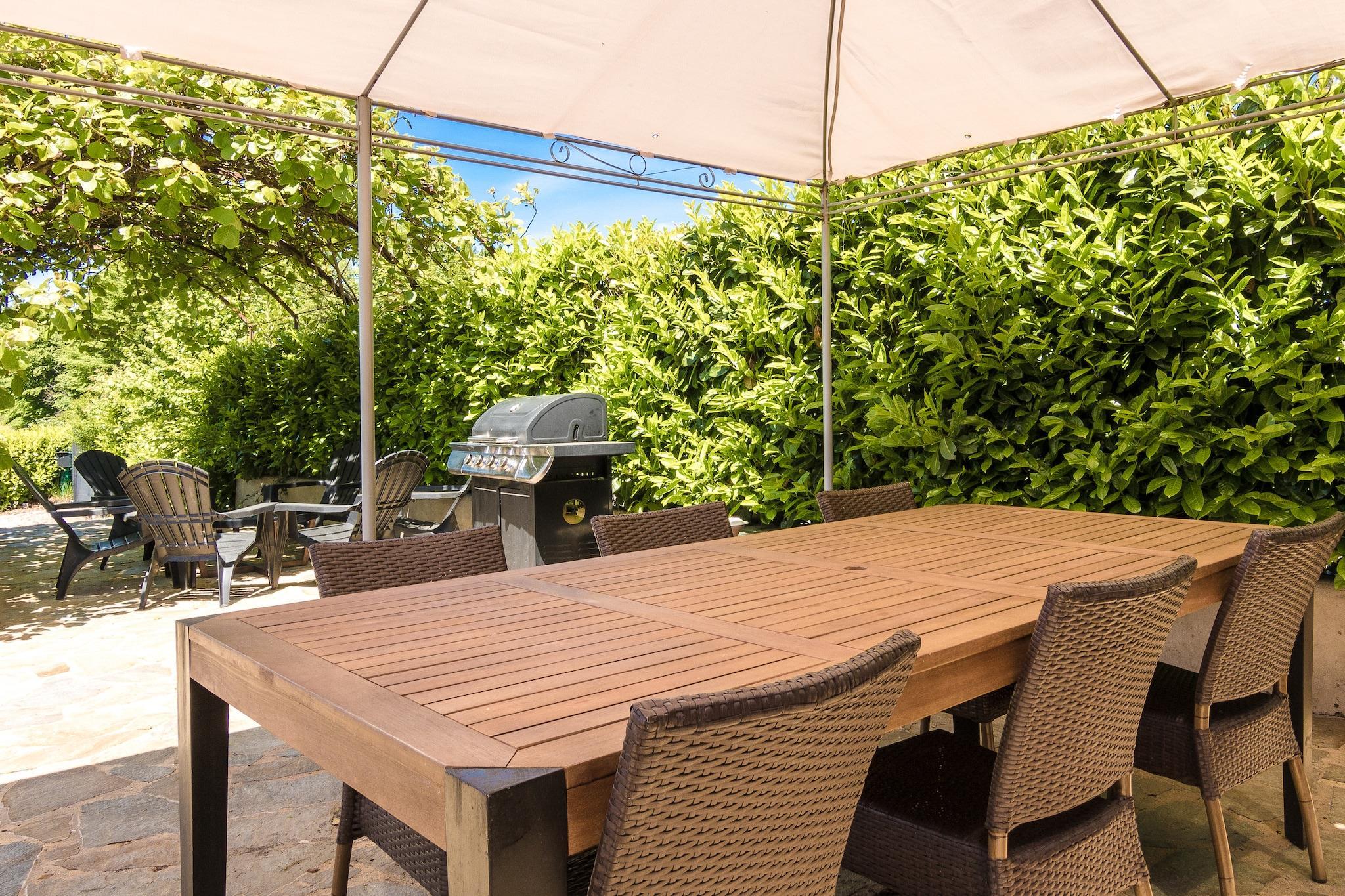 This 3-bedroom holiday home in Altillac has a private swimming pool, private terrace, and barbecue to enjoy. It is perfect for a group of 8 people or families with children to stay comfortably._x000D_ _x000D_ The place is one of the beautiful medieval villages in France. It is located on the Dordogne river at 6 km. You can explore Lot, Corrèze & Dordogne region, and admire the nature, culture, and history of the location. You can enjoy a swim from the public swimming pool at 6 km. Supermarkets and restaurants are available at 6 km. _x000D_ _x000D_ You can relax in the warm living-dining room with a fireplace watching TV and enjoy meals from the 8-seater dining table. The home has a luxurious floor heating for the cold evenings. During the evening prepare the delicious barbecue and enjoy it from the terrace. Kids have 2 high chairs, children's beds, and play equipment and can also play in the furnished garden. You can bring 1 pet with you and the house also provides parking._x000D_ _x000D_ Brive-Souillac Airport is at 45 km.