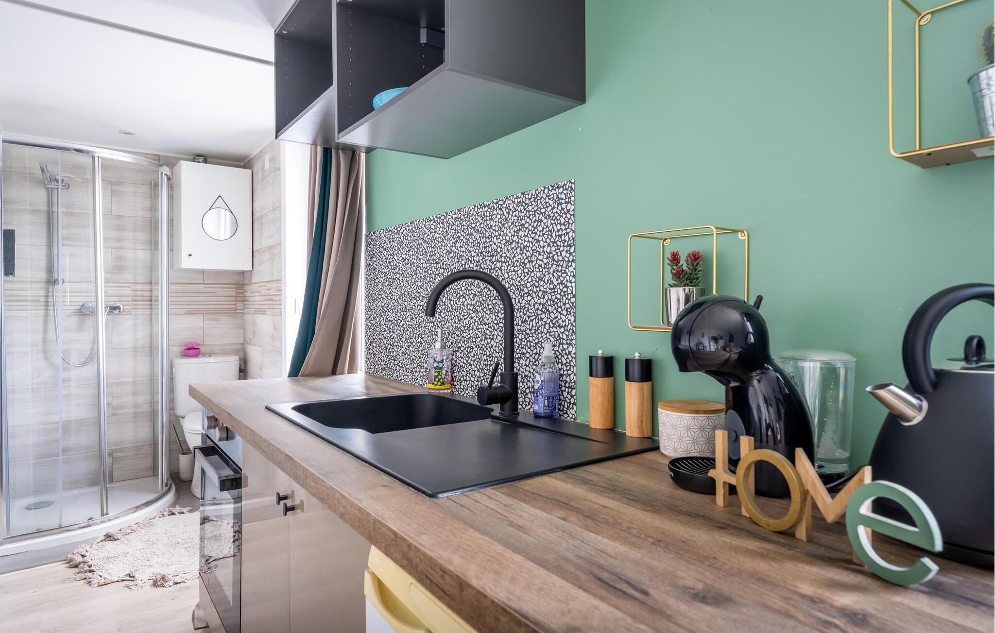 Willkommen in diesem modernen und liebevoll gestalteten Apartment, das sich auf einem Grundstück mit weiteren Wohneinheiten befindet. Als Paar oder kleine Familie können Sie sich hier entspannen und das ansprechende, wohnliche Ambiente genießen. Kochen Sie zusammen oder verbringen einen gemütlichen Filmabend im Bett.