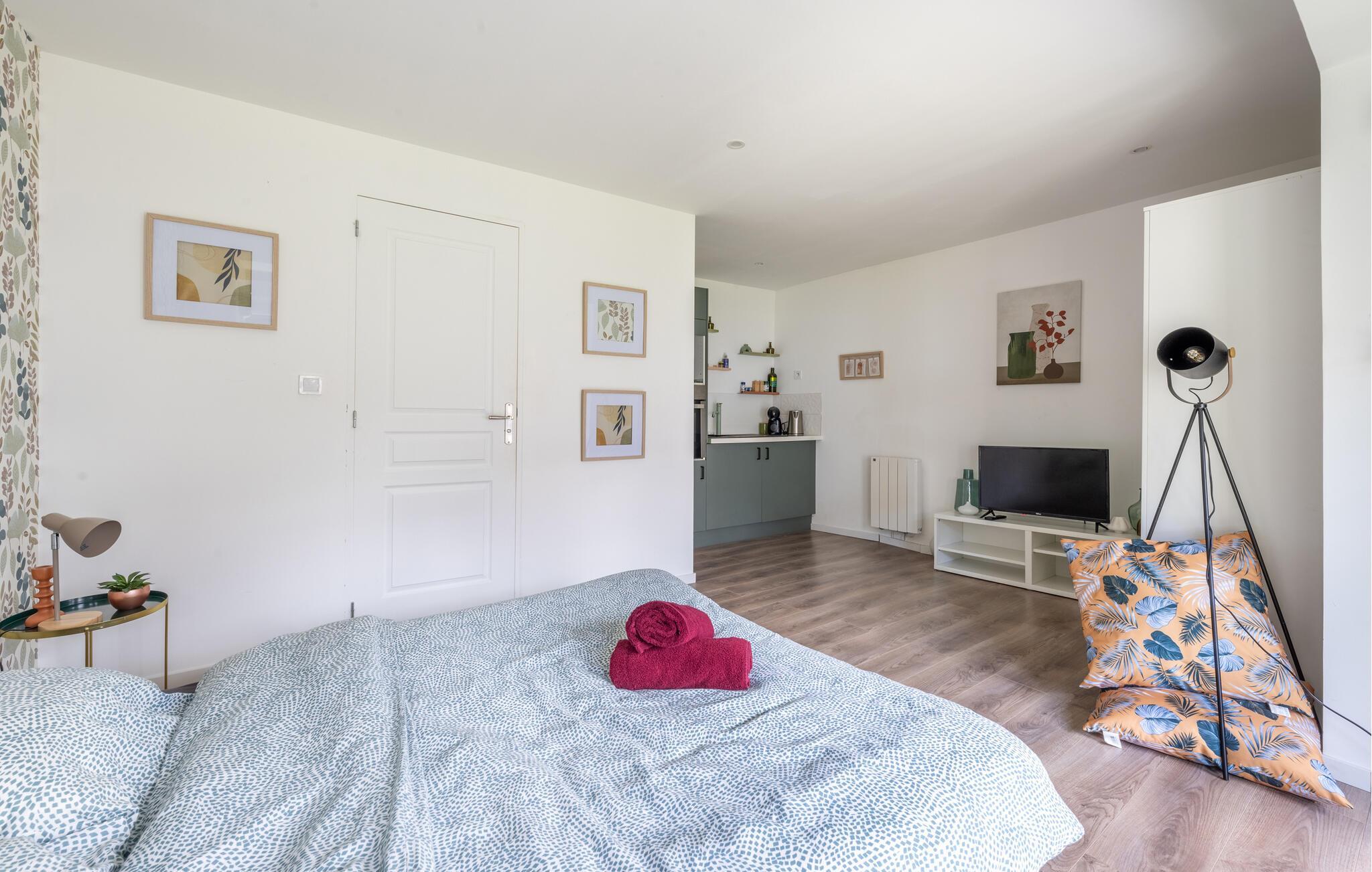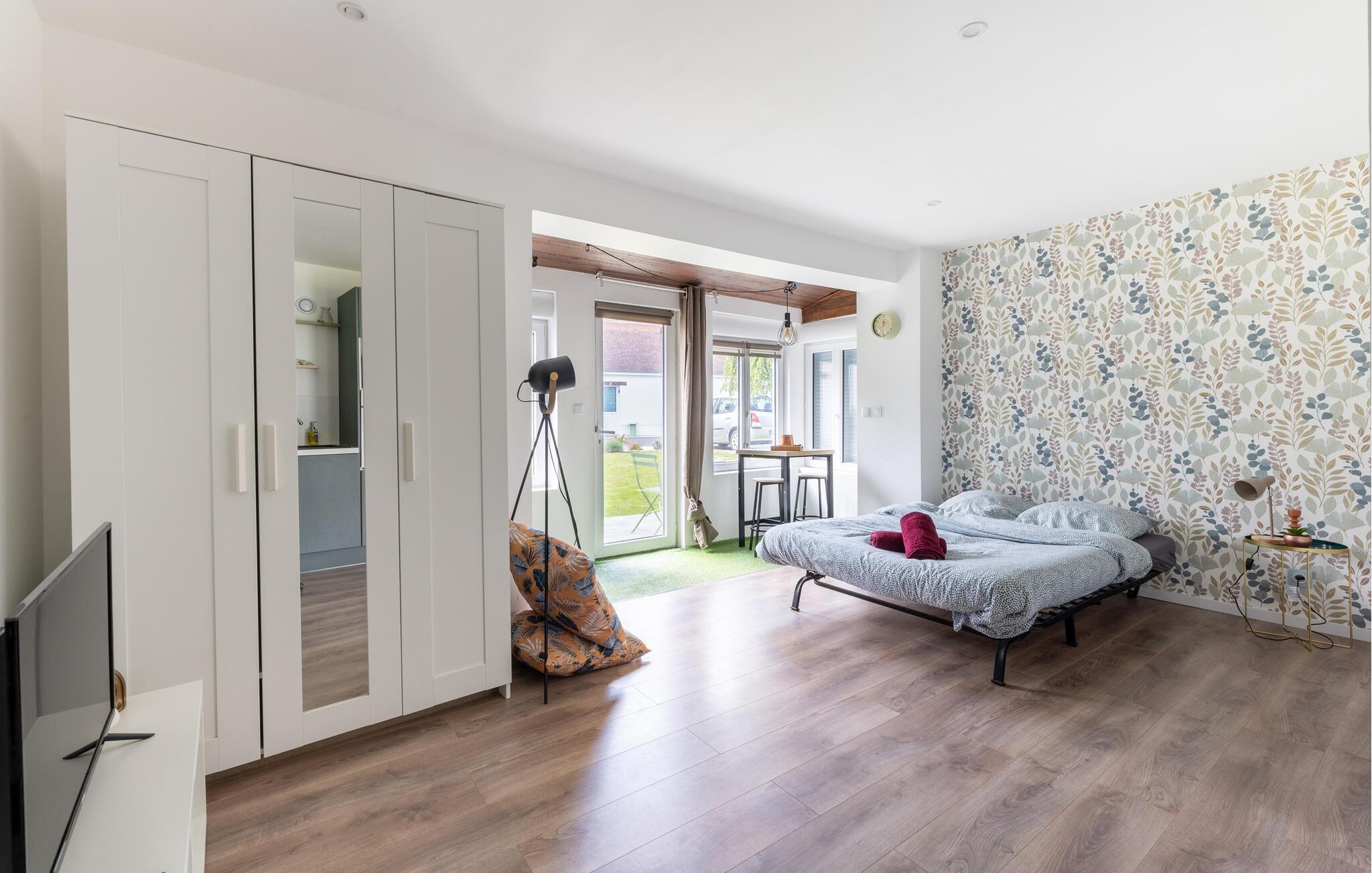 Gemütliches und einladendes Studioapartment mit privater Terrasse und Gemeinschaftsgarten.