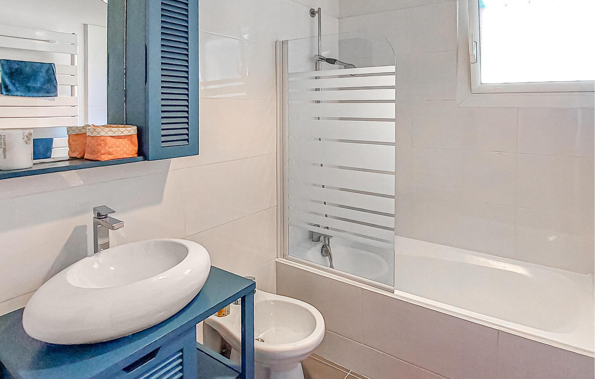 Badezimmer 5m2 (nr. 2) - WC. Warmes und kaltes Wasser. Handdusche und Badewanne