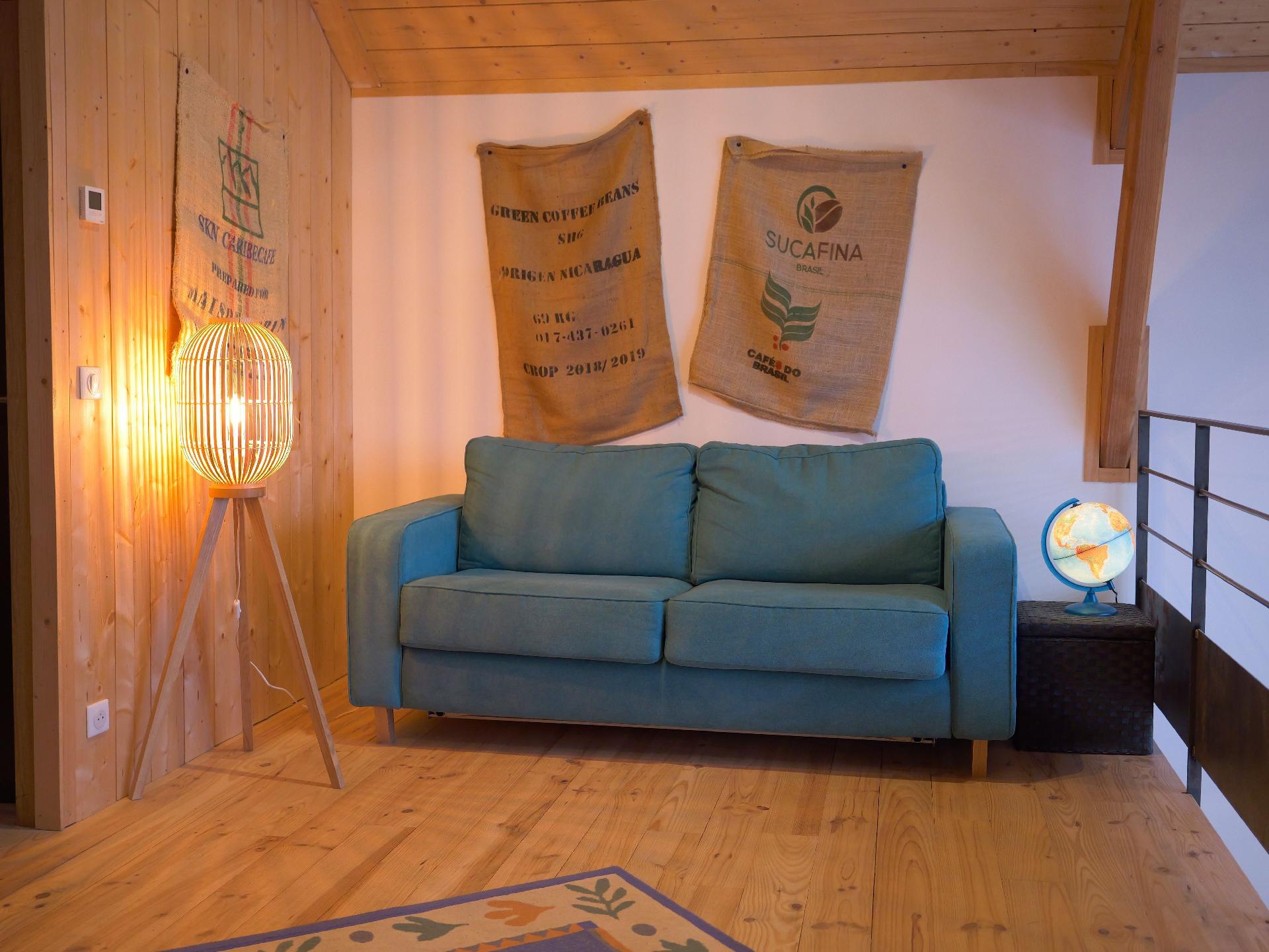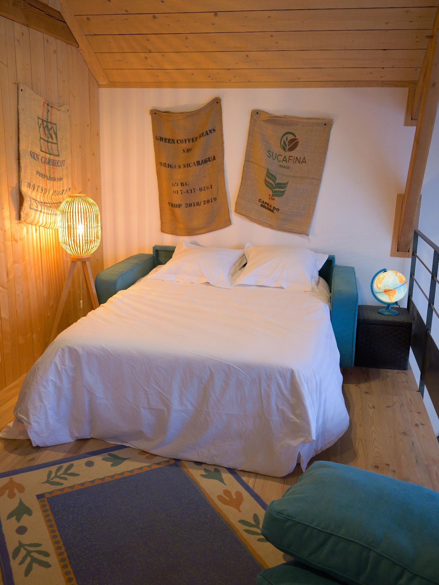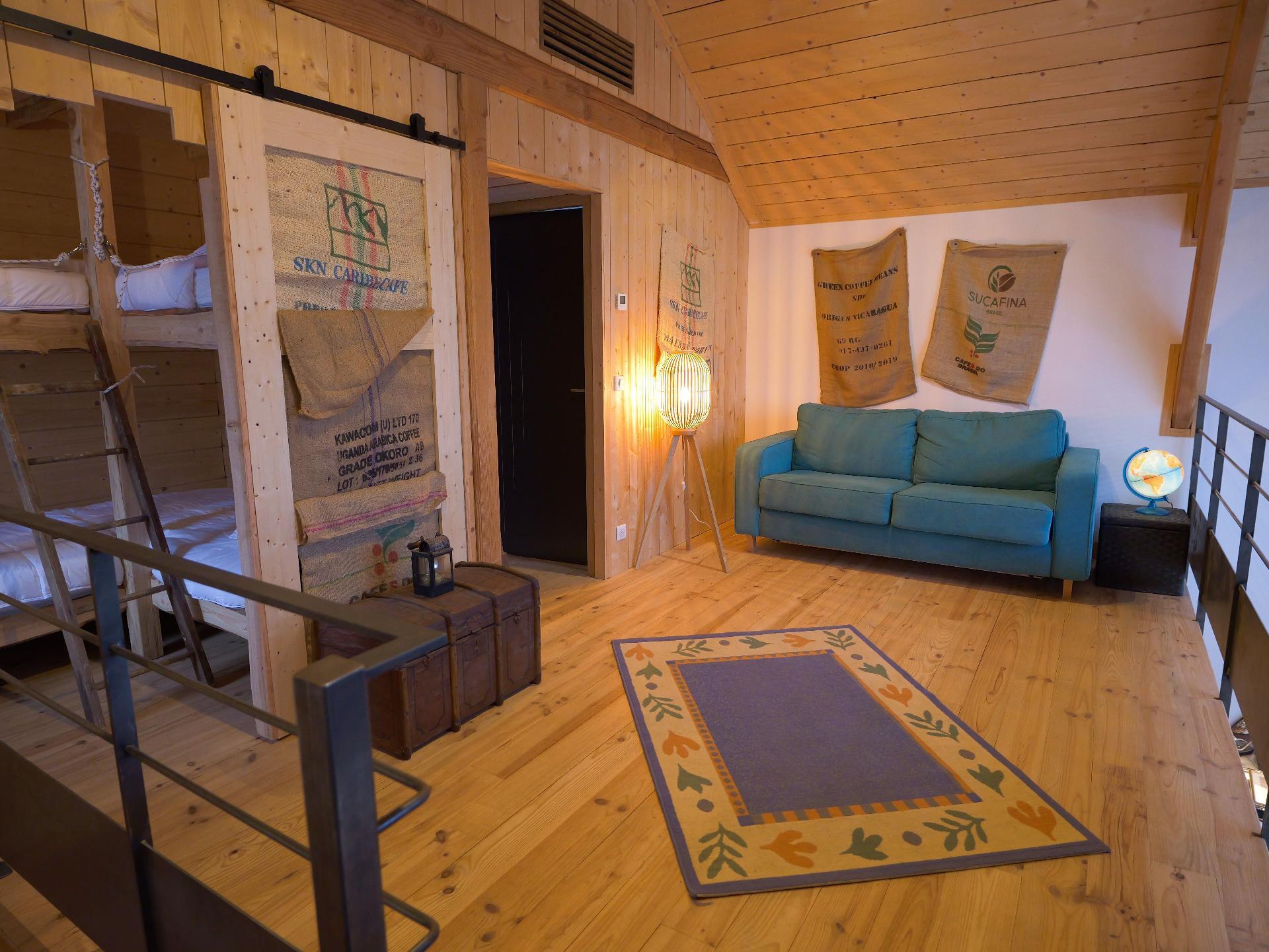 Mezzanine équipée d'very comfortable 140cm sofa bed