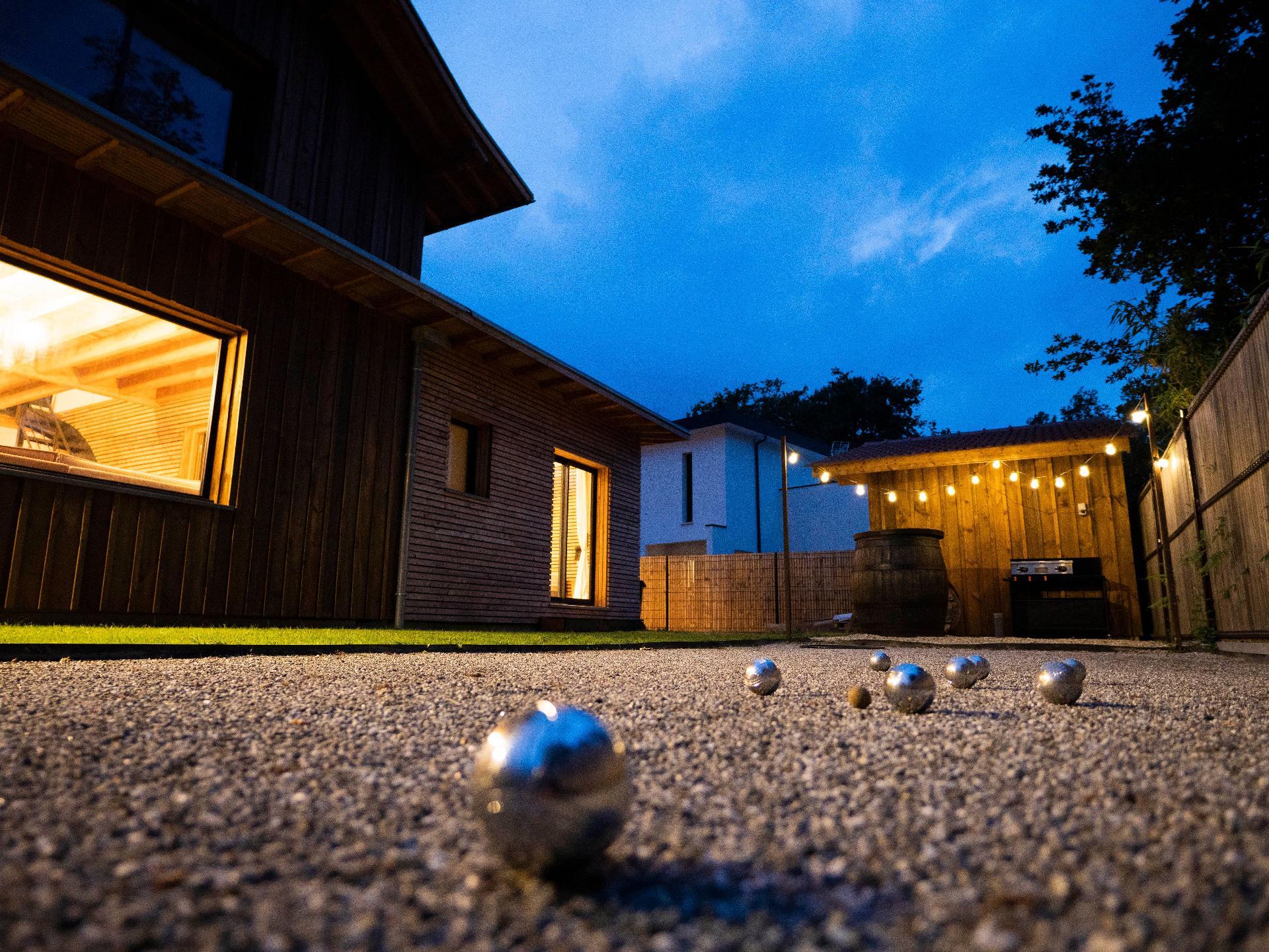 There is also a petanque area, a barrel counter, a plancha and a barbecue.