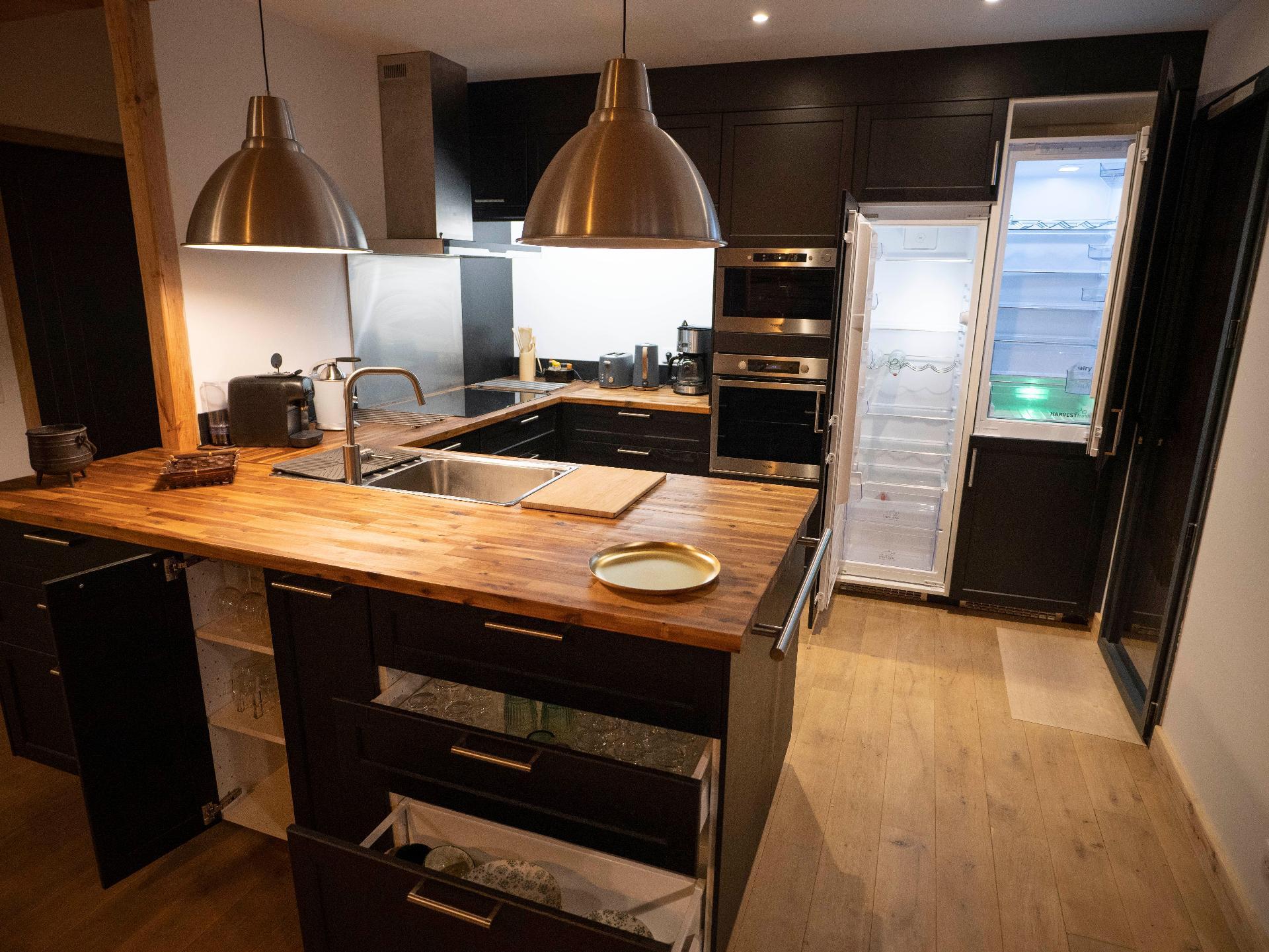 La cuisine est entièrement équipée et conçue pour accueillir jusqu', 2 fridges.