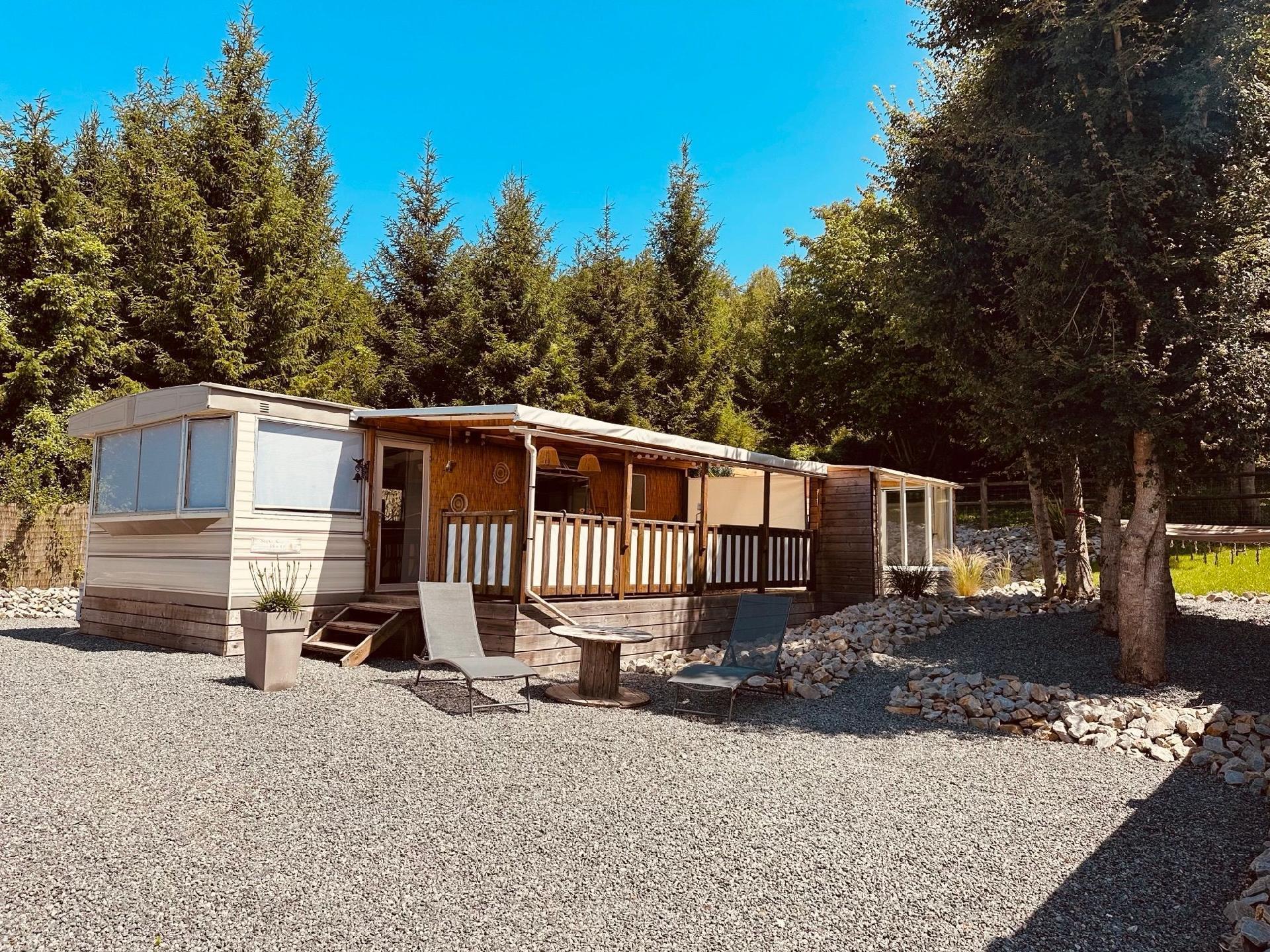 The location of this mobile home is exceptional. Just 11 km from the sea, 6 km from a lake and 1 km from a grocery shop, you have easy access to outdoor activities and essential amenities. Its proximity to the edge of a wood offers wonderful opportunities for walking and discovering the surrounding nature.