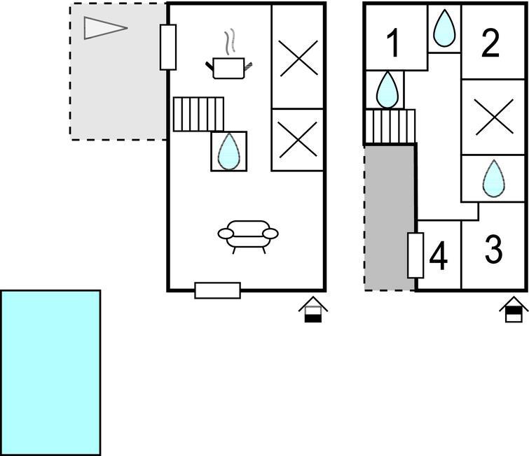 Sleeping facilities: Number of bunk beds: 1; Number of bunk beds: 1; Number of double beds (from 1.31 m to 1.50 m width): 2; Number of double beds (from 1.51 m to 1.79 m width): 1