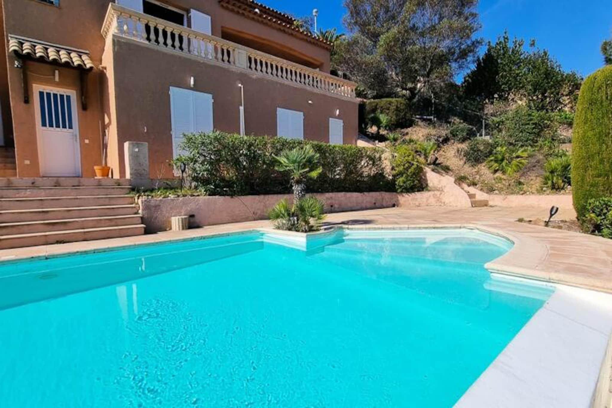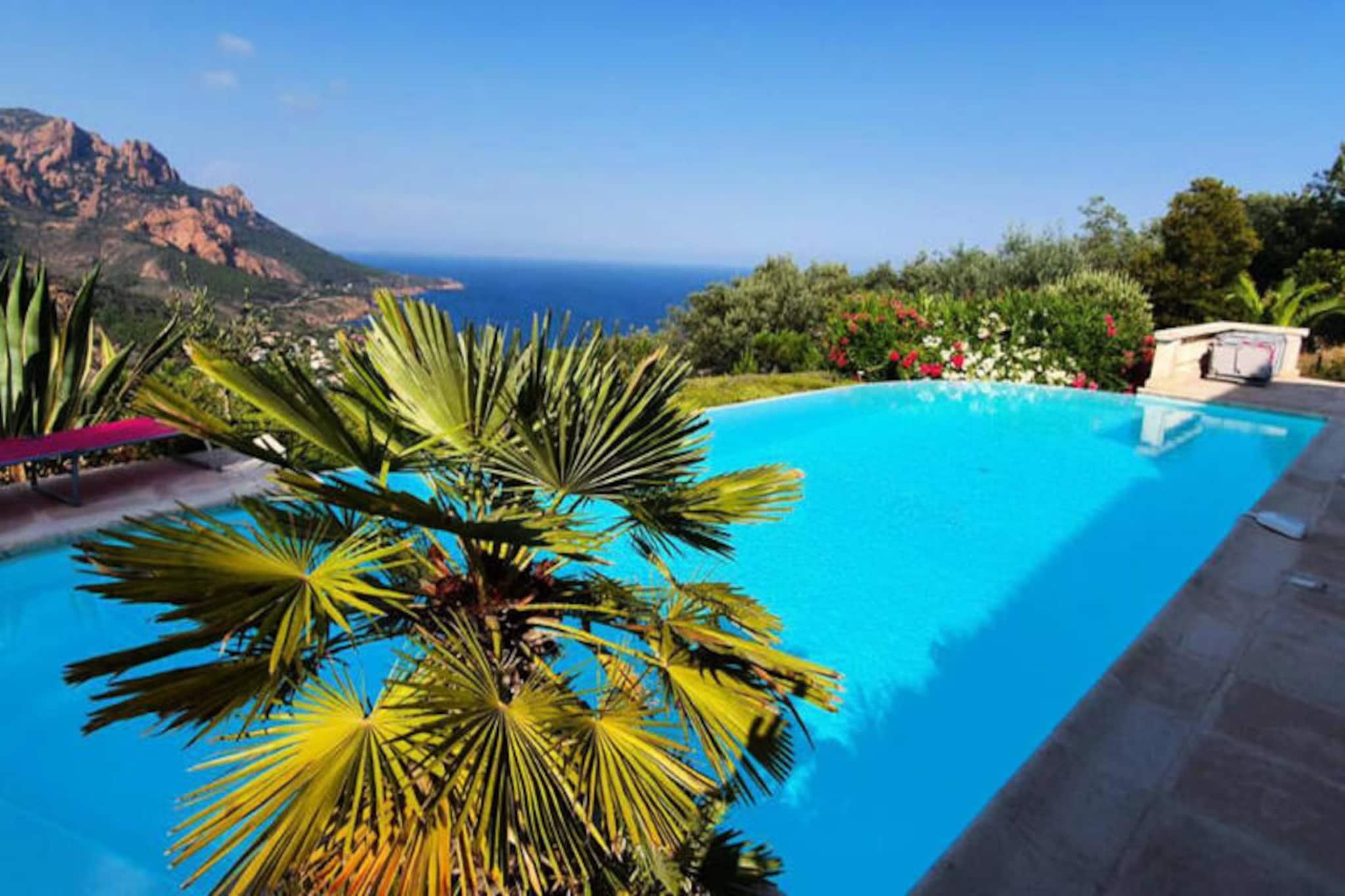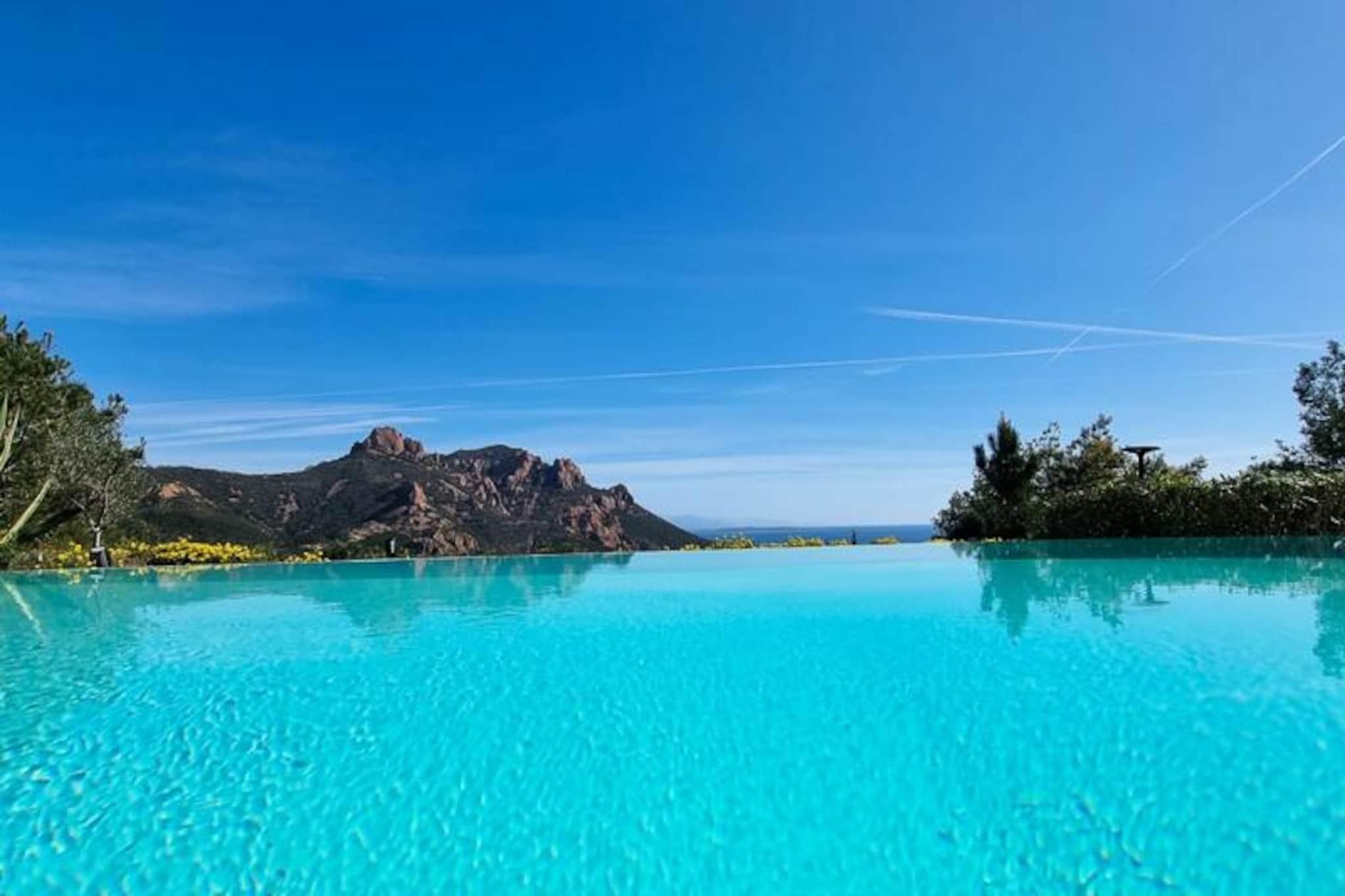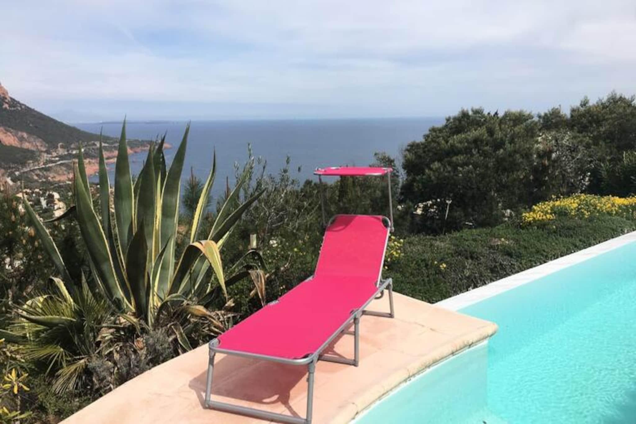 Discover a superb 290m2 villa by the sea close to the beach. Saint-Raphaël with breathtaking views of the creeks. Until 14 people can stay there and enjoy local activities like paddle boarding, hiking and boat trips. À only 30 minutes from Cannes and nearby. 50 minutes from Nice airport, it is the ideal location for a holiday on the French Riviera. Welcome to the Côte d'Azur! We are delighted to offer you our 290m2 villa for rent next door. Saint-Raphaël, ideal for large families or groups of friends looking for a private space. and comfortable. Our property includes 7 bedrooms that can accommodate up to 2 people. 14 people. Located in a private domain. and secure on the heights of Anthéor, our villa offers a breathtaking view of the coves of Saint-Raphaël and the Esterel, a breathtaking and calm setting for your vacation. The two identical houses on two floors have an independent entrance for more privacy. Both entrances are located on level 2. Book your stay in our villa in Saint-Raphaël now to enjoy a spacious and comfortable living space, with an exceptional panoramic view of the Côte d'Azur. Don't miss this opportunity! unique for a memorable vacation! Villa ELIOTT: Level 2: Entrance to the house A suite with bathroom and cupboards A living area with sofa. and television Level 1: A large living room with sofa. corner A dining room eat A kitchen open to the living room with access to the terrace A laundry room with: 1 washing machine washing machine / 1 dryer / 2 vacuum cleaners / 1 freezer / storage cupboard A large terrace with: a barbecue gas / outdoor table / garden furniture + access to the swimming pool by stairs An independent toilet Ground floor level: A suite with bathroom and cupboards A bedroom with cupboards An independent shower room Direct access to the swimming pool and the garden Villa LEOPOLD: Level 2: Entrance to the house, A suite with shower room, WC and cupboards A living area with sofa. and television Level 1: A large living room with sofa. corner A kitchen open to the living room with access to the terrace A work area with computer A laundry room with: A vacuum cleaner An independent toilet A large terrace with: outdoor table / garden furniture / barbecue outside. gas Ground floor level: A suite with shower room, cupboards and access to the bathroom. the swimming pool Two bedrooms with cupboards An independent shower room An independent toilet In the garden, you can enjoy a magnificent swimming pool. private overflow room with sea view, surrounded by numerous deckchairs, an outdoor shower and a pétanque court. Local activities are numerous and adapted to your needs. all ages: scuba diving, jet skiing, towed tubing, pedal boat rental, kayaking, water skiing, boat rental, water park, amusement park, hiking ;destre or by buggy in the Esterel. You will be spoiled for choice to fill your long summer days. with family or friends. The beaches are located at the foot of the estate, for easy and quick access to water sports and leisure activities. swimming. Passing through the Esterel, you will be at; 30 minutes from Cannes, enjoying the most beautiful views of the Côte d'Azur, and within walking distance. 50 minutes from Nice airport, for a stress-free trip. Book now for an unforgettable vacation on the Côte d'Azur, combining relaxation, activities and discovery of the region. TRAVELERS ACCESS Guests will have exclusive use of the entire property. during their stay. Keys will be handed over automatically by mailbox. keys from 4 p.m. to the address of the accommodation. ADDITIONAL FEES Linen is provided at your convenience. From 6 nights, it will be optional at additional cost for stays of less than 6 nights and on request. You may be asked for an additional payment request for the tourist tax depending on the booking platform chosen. SERVICE To facilitate your arrival, check-in will be done online via a link that we will send you once the reservation is confirmed. Following this, you will have access to a digital welcome booklet made available to you at your disposal throughout the duration of your stay. You will find all the information related to the arrival procedure, how the accommodation works, the right addresses and more. DEPOSIT A deposit in the form of an online banking imprint may be requested from you at the time of booking depending on the platform through which you choose to reserve our accommodation. (THE CONDITIONS OF DEPOSITS AND STAY TAXES DIFFER DEPENDING ON THE PLATFORM CHOSEN). Deposit (in euros) - 2500