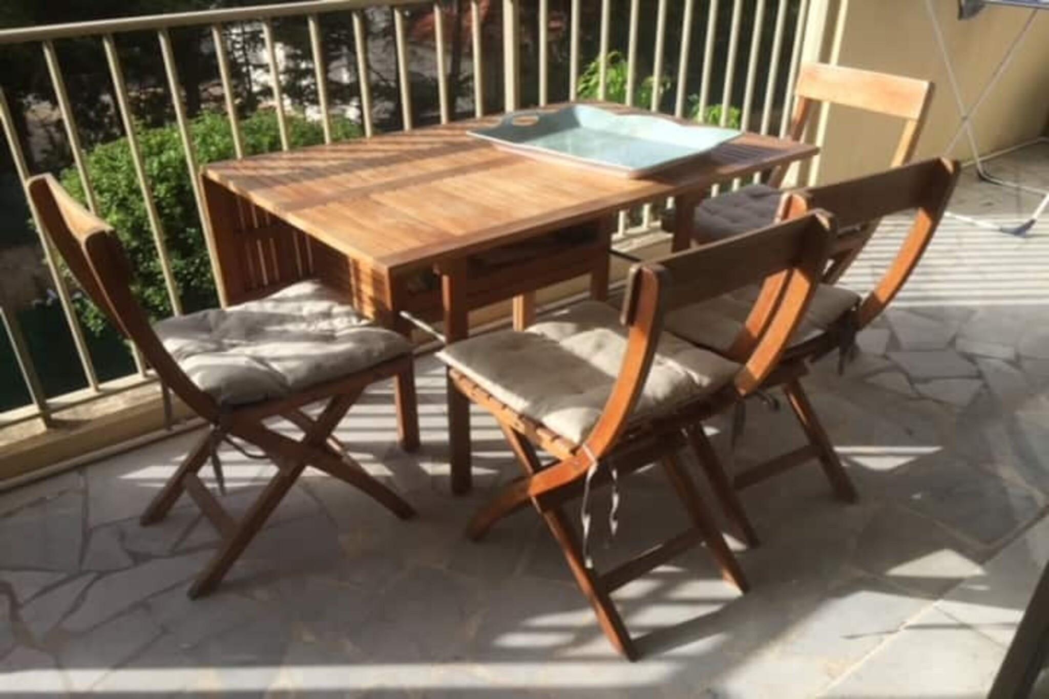Inside, the house is compact but thoughtfully arranged to accommodate up to 3 guests. You’ll find a comfortable sofa bed in the living room, a single mezzanine bed in the bedroom, a clean, modern bathroom, and a separate toilet. The open-plan kitchen accessible through the living room is fully equipped with modern appliances - enough for light meals or relaxed breakfasts. You are welcome to spend your lazy afternoons on the shaded terrace outside the apartment - it’s a quiet place for breakfast al fresco, a drink after the beach, or just unwinding. Additional amenities include access to secure private parking in the residence, air conditioning, high-speed WiFi, and a shared pool in case you need to take a plunge in the comfort of your stay. When you feel like wandering, the historic centre of Antibes is only a short walk away, with its old-town lanes, lively harbour, local markets and charming streets. You can enjoy the Mediterranean coast, explore the historic walls and city heritage, or indulge in starlit coastal walks and dine at seaside restaurants. This home is perfect for travellers looking for simplicity, Seaview, and convenience — folks who want their toes in the sand by morning and a cozy space to rest and recharge by night.