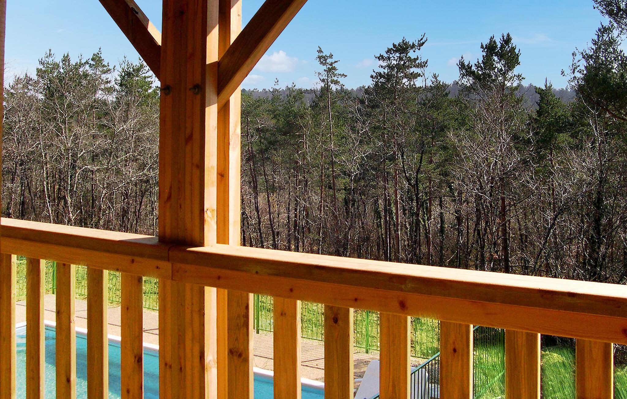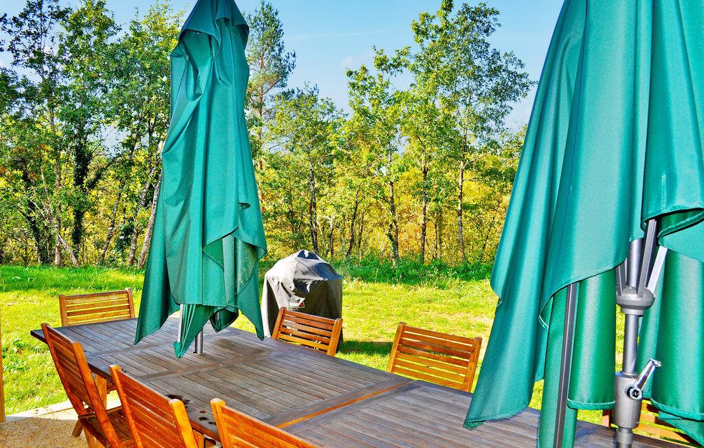 Erleben Sie einen umweltbewussten Urlaub im Herzen des Weißen Périgord, eingebettet in ein weitläufiges, 11 Hektar großes Anwesen in der Dordogne, das für seine Trüffel berühmt ist. Diese umweltfreundliche Oase bietet Platz für bis zu 13 Gäste und bietet Ruhe und Outdoor-Abenteuer. Tauchen Sie ein in ruhige Landschaften für vielfältige Outdoor-Aktivitäten und erkunden Sie den kulturellen Reichtum in Périgueux, Brantôme und den umliegenden Dörfern. Entdecken Sie historische Wunder, nur eine Stunde von berühmten Sehenswürdigkeiten wie Lascaux, Rocamadour und Sarlat entfernt. Das geräumige Haus erstreckt sich über zwei Ebenen und verfügt über einen geräumigen Wohnbereich, eine gut ausgestattete Küche und einen Essbereich mit Zugang zur Terrasse. Im Obergeschoss versprechen einladende Schlafzimmer Komfort mit klimatisierten Räumen und durchdachter Inneneinrichtung. Steigen Sie die Treppe hinauf zu einem Korridor, der zu gut ausgestatteten Schlafzimmern führt, die jeweils über einen einzigartigen Charme verfügen. Genießen Sie gemütliche Badezimmer mit Annehmlichkeiten für Ihren Komfort. Betreten Sie einen hölzernen Terrassenbalkon und genießen Sie den perfekten Blick auf den Wald. Der Außenbereich bietet eine private Terrasse mit Holzmöbeln und Liegestühlen am 8 x 4 großen Pool, der mit einem anderen Holzhaus für zwei Personen geteilt wird. Bequeme Parkplätze, ein riesiger 11 Hektar großer Park und Erholungsgebiete wie Volleyball und Bowling warten darauf, erkundet zu werden. Begegnen Sie Nutztieren und verleihen Sie dem Anwesen eine ländliche Authentizität. Beachten Sie die einzigartige Lage des Anwesens inmitten von 20 anderen umweltfreundlichen Unterkünften. Entfliehen Sie diesem umweltbewussten Rückzugsort, wo die Leidenschaft für die Natur auf den Stolz eines wirklich unvergesslichen Urlaubserlebnisses trifft.