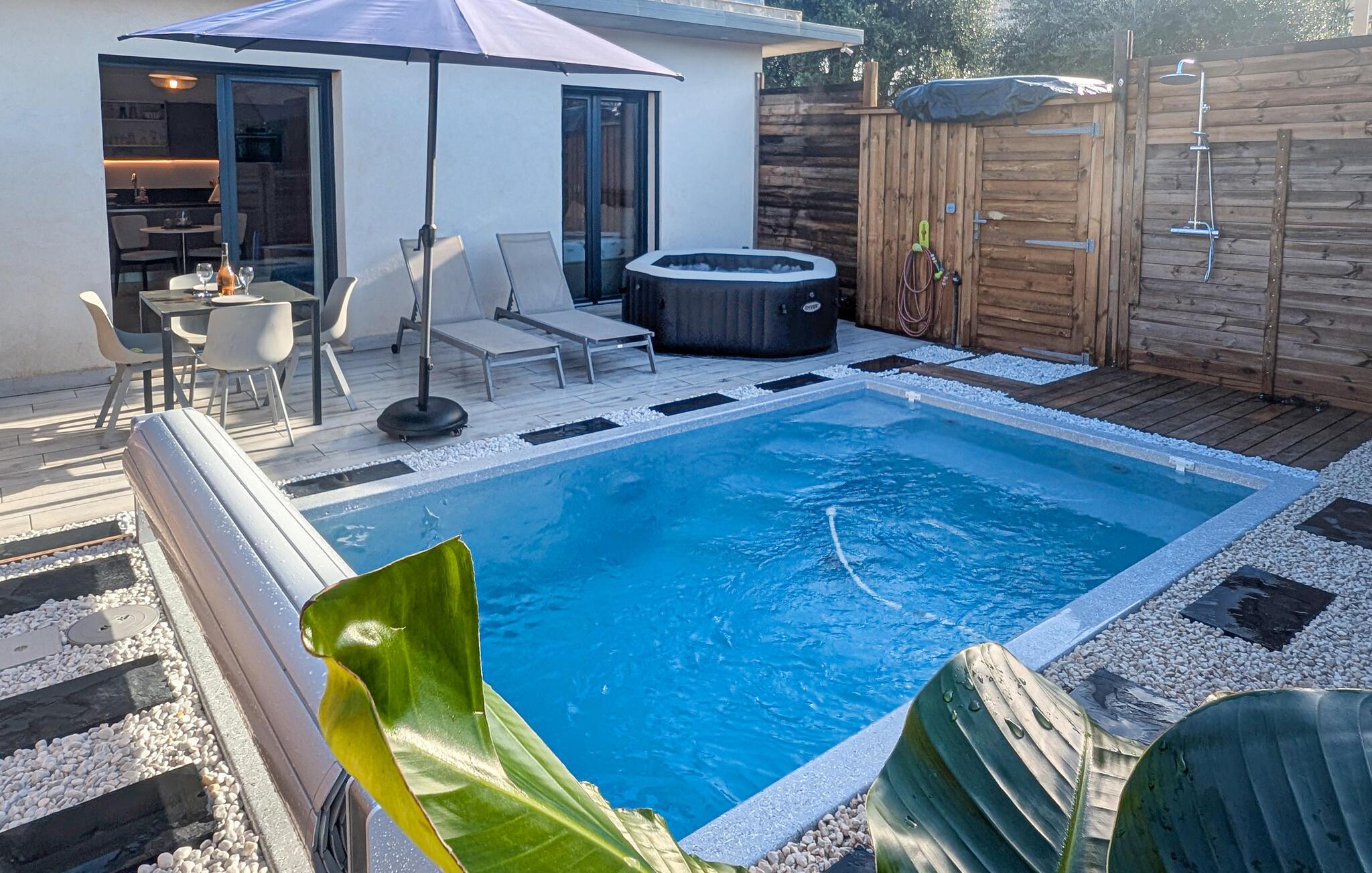 Dieser bezaubernde Ort an der französischen Riviera ist viel mehr als nur ein Apartment – ??es ist eine Oase der Ruhe und des Komforts. Das Apartment wurde mit Blick auf Ihr Wohlbefinden gestaltet und bietet eine perfekte Mischung aus modernen Annehmlichkeiten und ruhiger Umgebung. Entspannen Sie im beheizten 10 m² großen Pool, der je nach Wetterlage das ganze Jahr über geöffnet ist, oder gönnen Sie sich in Ihrem eigenen privaten Spa das ultimative Entspannungserlebnis. Die private Terrasse, ausgestattet mit Liegestühlen, Gartenmöbeln und einer Dusche, ist perfekt, um die Sonne zu genießen oder einen ruhigen Abend unter den Sternen zu verbringen.