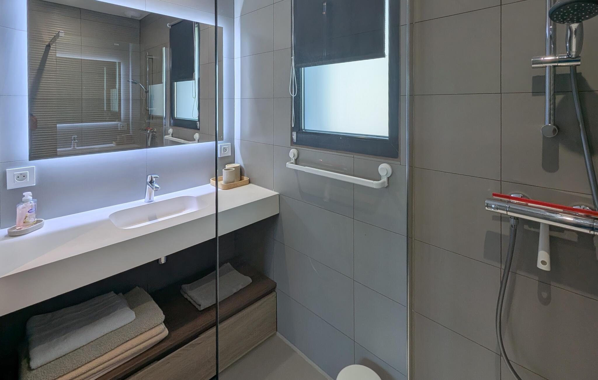 Das elegante Badezimmer verfügt über eine moderne Dusche und die separate Toilette sorgt für zusätzliche Privatsphäre. Sie haben auch Zugang zum Highspeed-Internet, um während Ihres gesamten Aufenthalts in Verbindung zu bleiben.