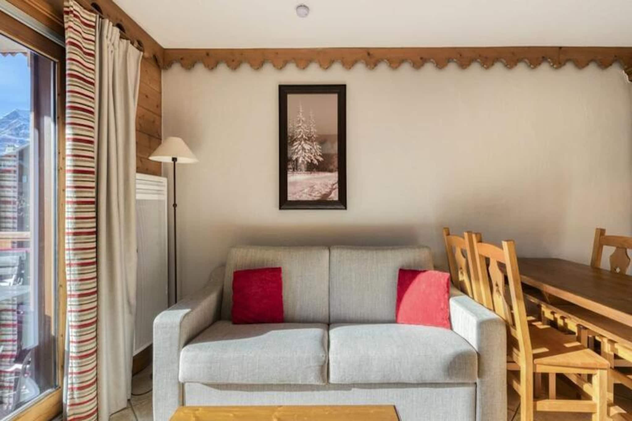 This charming holiday home is located in a serene alpine setting, offering a cozy atmosphere for a relaxing getaway. It features two bedrooms, one with a double bed and the other with two single beds, as well as a sofa bed in the living room to accommodate extra guests. The property is pet-friendly, with prior arrangements for your furry companions, and offers a range of amenities including free Wi-Fi, television, and a separate toilet. Baby kits are available upon request, ensuring a comfortable stay for families. Situated near the heart of the resort, this property provides easy access to all local amenities, including bars, restaurants, and shops. A grocery store is less than 100 meters away, and the residence is within walking distance of the tourist office. The children’s clubs nearby offer activities for little ones aged 3 to 12. The resort is also home to stunning ski slopes, with cable cars and the ESF just 800 meters away, and a free shuttle service for added convenience. The property includes a fully equipped kitchen open to the living room, providing a comfortable space for meals. Two bathrooms, one with a bathtub and the other with a shower, ensure plenty of facilities for guests. Relax after a day of skiing in the heated indoor swimming pool or unwind in the sauna and jacuzzi, available for guests aged 15 and over. Covered parking is available for an additional charge.